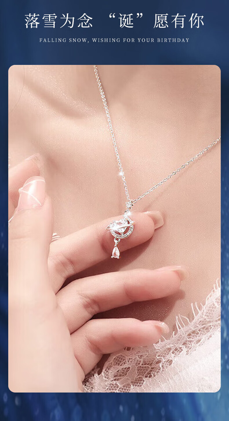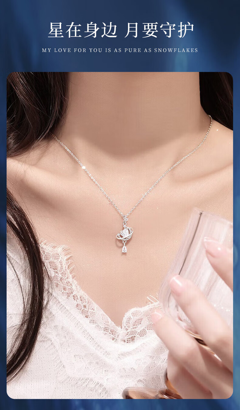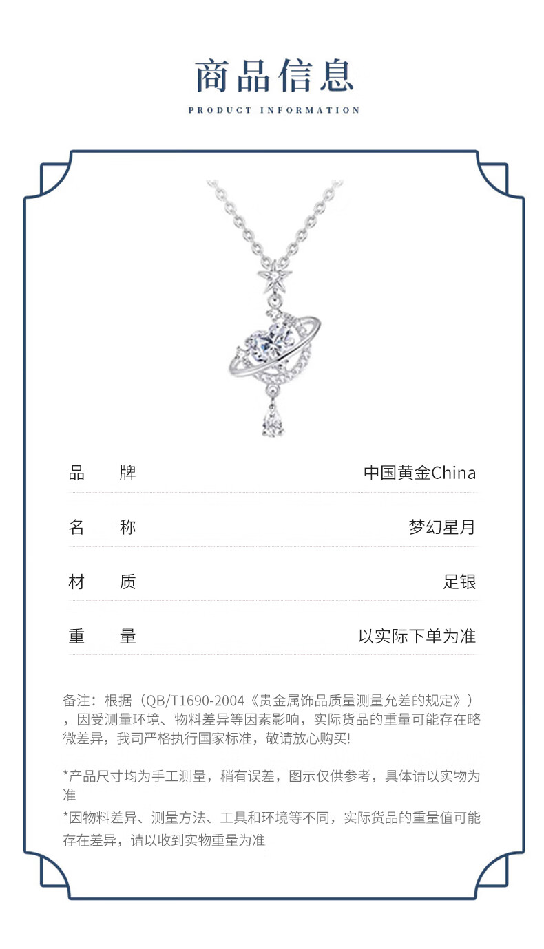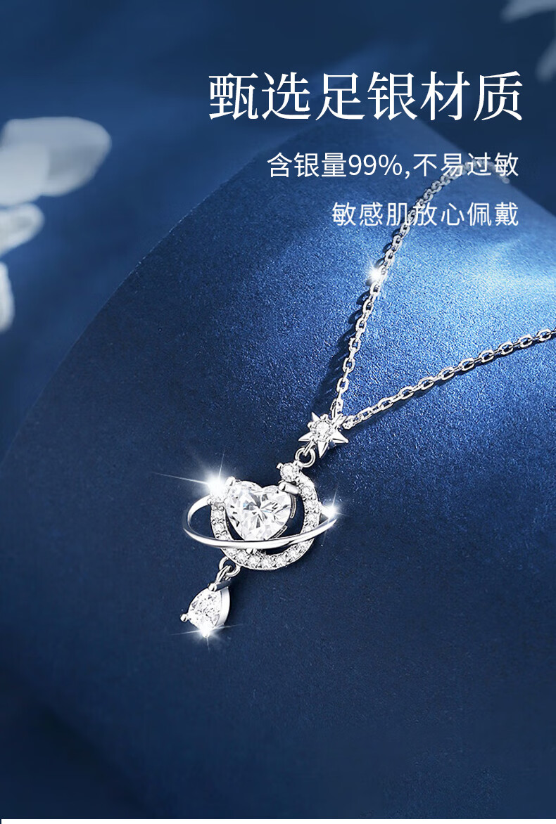 CHINA GOLD Pure Silver Necklace Women's Star and Moon Pendant High-end Light Luxury Valentine's Day Birthday Gift for Girlfriend and Wife Jingsuda Pure Silver Dream Heart and Moon Necklace Brand Gift Box