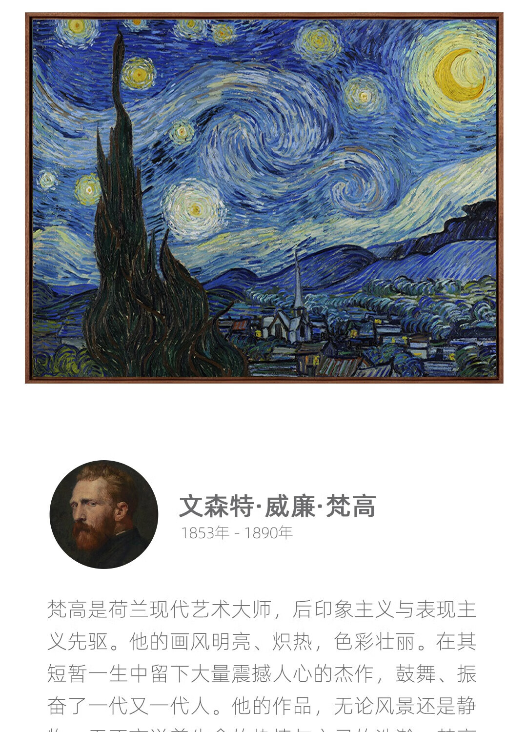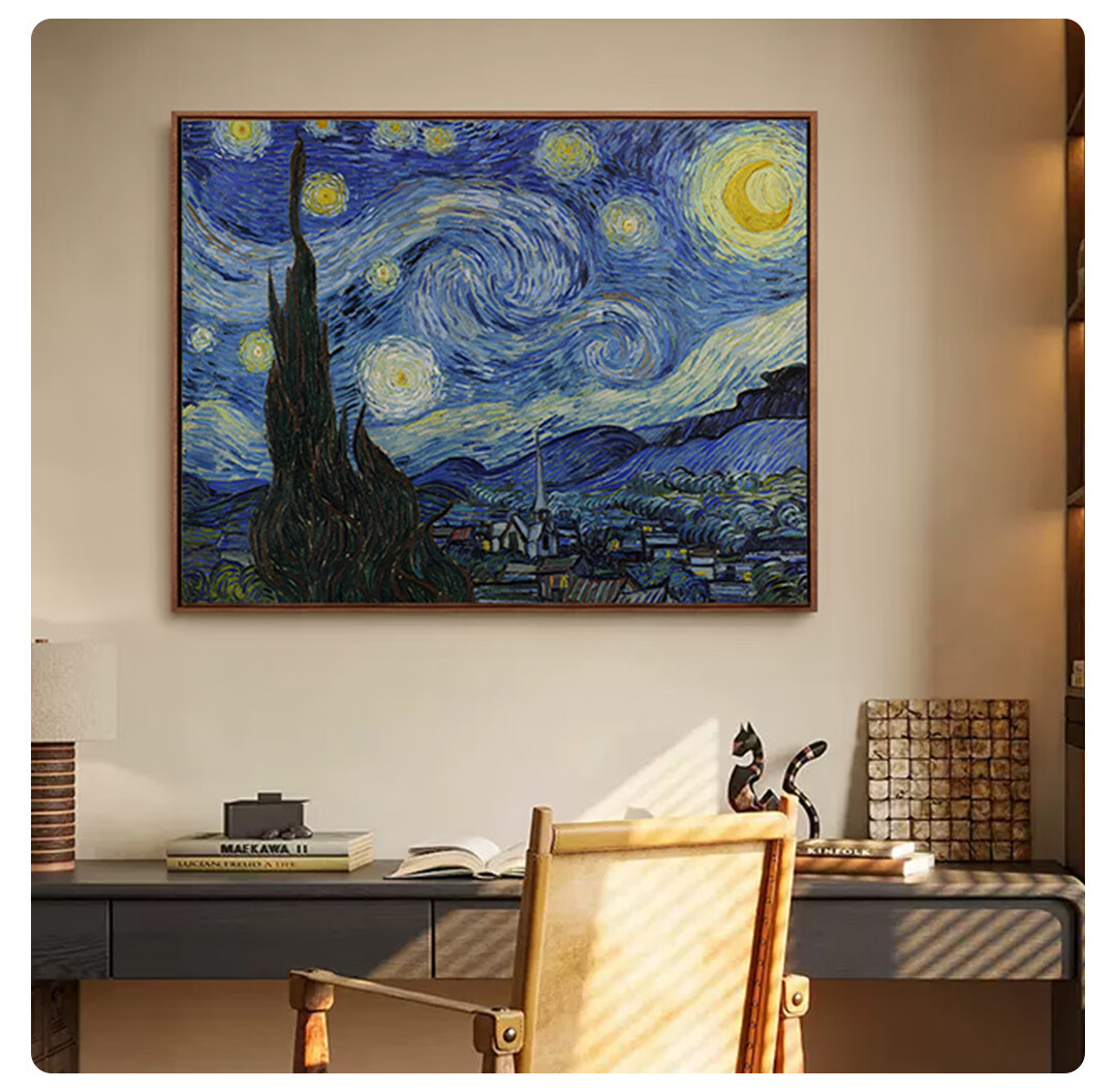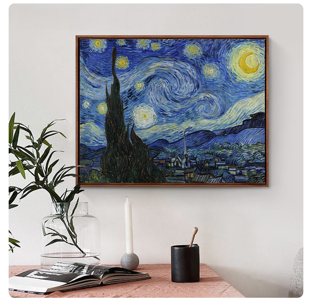 TOYSART new product Van Gogh's "Starry Night" print, living room, dining room, entrance hall decoration painting, bedroom hanging painting, Nordic style, size S 55*45cm, teak L frame 08/35mm