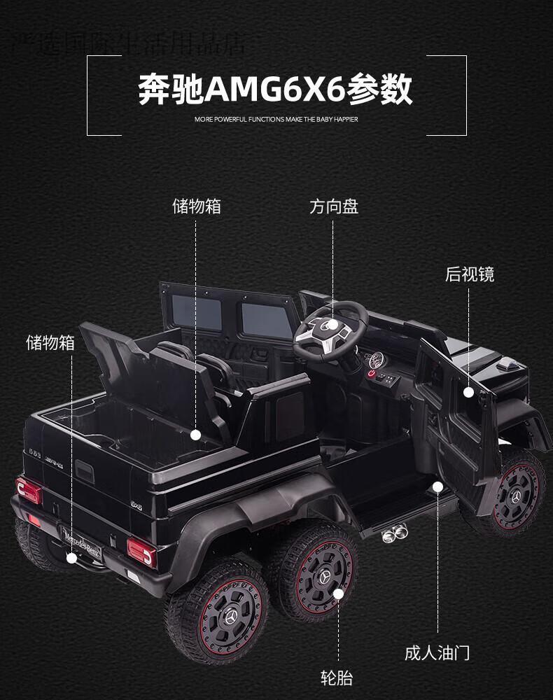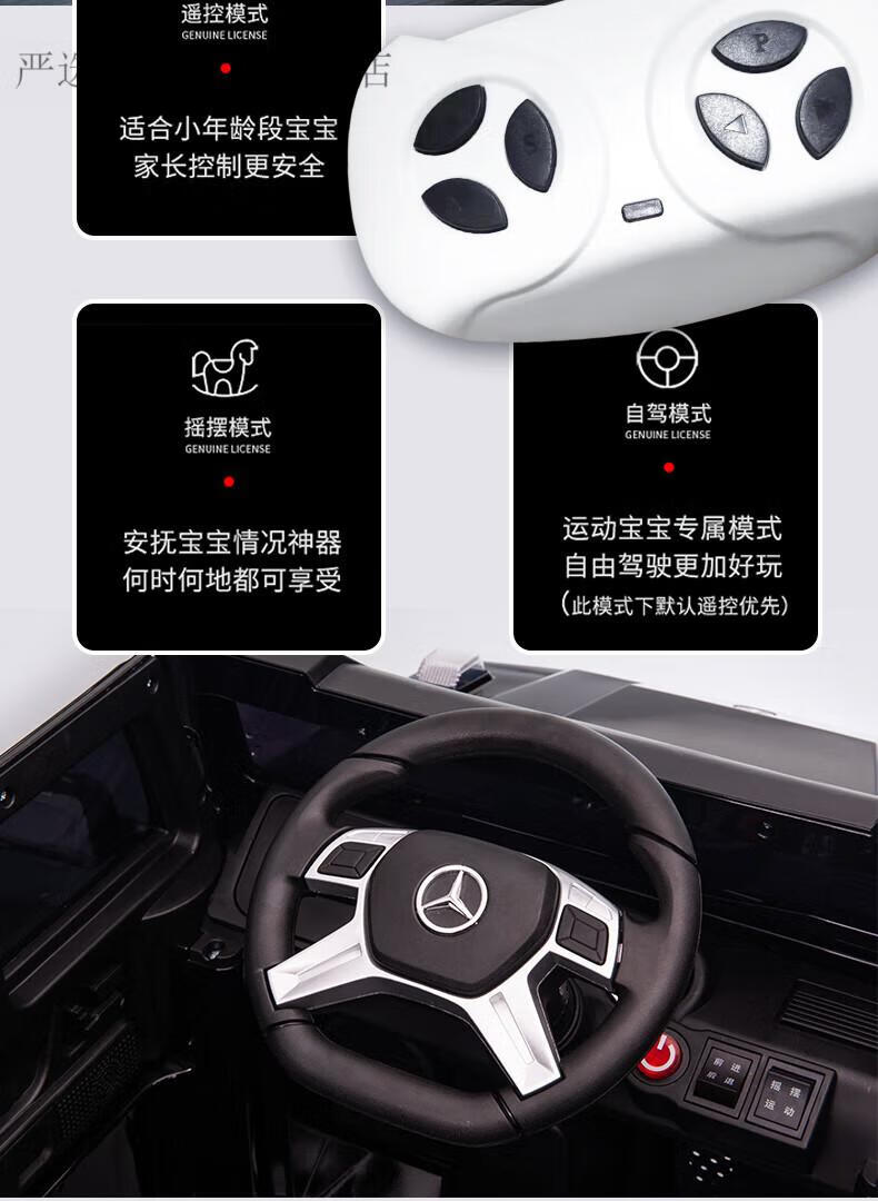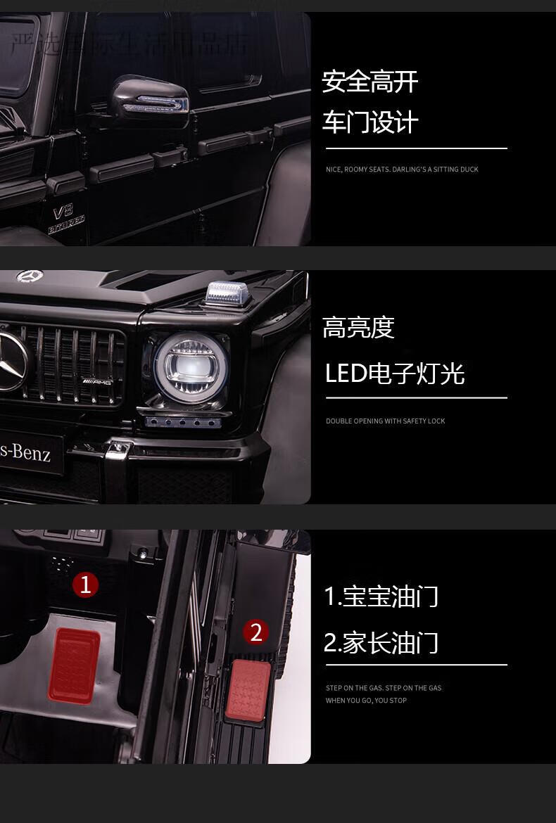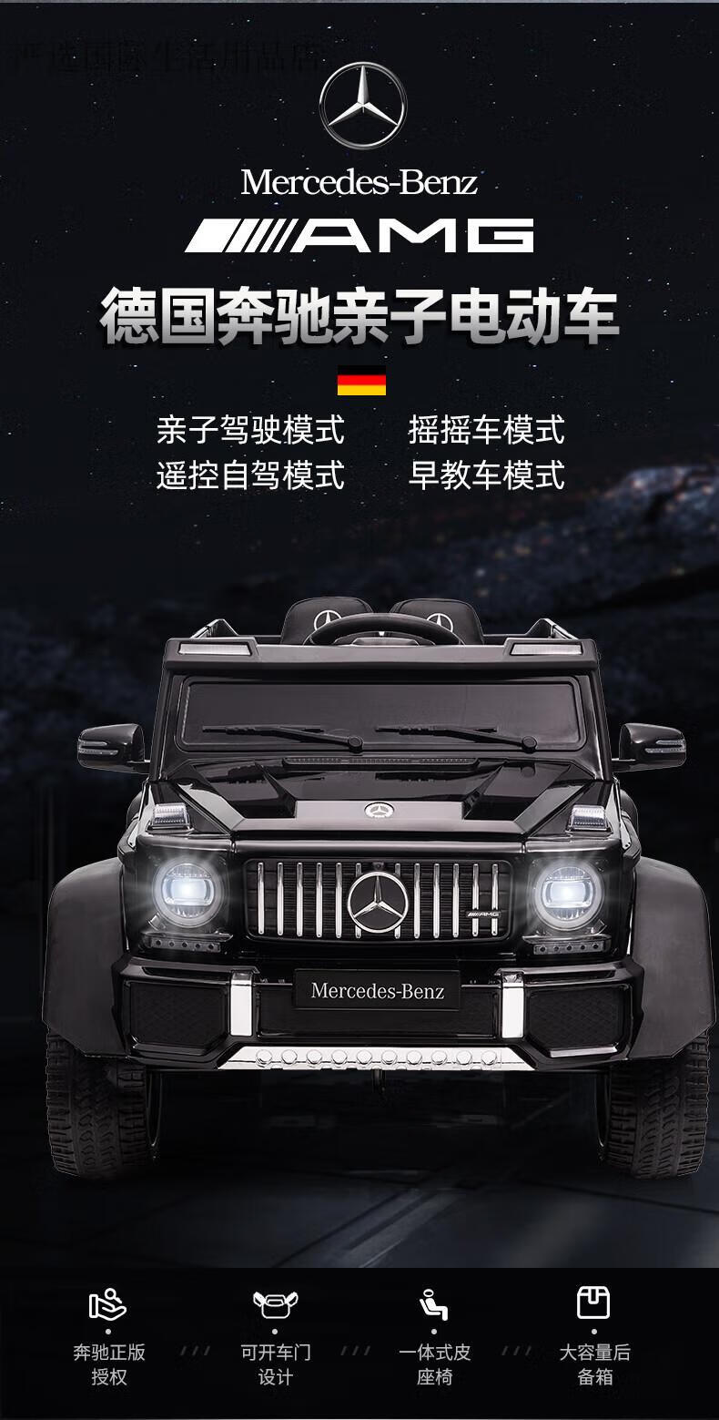 Rabbit Bear Mercedes-Benz Big G children's electric car four-wheel remote control double off-road baby toy car can sit in adult and child cars, painted black 12V25A six hours of battery life, electric drive