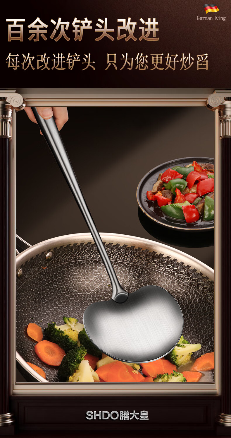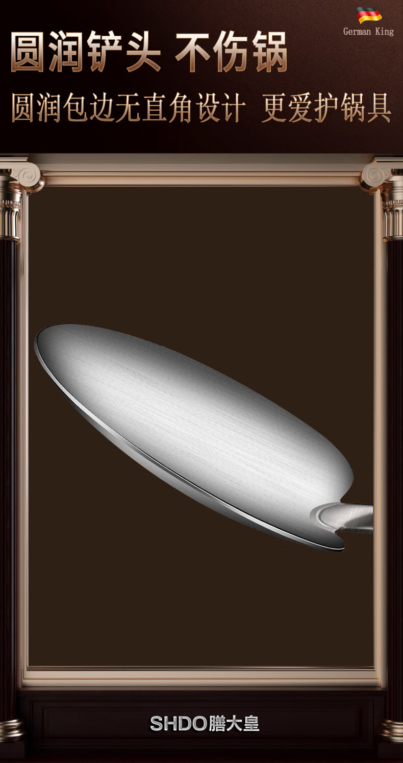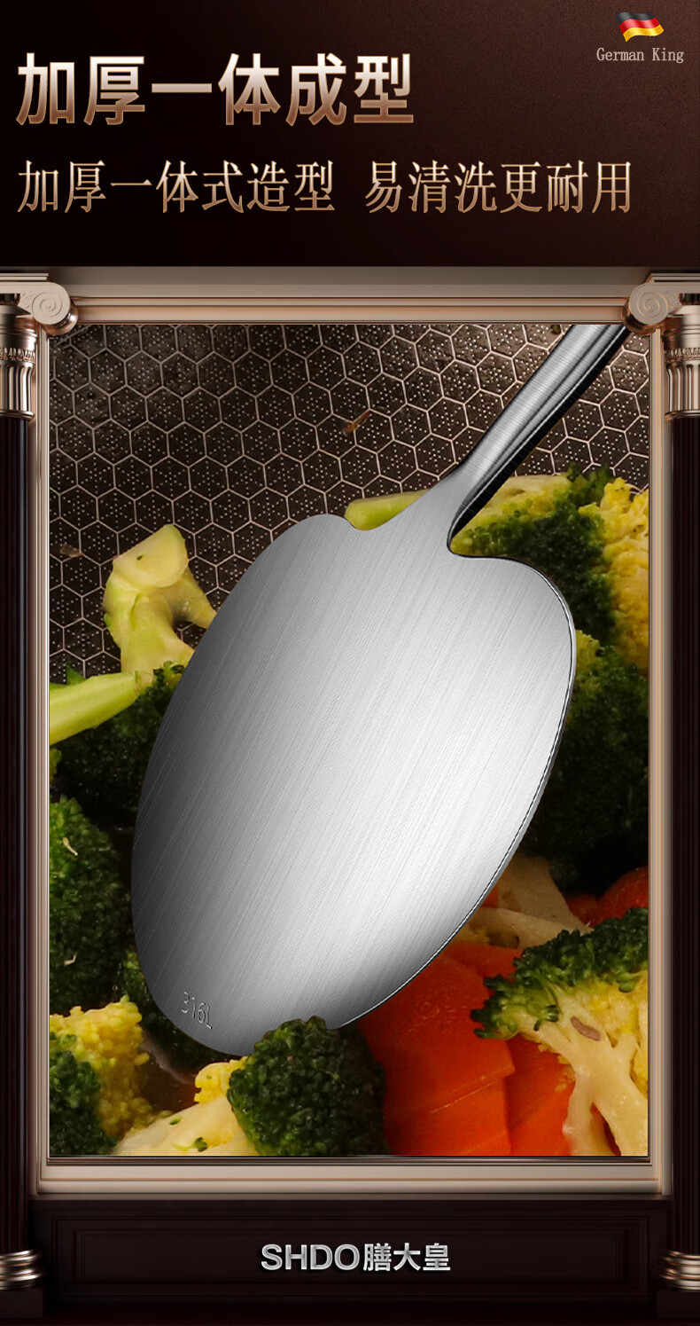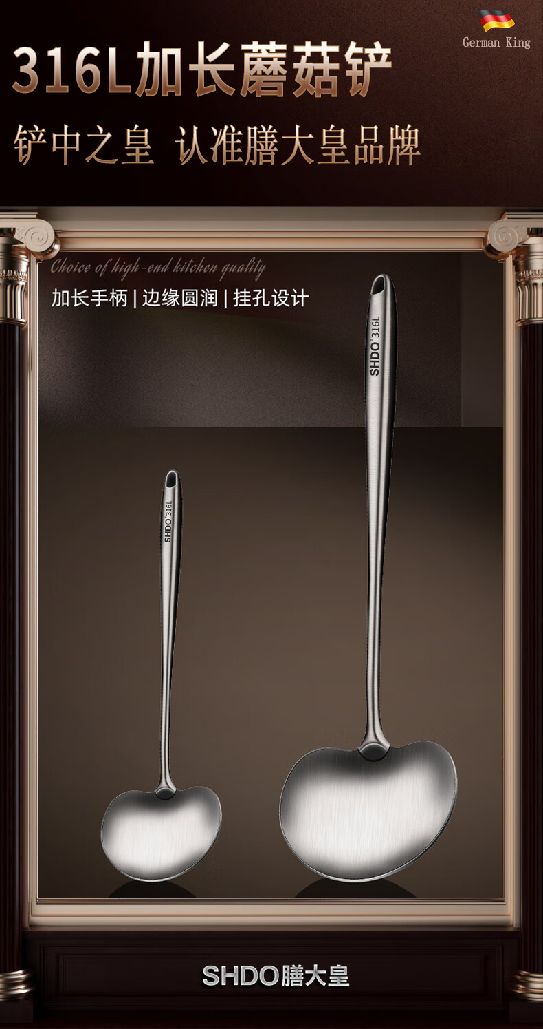 Shandahuang (SHDO) German 316L stainless steel mushroom spatula, household cooking spatula, solid wood handle frying spoon, special food-grade mushroom spatula, 316L all-steel model, extended model 44*11cm
