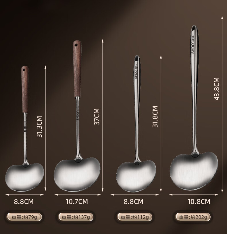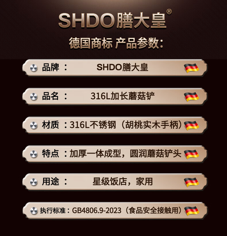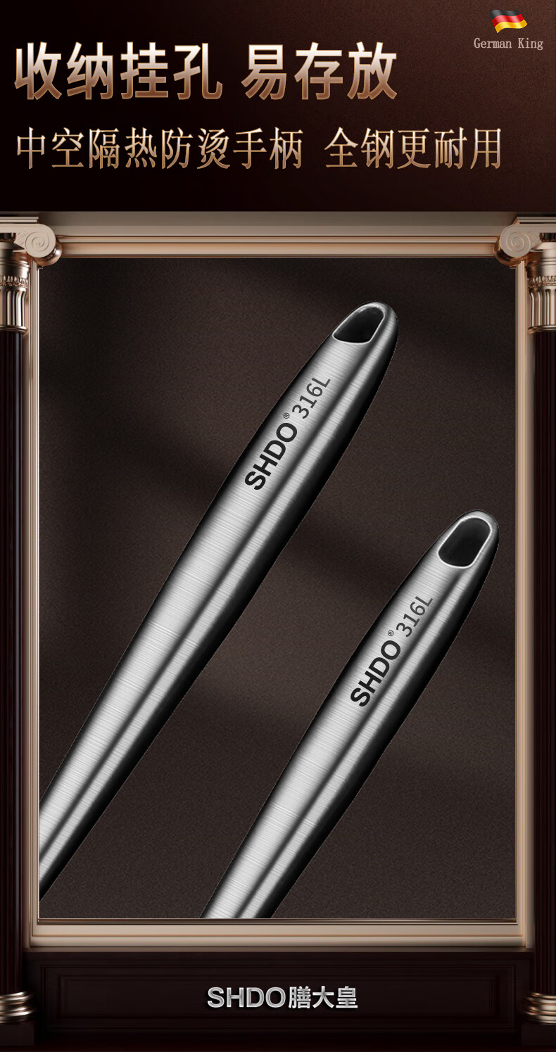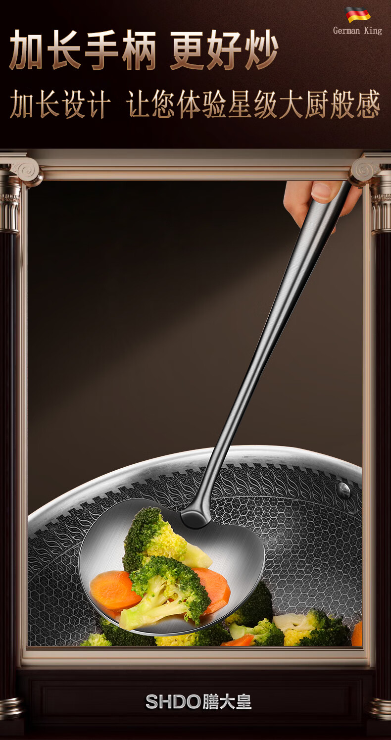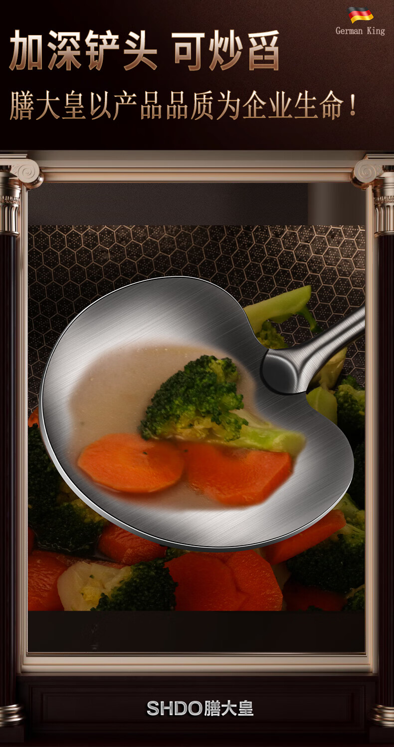 Shandahuang (SHDO) German 316L stainless steel mushroom spatula, household cooking spatula, solid wood handle frying spoon, special food-grade mushroom spatula, 316L all-steel model, extended model 44*11cm