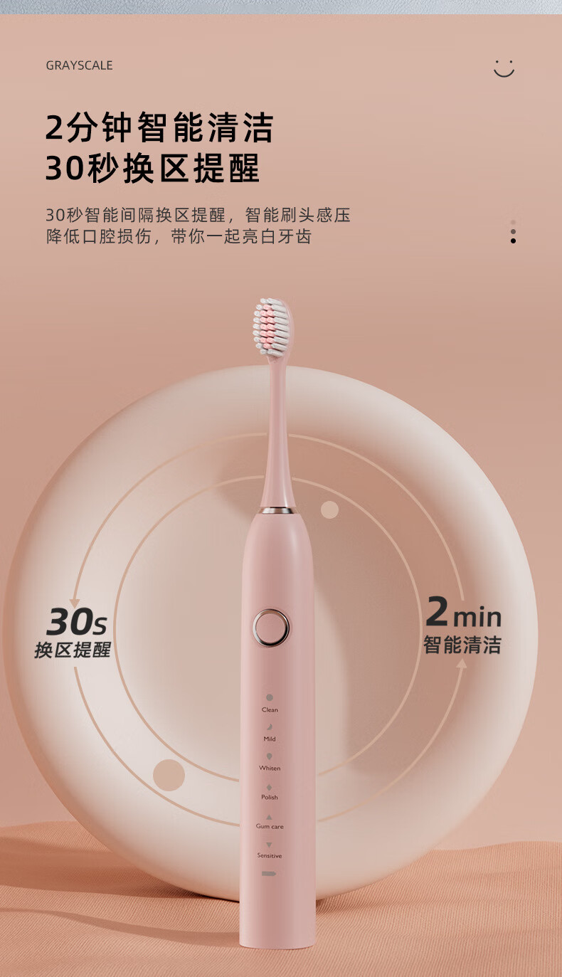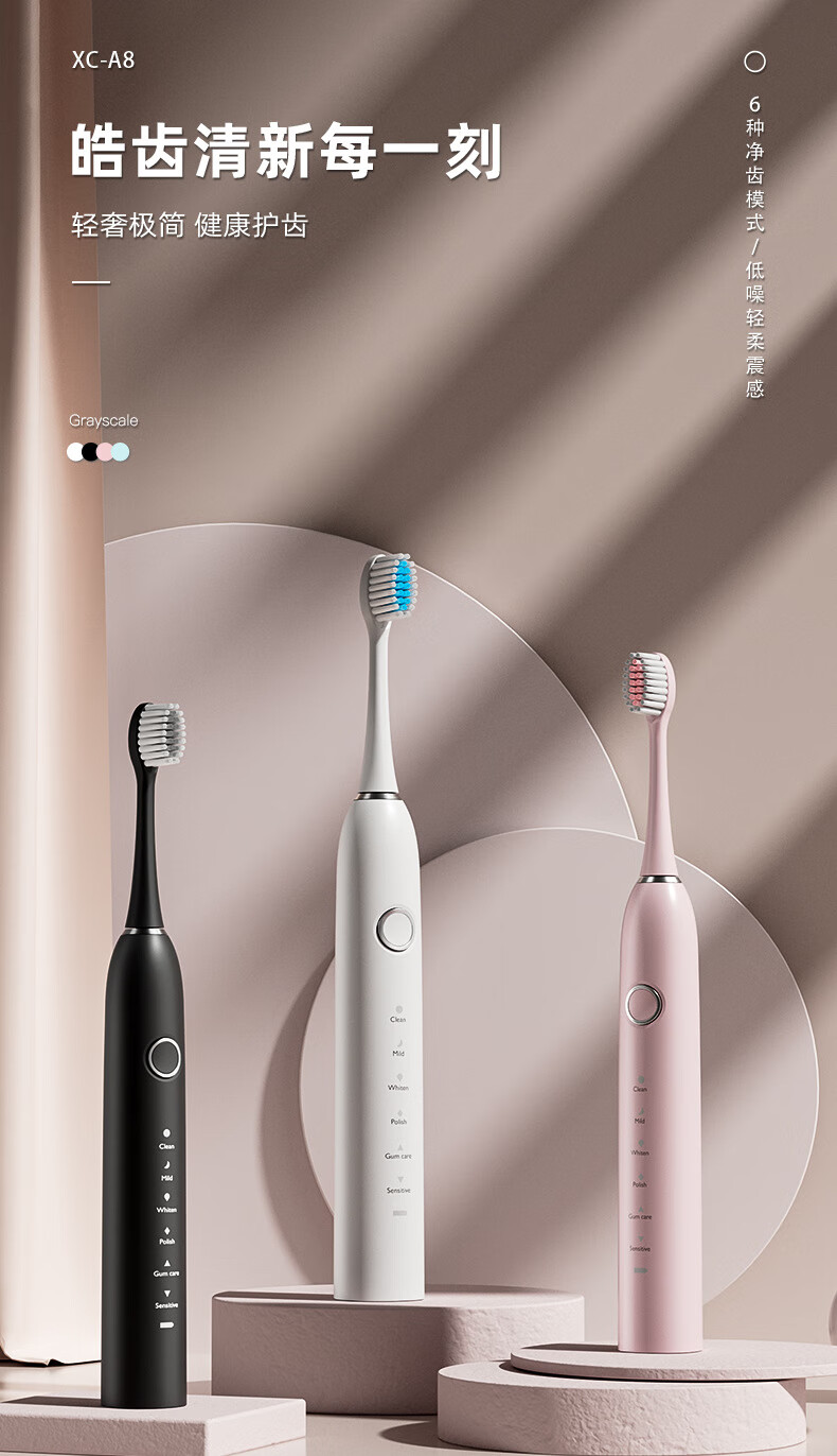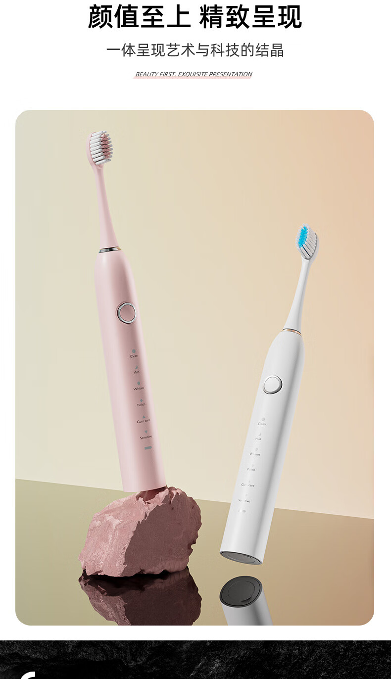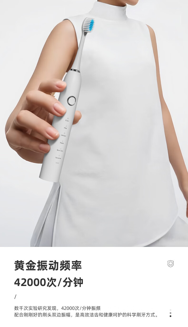 DSK电动牙刷充电款跨境成人款软毛自动声波充电式智能洁牙神器情侣款 白色【赠送8个刷头+旅行盒+支架】