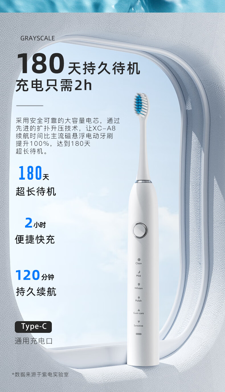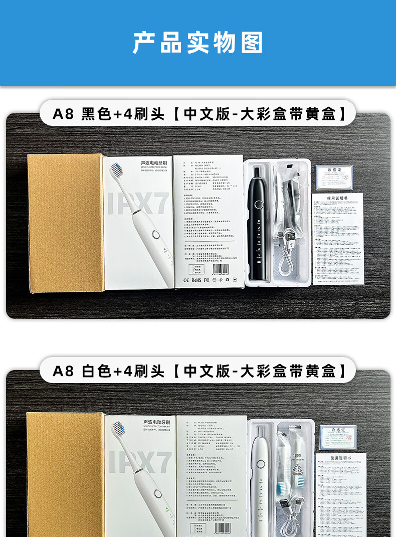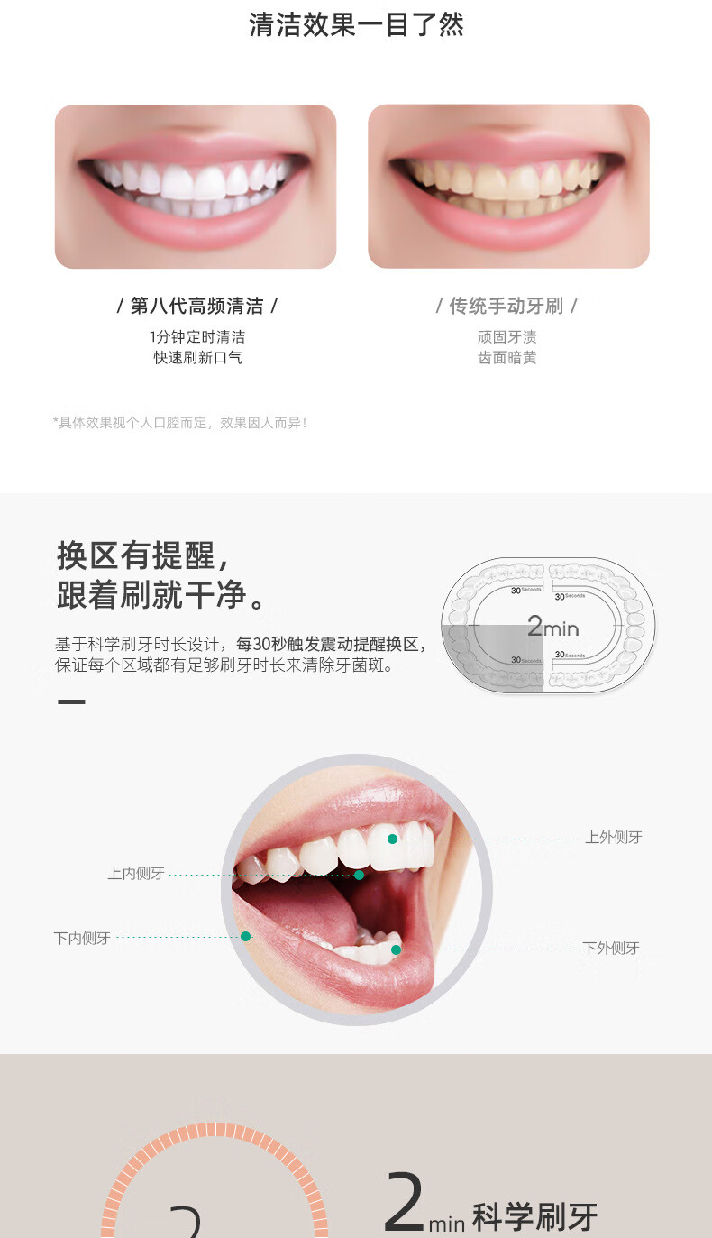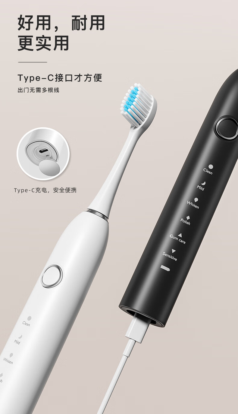 DSK电动牙刷充电款跨境成人款软毛自动声波充电式智能洁牙神器情侣款 白色【赠送8个刷头+旅行盒+支架】
