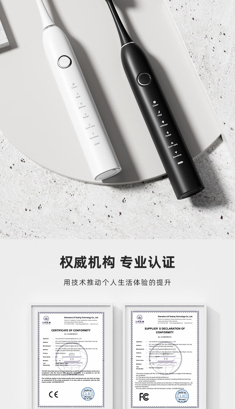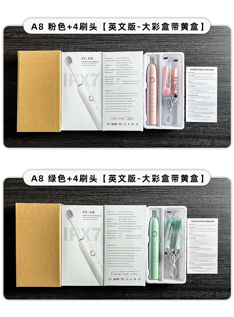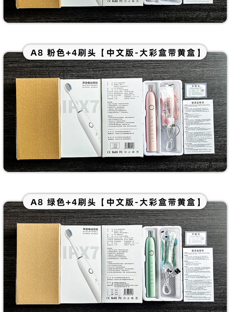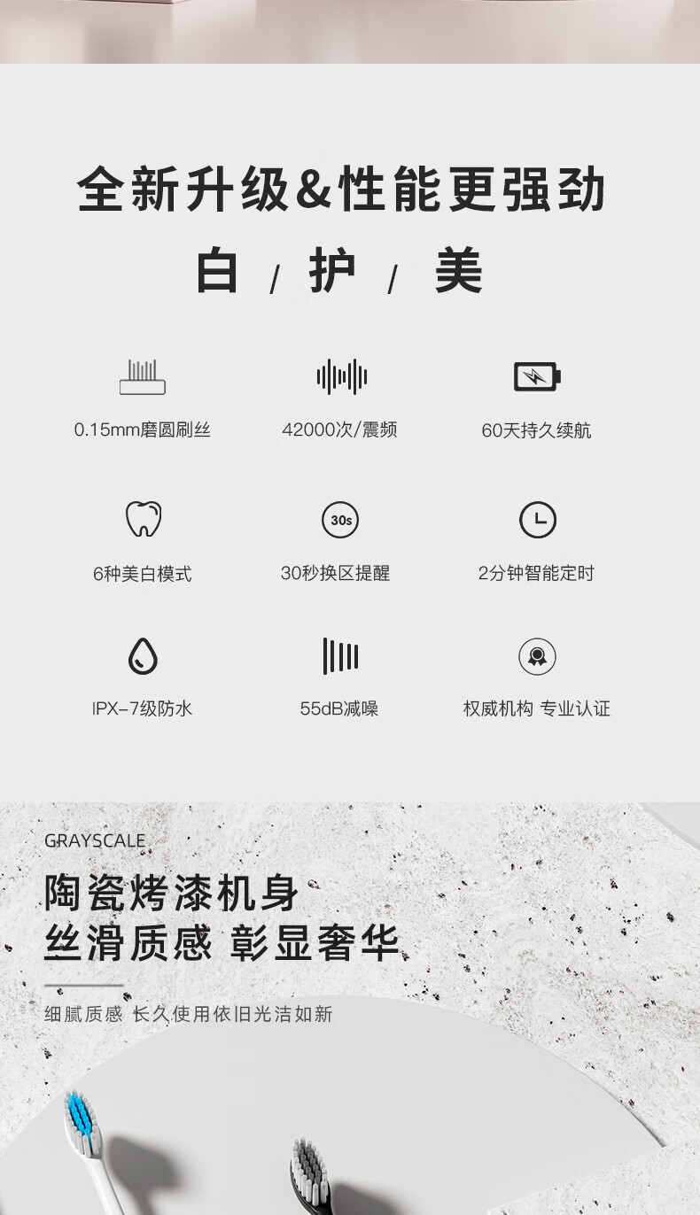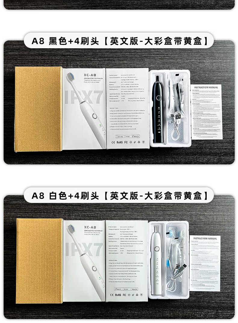 DSK电动牙刷充电款跨境成人款软毛自动声波充电式智能洁牙神器情侣款 白色【赠送8个刷头+旅行盒+支架】