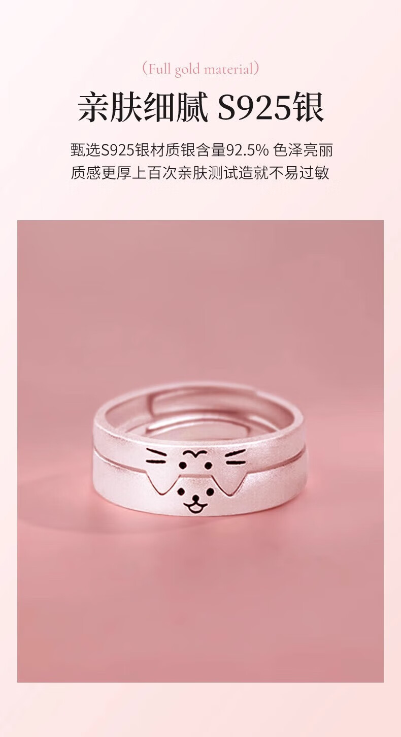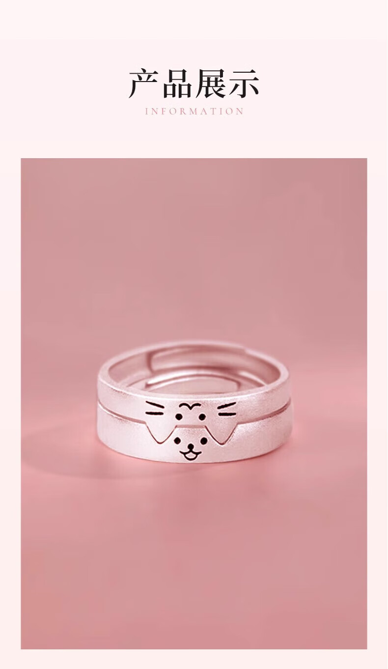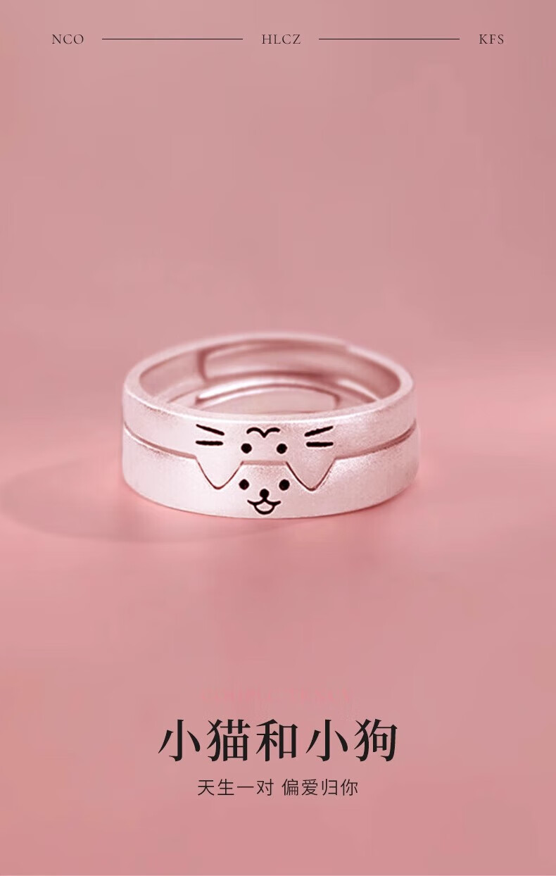 CHINA GOLD S silver ring for men and women, cute kitten and puppy couple, Valentine's Day birthday gift for girlfriend and wife, a pair of kitten and puppy rings-s925 rose gift box