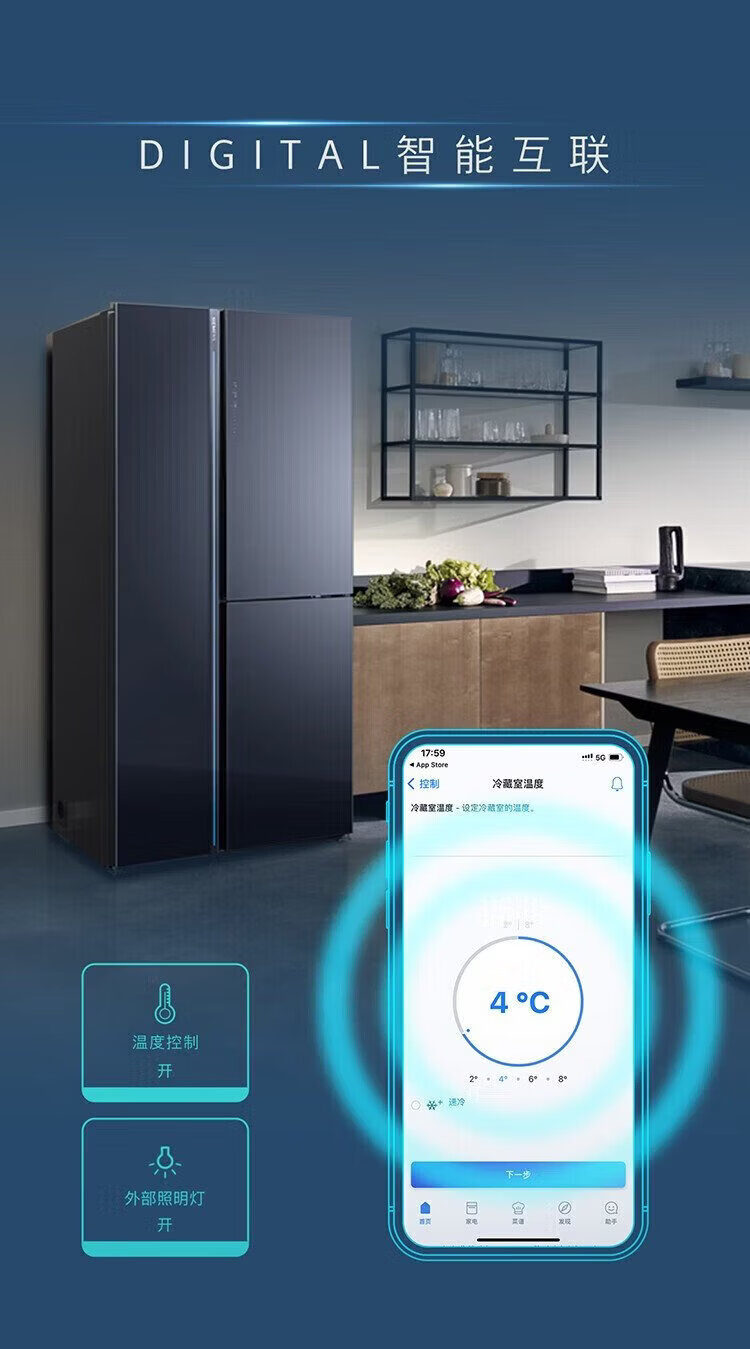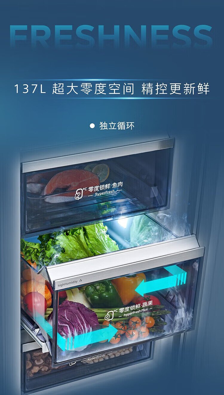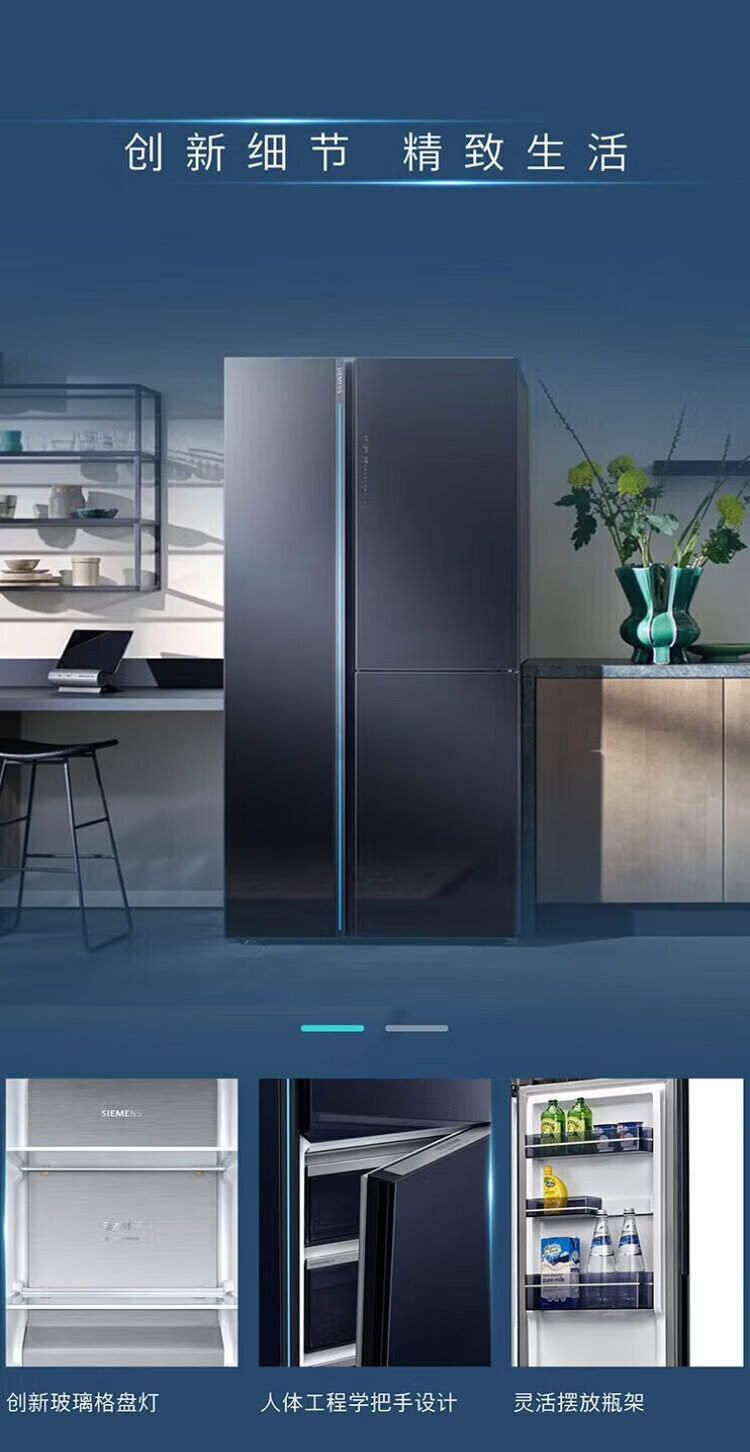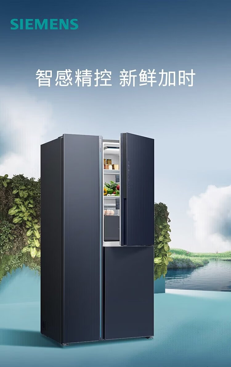 SIEMENS refrigerator with double doors 515 liters, vacuum zero-degree freshness preservation, freshness and thawing chamber, independent cycle, frost-free, intelligent interconnection, first-level energy efficiency, iQ700 series KT92PA658C, with automatic ice maker