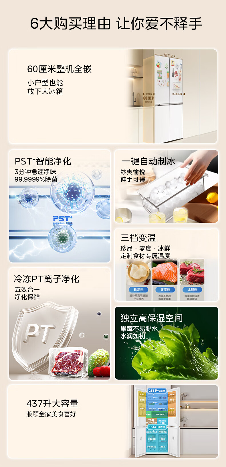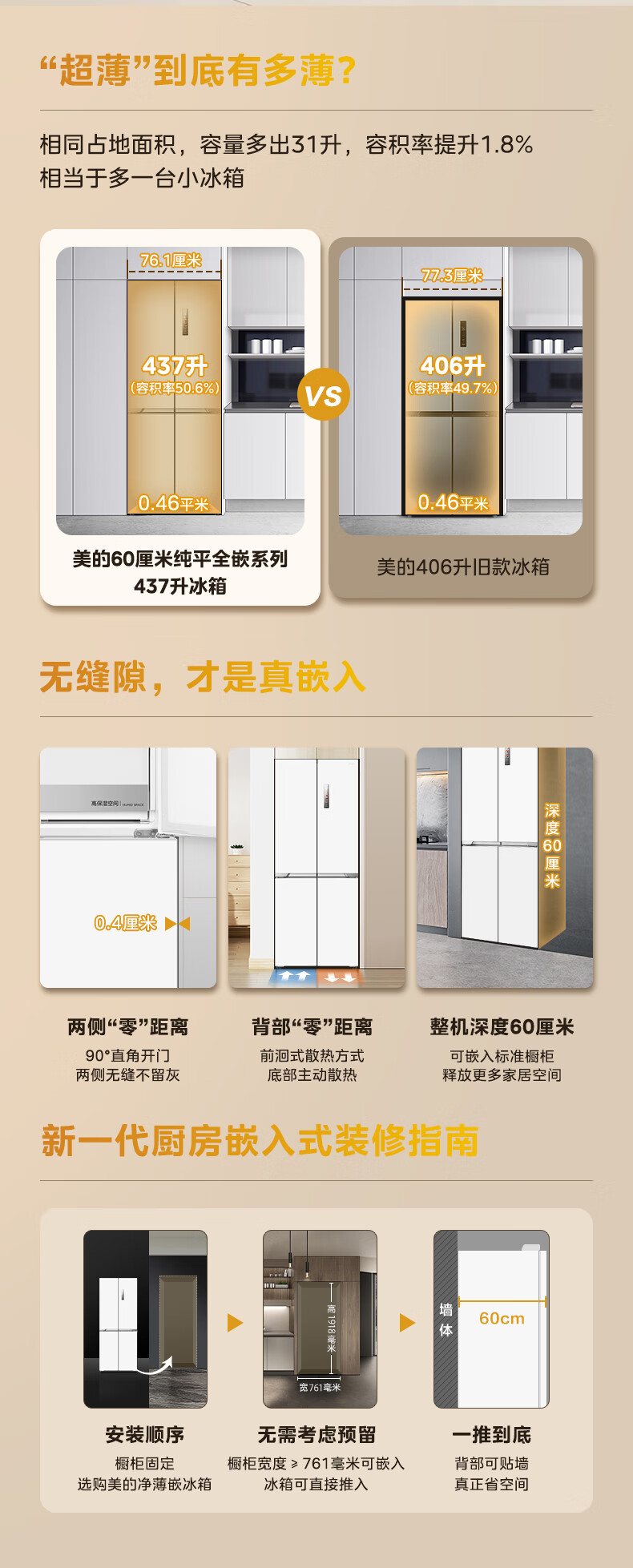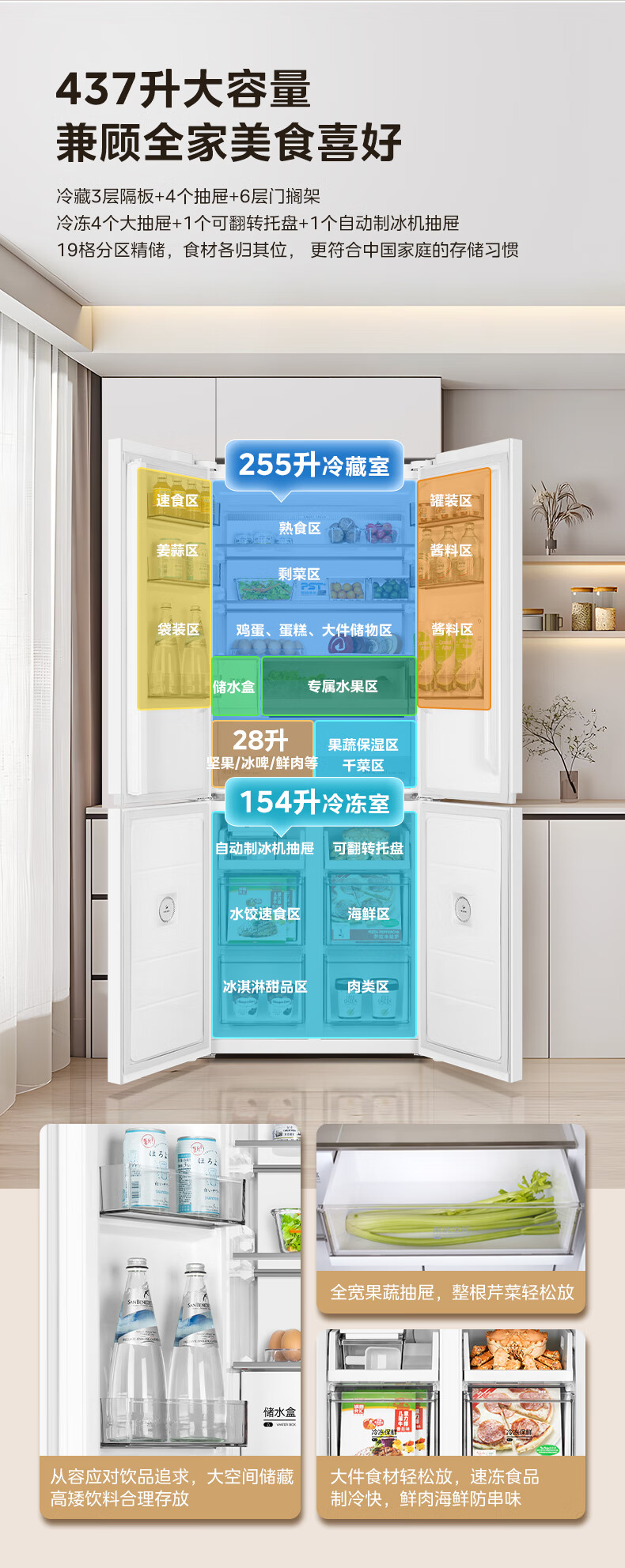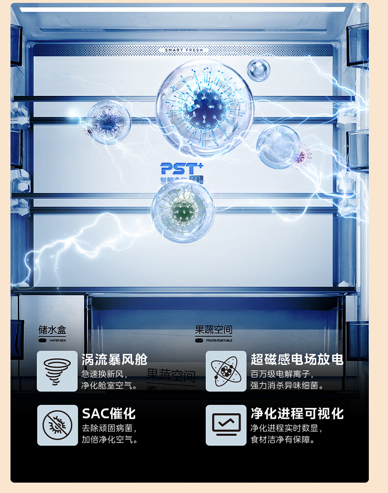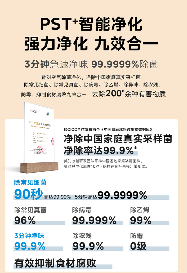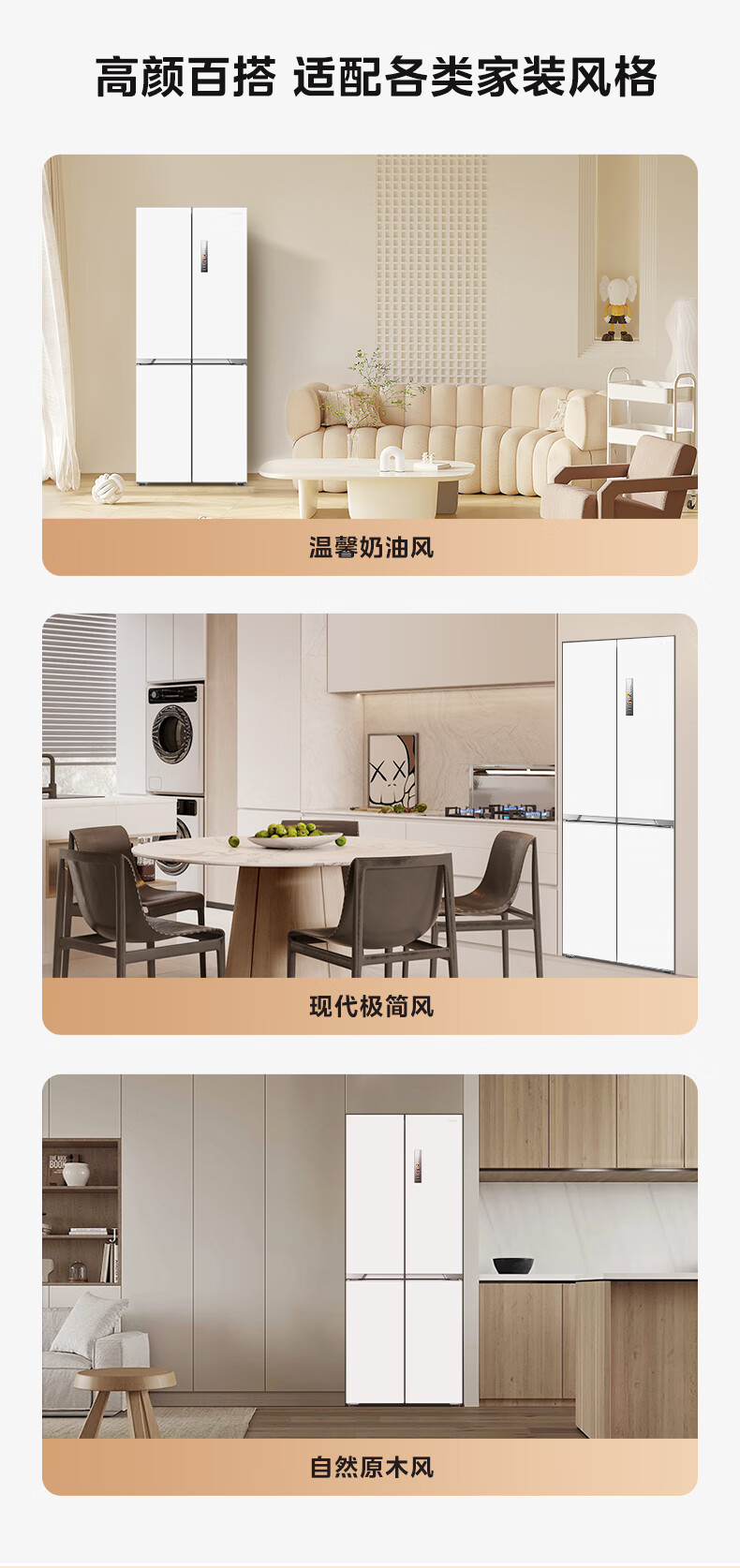 Midea 460 cross-door, high-looking, white, large-capacity, bottom cooling, air-cooled, frost-free, automatic ice making, household refrigerator, ice making machine, intelligent odor purification MR-460WUSPZE polar white