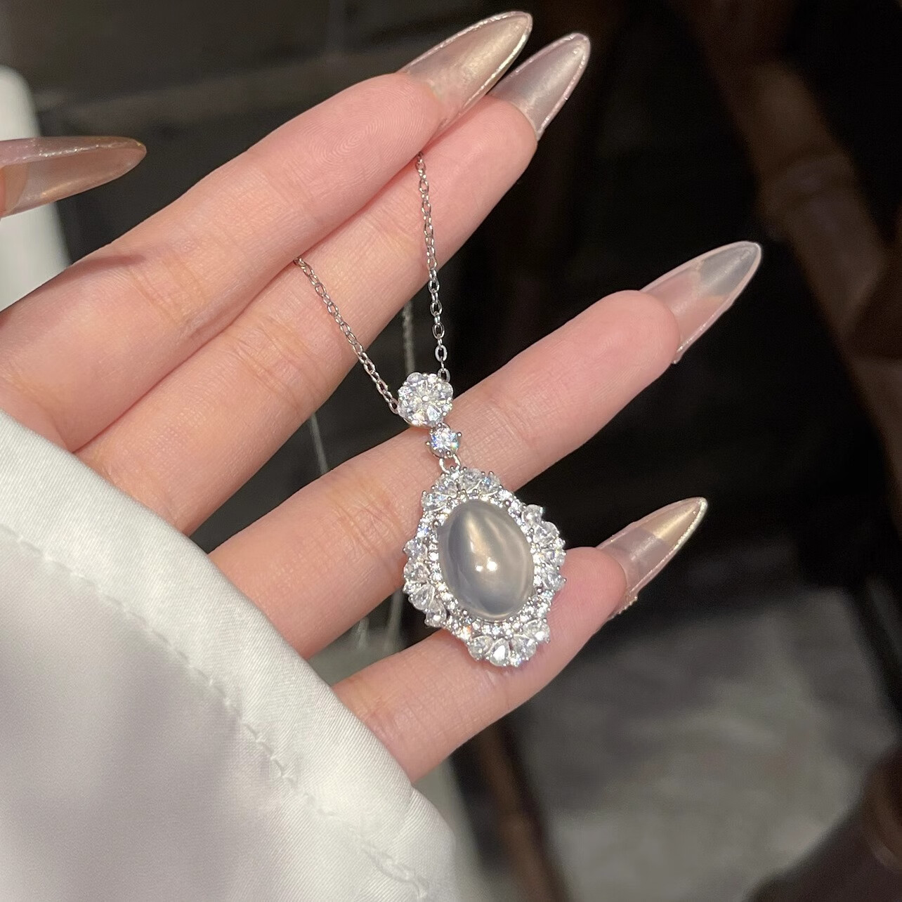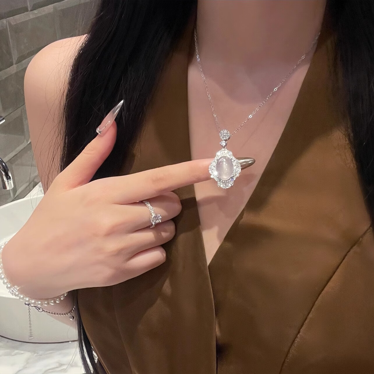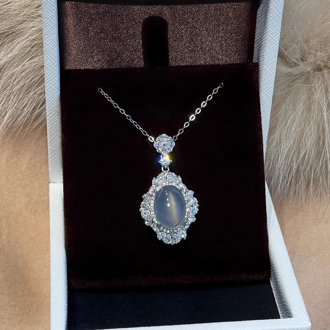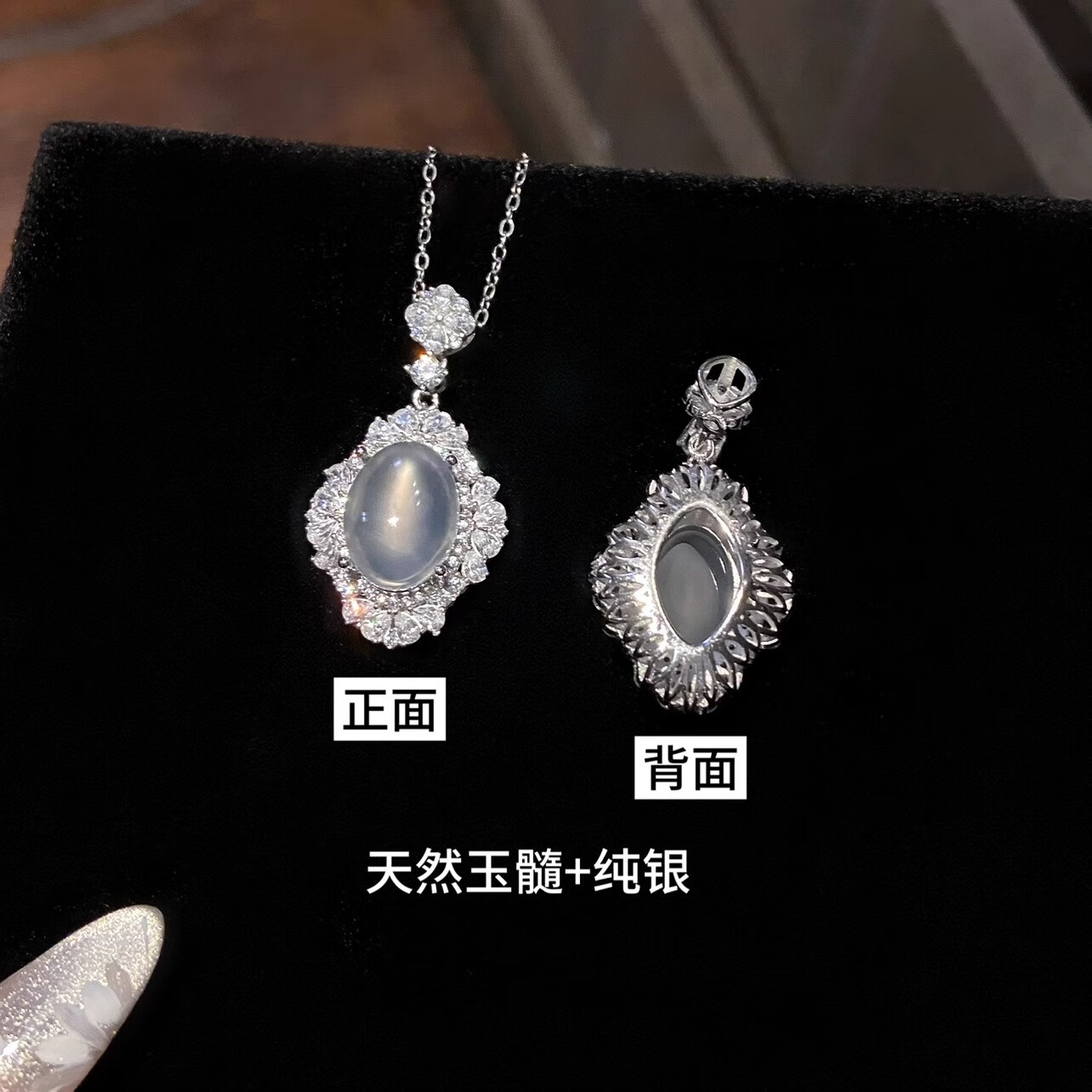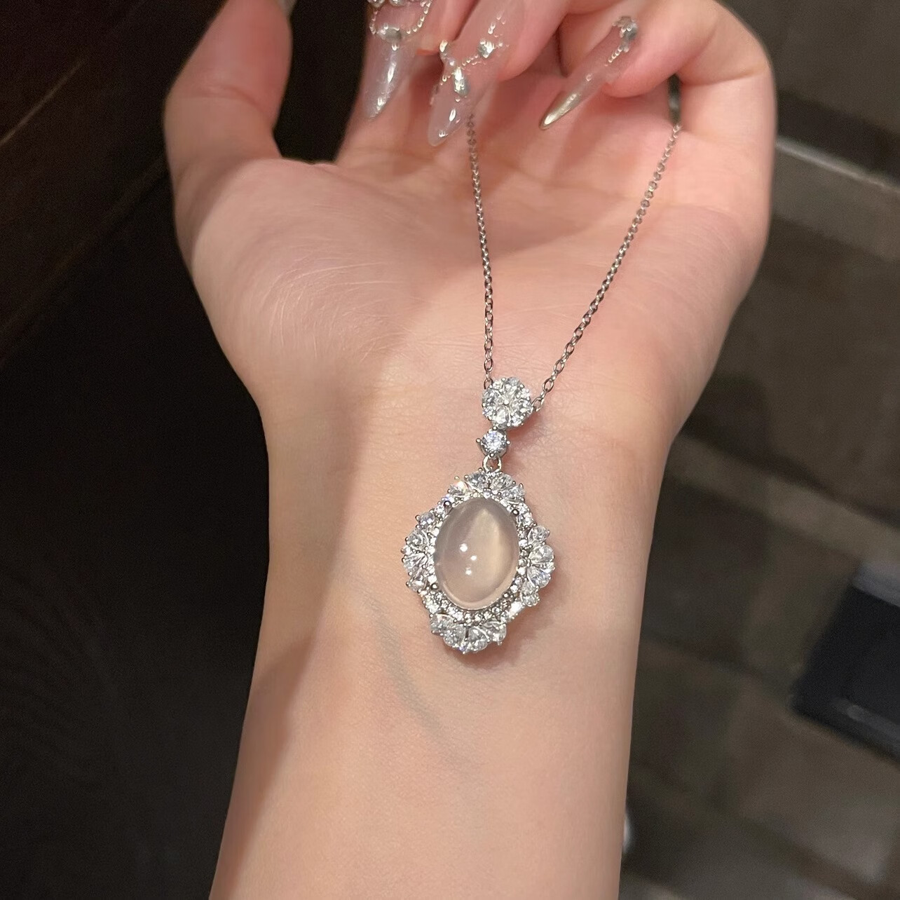 Yijin Gao Bing Chalcedony Pendant Necklace Women's New Chinese Style Necklace S925 Sterling Silver Popular Necklace Clavicle Chain as a Gift for Girlfriend Gao Bing Chalcedony Pure Silver Necklace Quality Gift Box
