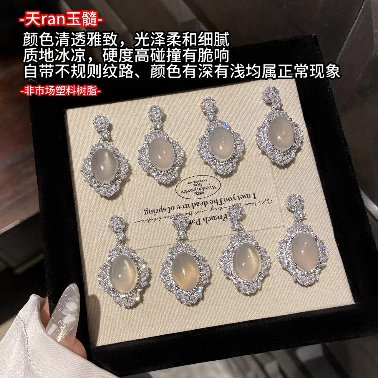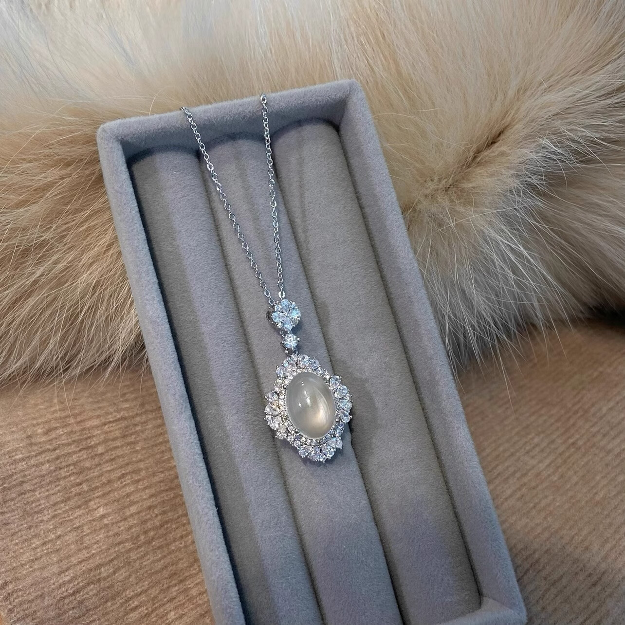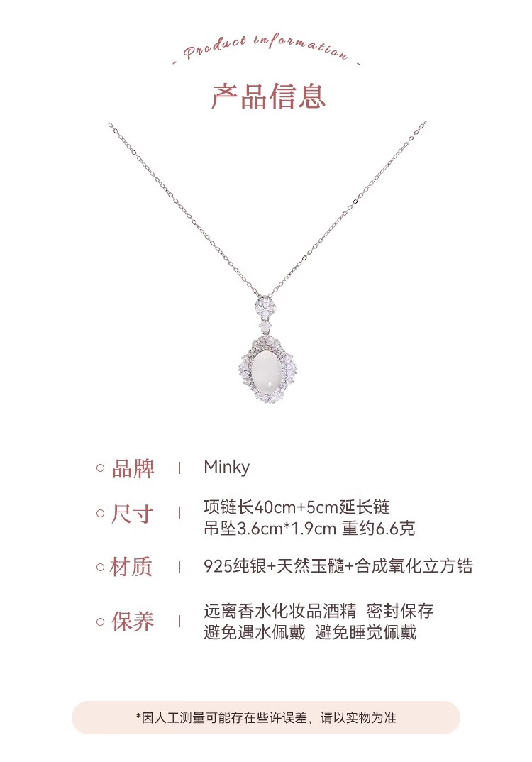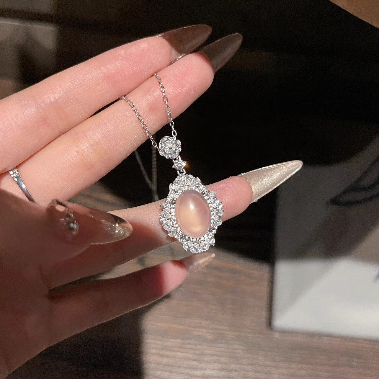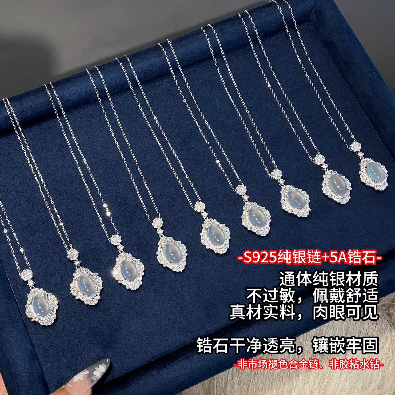 Yijin Gao Bing Chalcedony Pendant Necklace Women's New Chinese Style Necklace S925 Sterling Silver Popular Necklace Clavicle Chain as a Gift for Girlfriend Gao Bing Chalcedony Pure Silver Necklace Quality Gift Box
