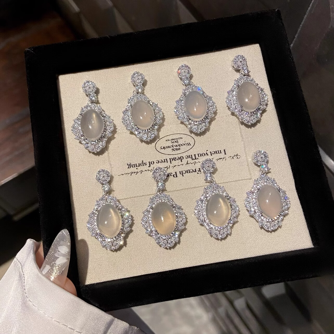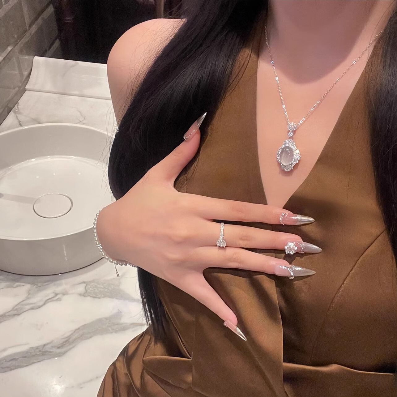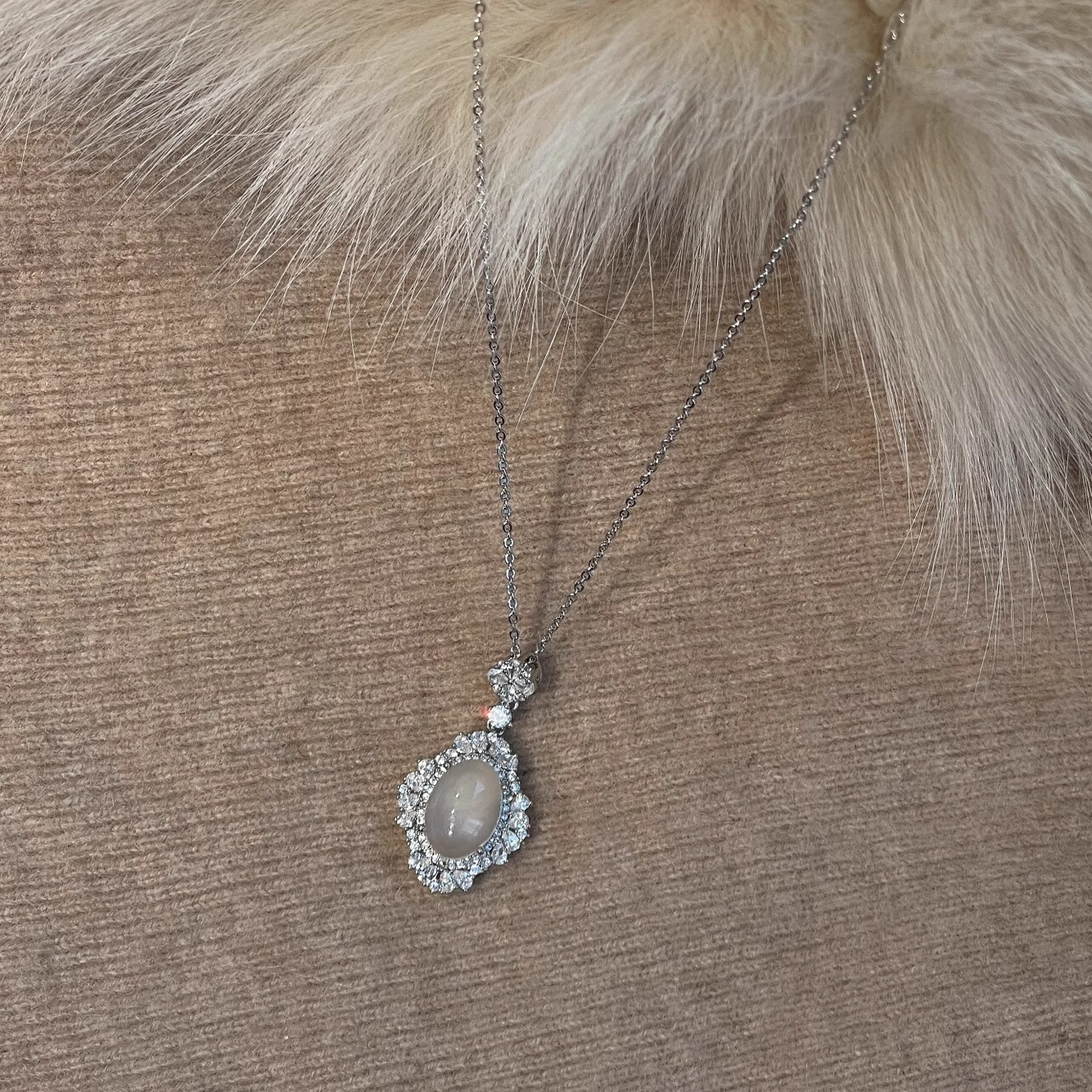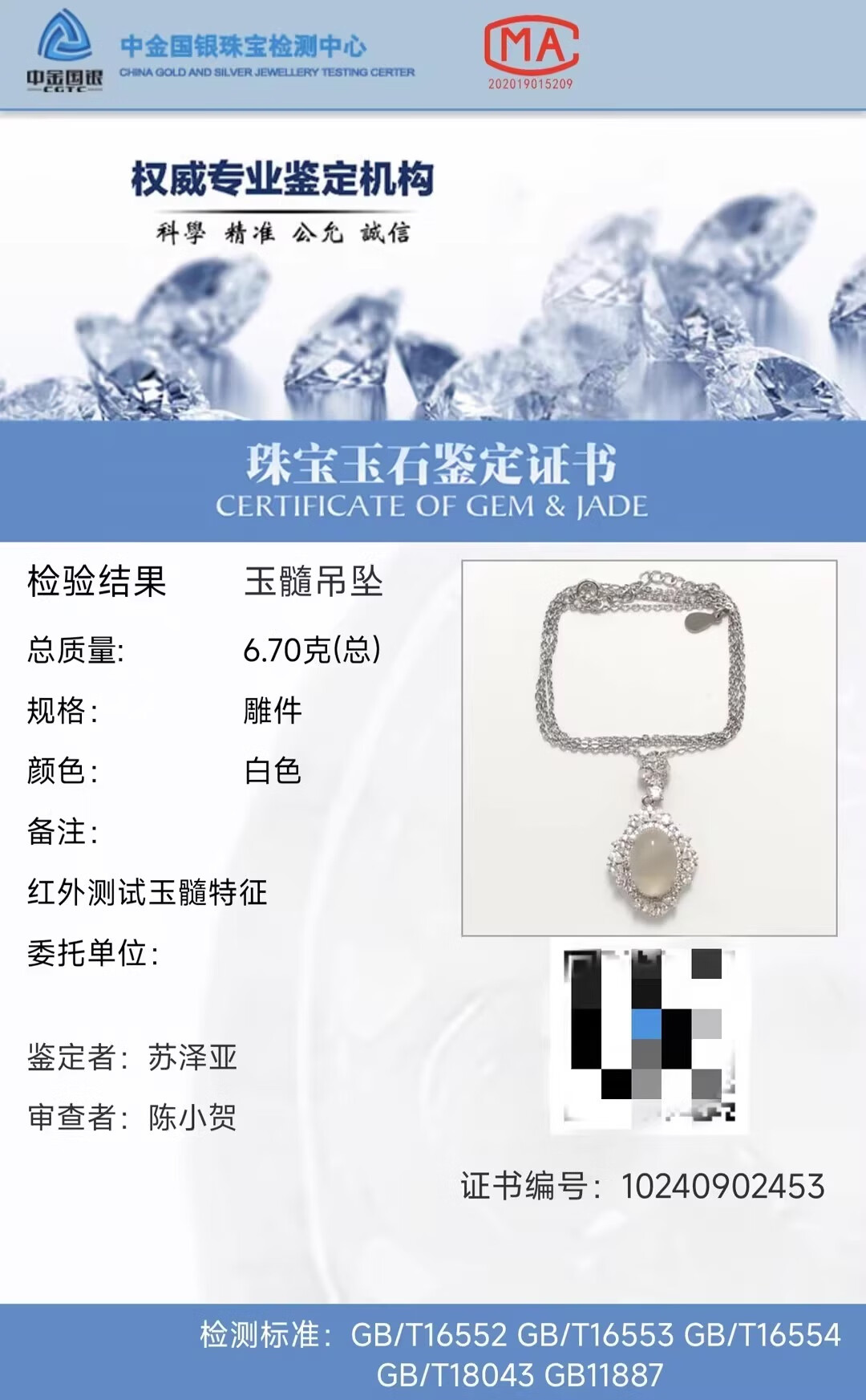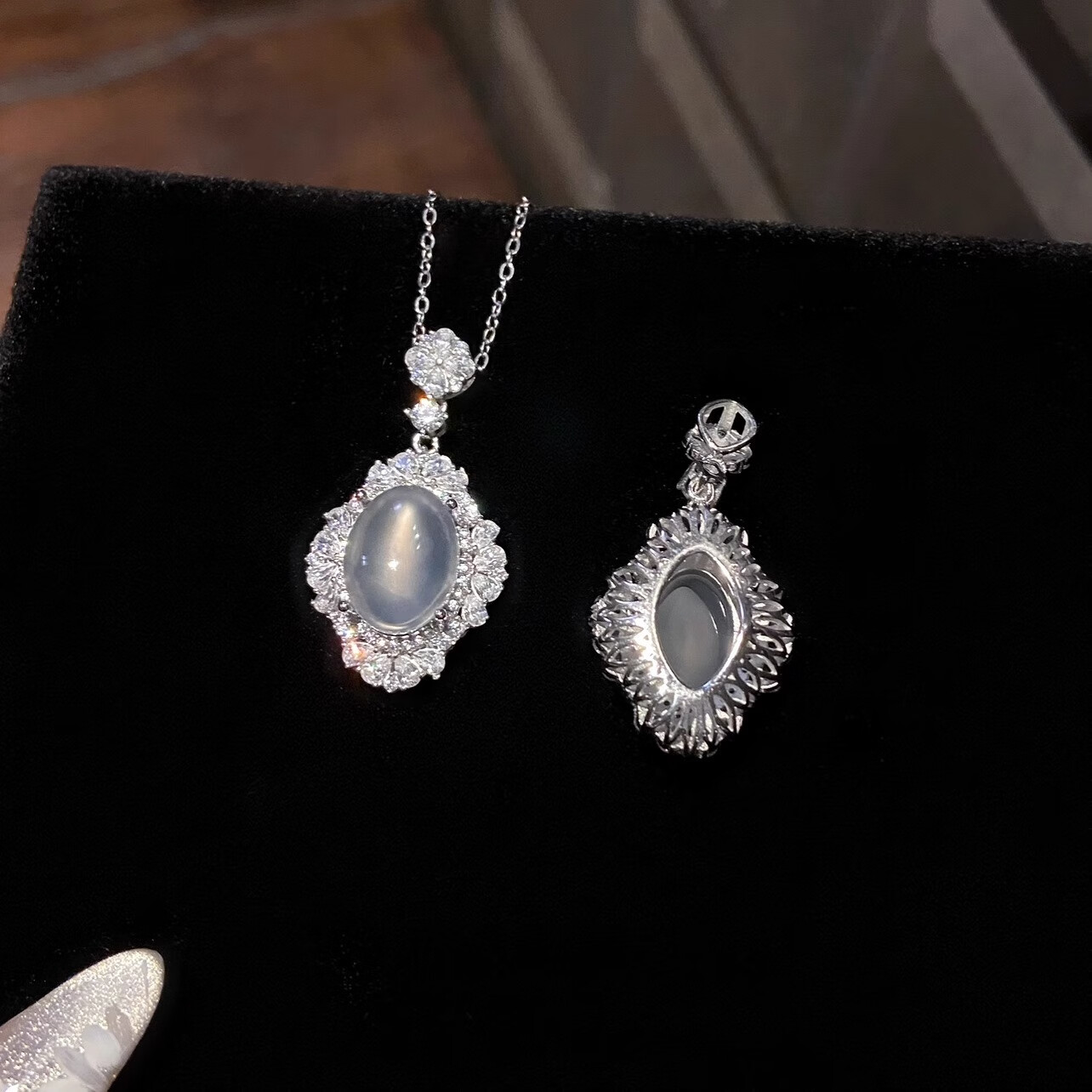 Yijin Gao Bing Chalcedony Pendant Necklace Women's New Chinese Style Necklace S925 Sterling Silver Popular Necklace Clavicle Chain as a Gift for Girlfriend Gao Bing Chalcedony Pure Silver Necklace Quality Gift Box