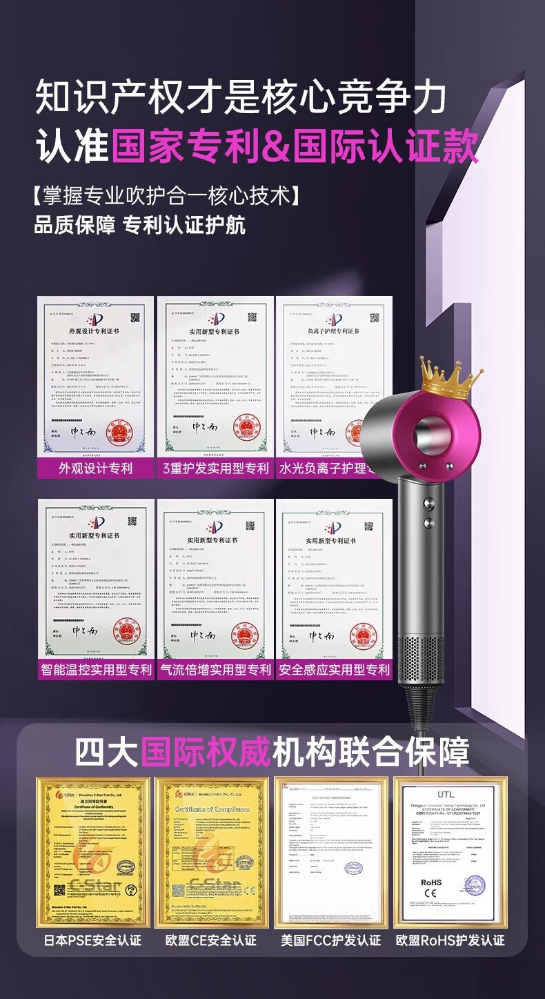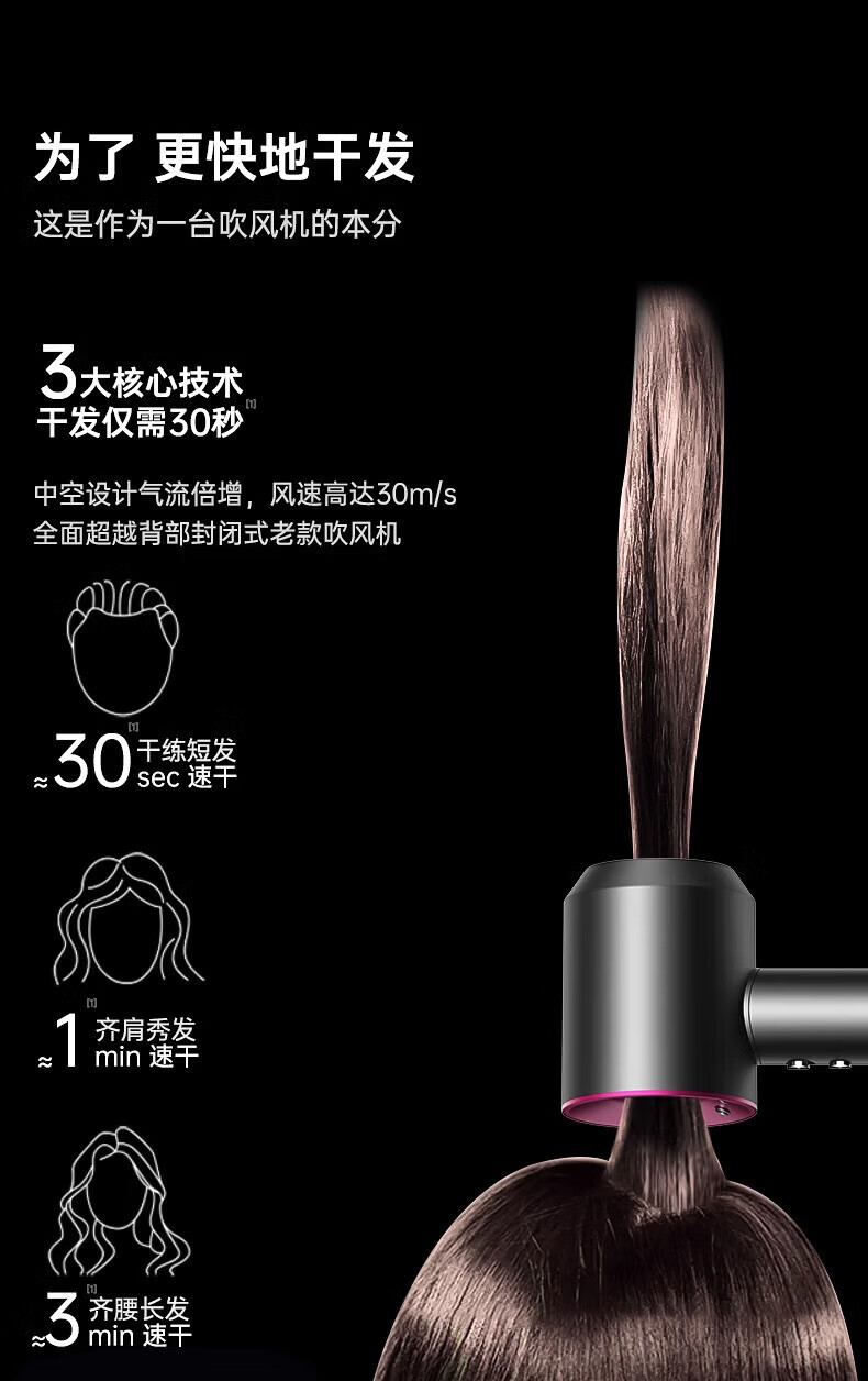 Selected Leifen National 3C certification丨4.5 billion negative ions for hair care High-speed bladeless hair dryer with high power and no damage to hair Home silent negative ions quick drying constant temperature Next day delivery Single air nozzle Ceramic gold 100 million level negative ions丨5 seconds constant temperature quick drying