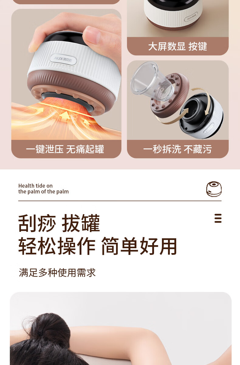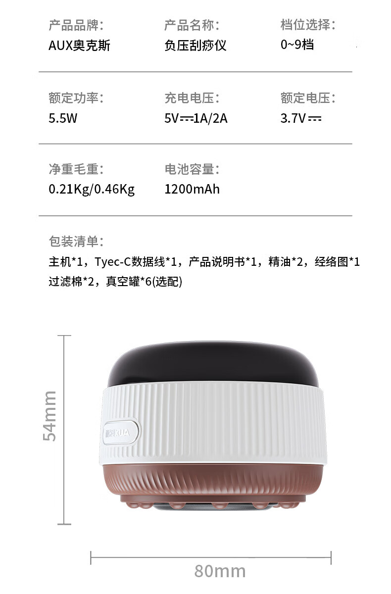 AUX electric cupping device, scraping instrument, massage artifact, electric cupping device, household scraping board brush, negative pressure cupping device, meridian dehumidification and dredging all-in-one machine, sent to parents in summer, standard model, suction cup*1, economical and affordable