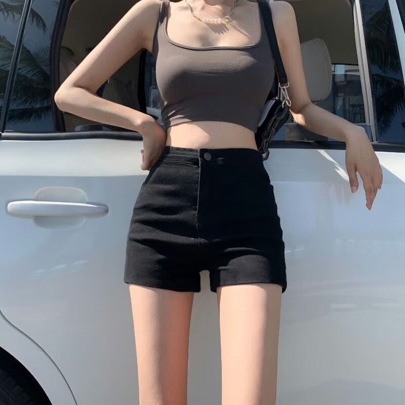 Jin Bingsheng black shorts for women summer new style denim tight small slim high-waisted A-line hot girl sexy hip-covering hot pants black denim hot pants M recommended 95-105 Jin Jin is equal to 0.5 kg