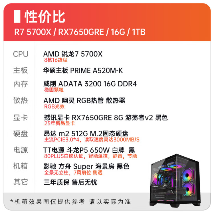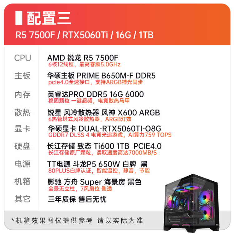 ASUS Ryzen R7 5700X/9600X/5060 host computer Delta game high frame e-sports DIY assembly computer desktop assembly machine complete machine Contact customer service for additional parts/DIY upgrade (single shot will not be shipped)