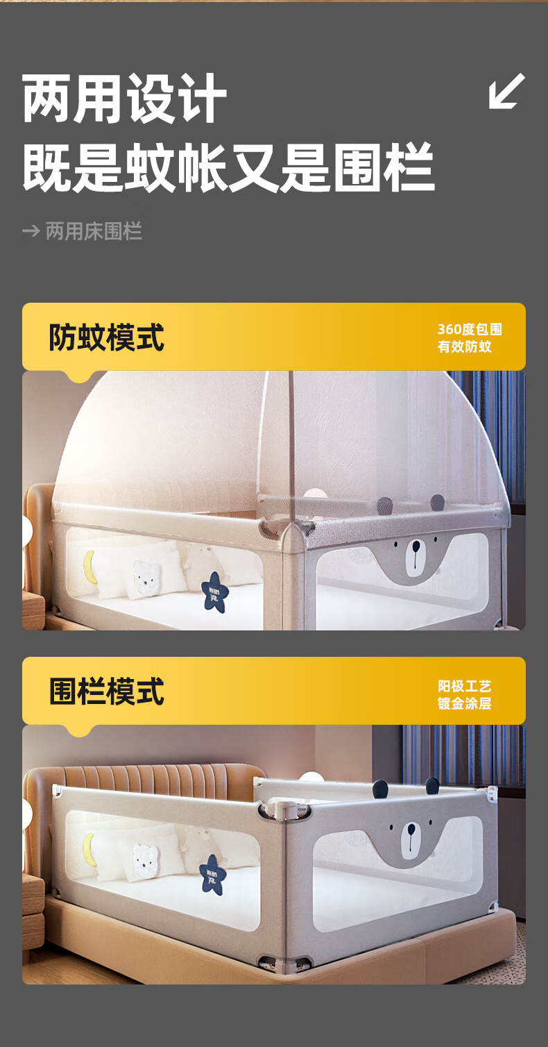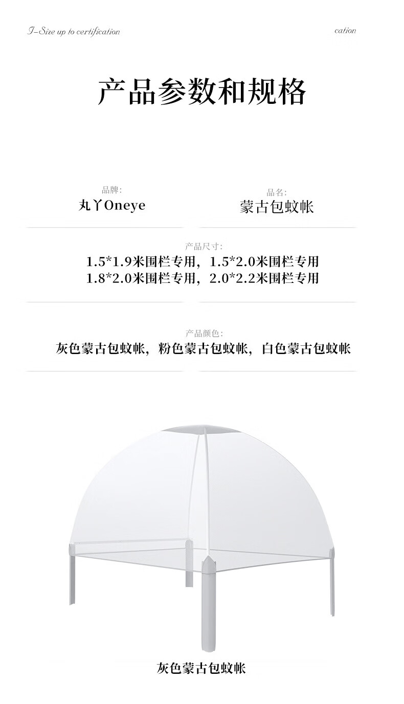 Maruya mosquito net accessories Maruya anti-fall mosquito net Mongolian mosquito net children's crib fence special mosquito net single mosquito net k2 gray and white yurt | single mosquito net without girth 1.8m*2.0m bed