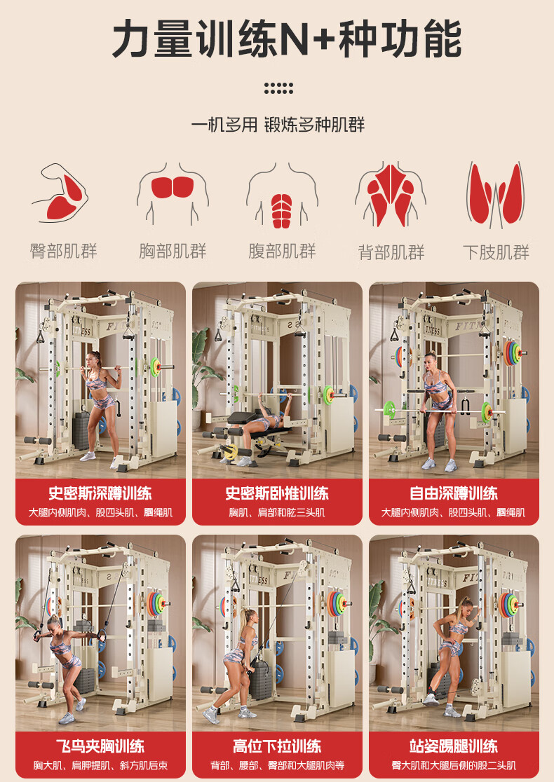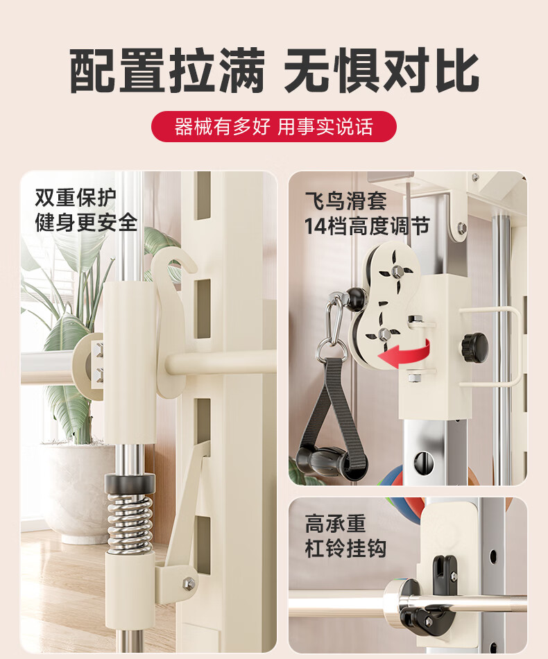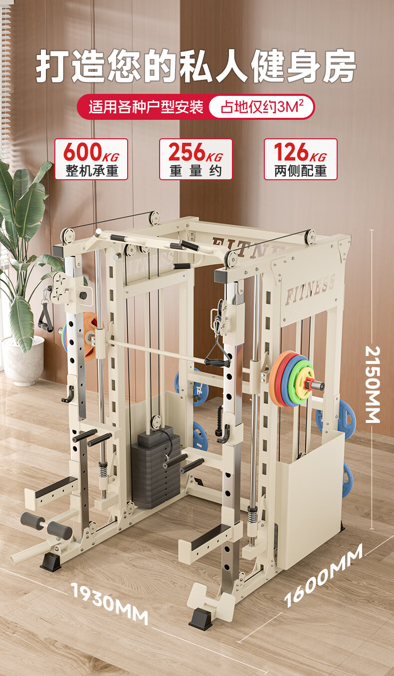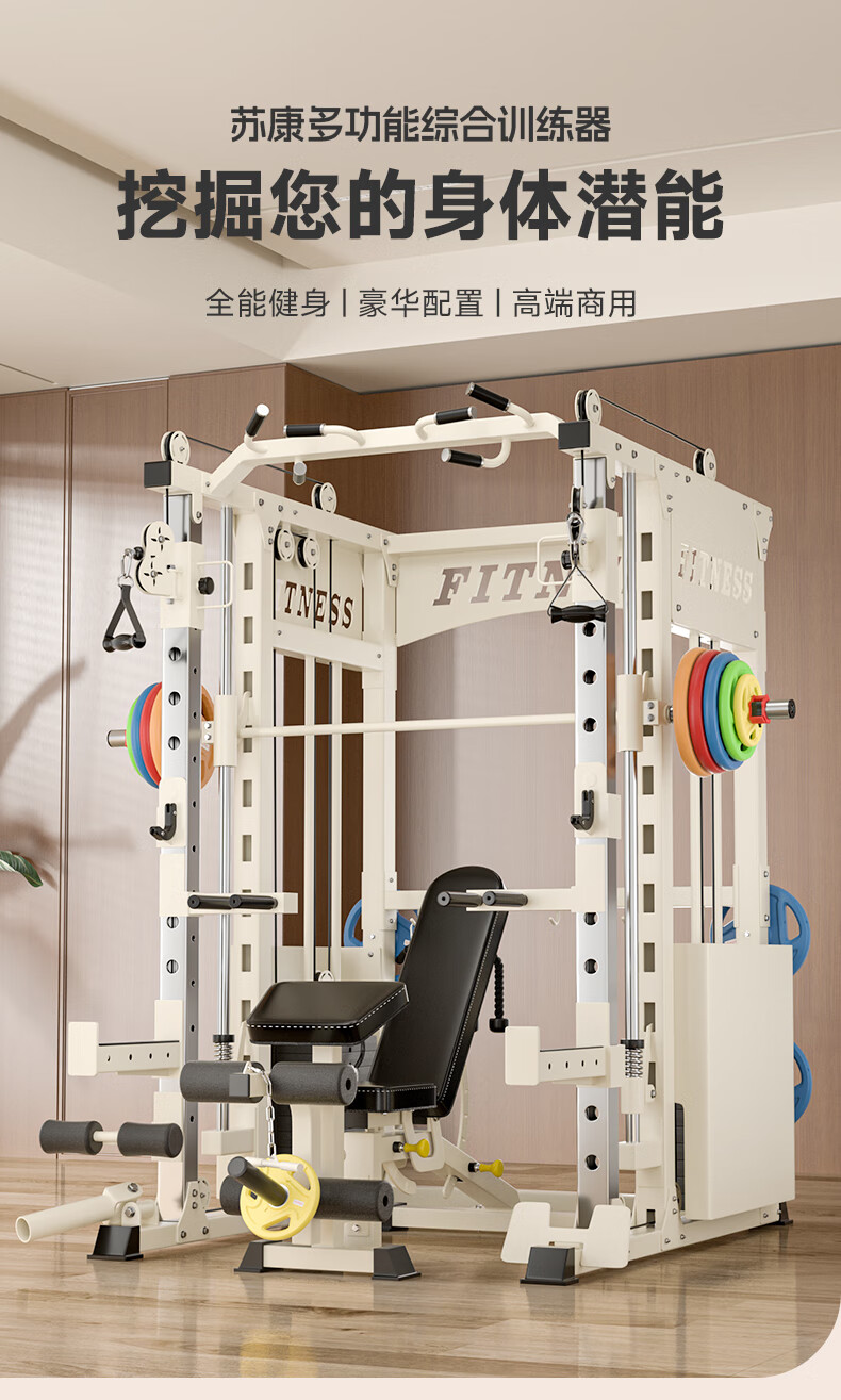 Sukang A2 household gantry comprehensive training equipment multi-function all-in-one machine Smith machine pull-up squat rack A2+1.8 Austrian bar+dumbbell bench+50KG black piece