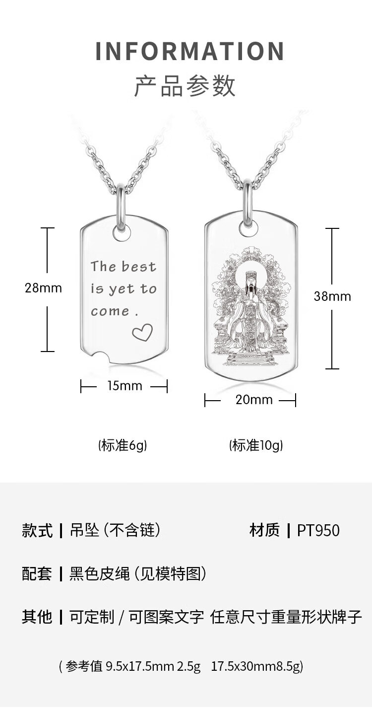 Sui Sui Fu platinum one piece custom pendant Pt950 full platinum ring photo birthday engraving platinum military medal customized with picture platinum gold medal 5g (28*15mm)