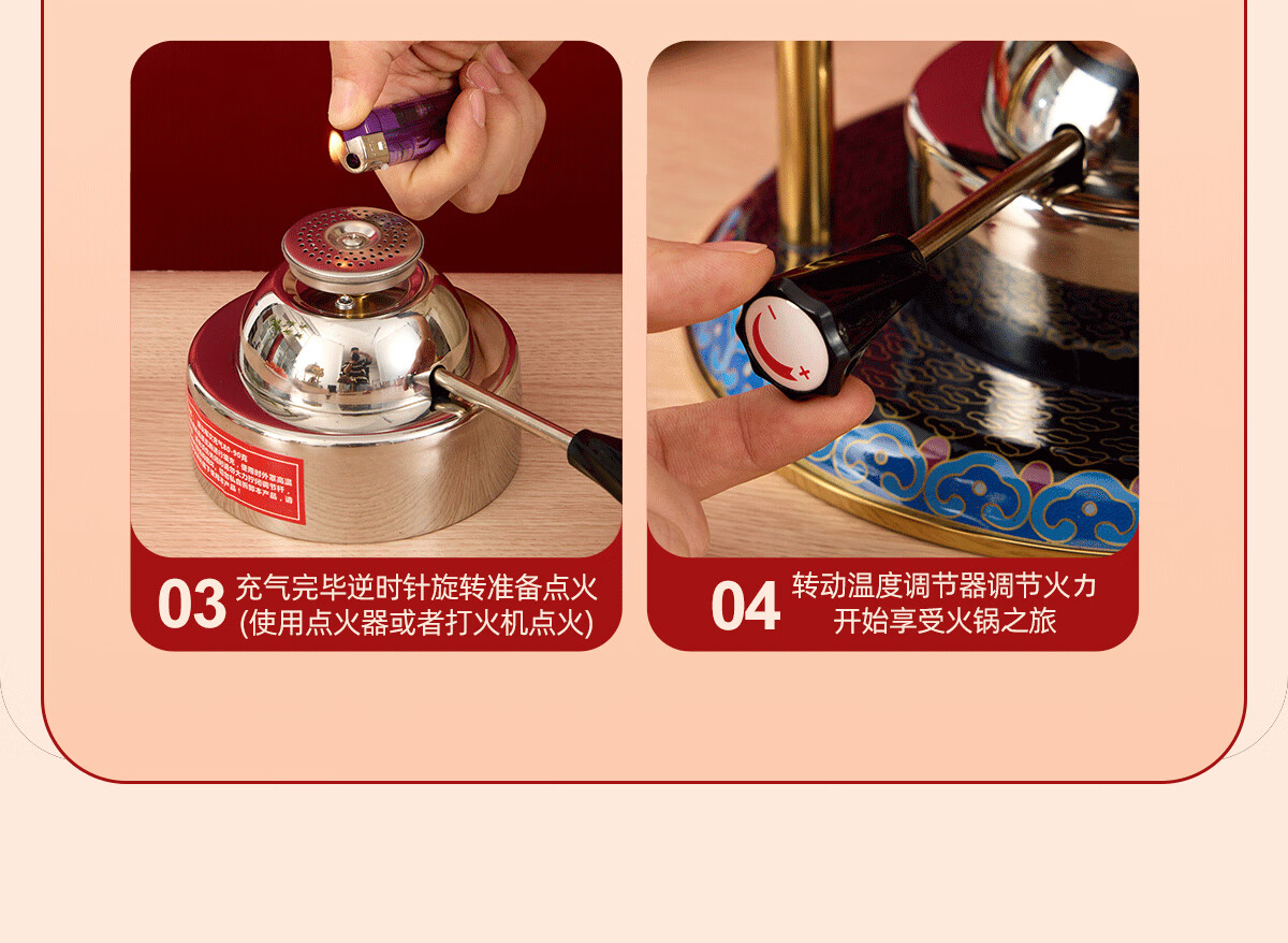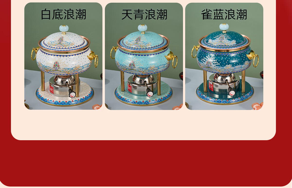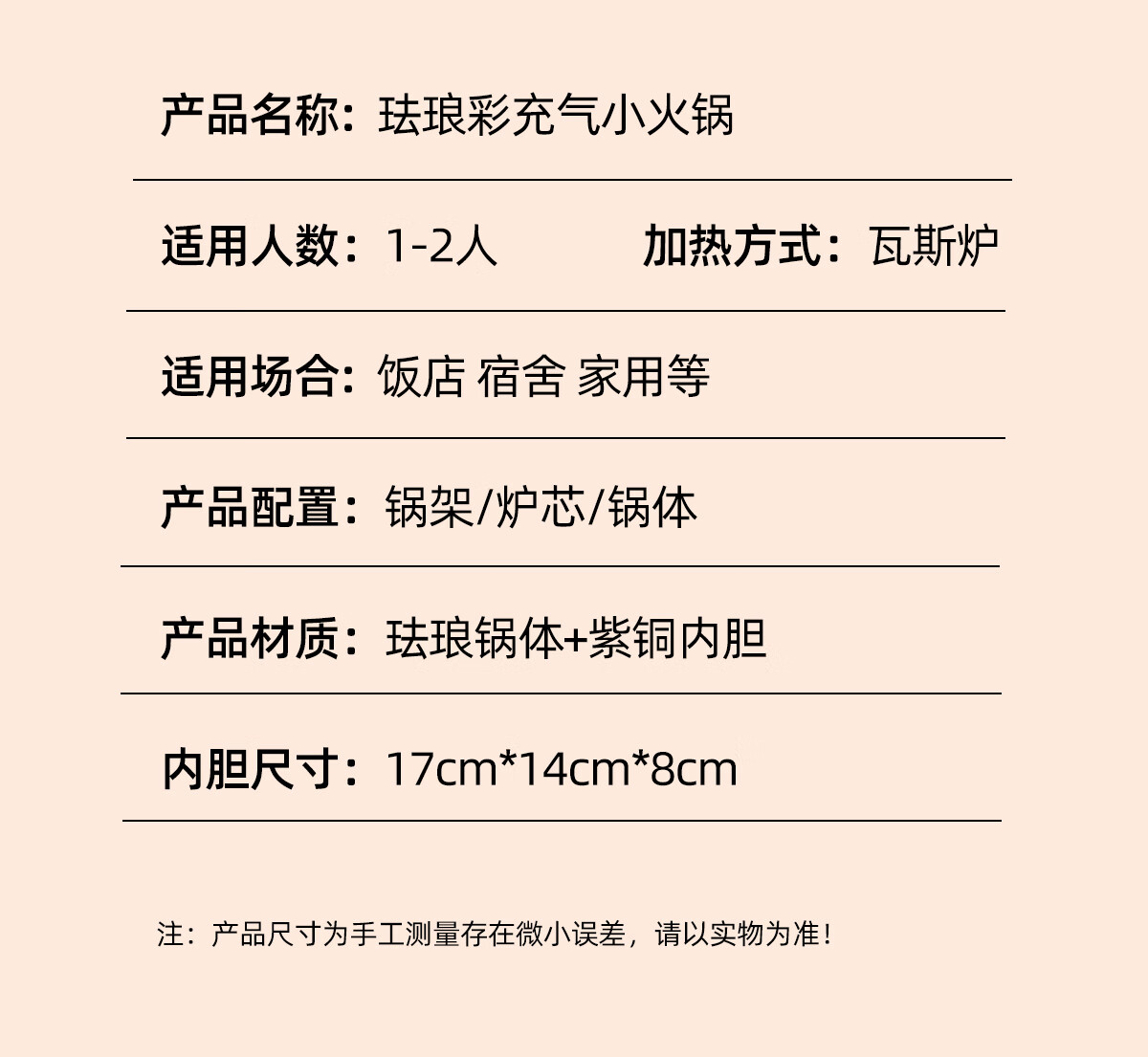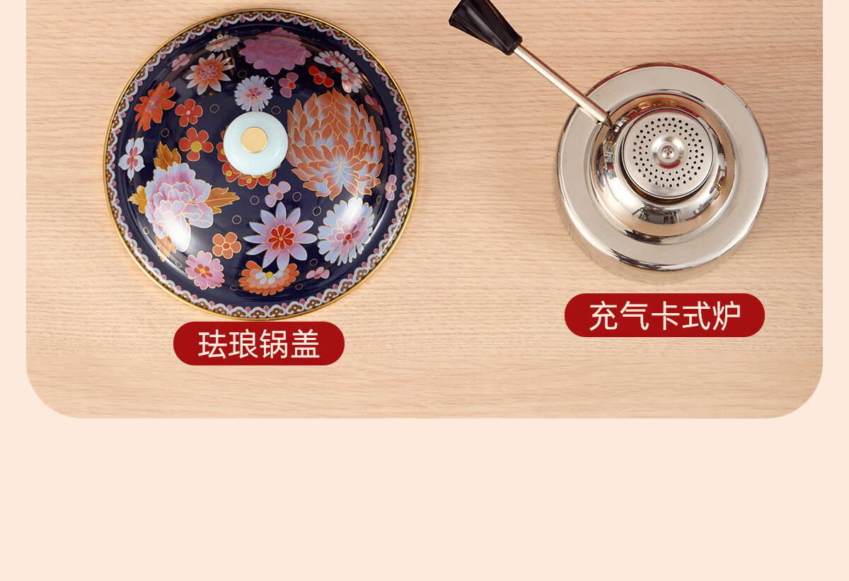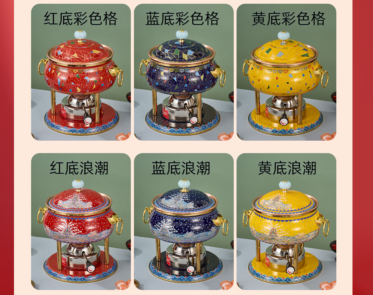 Jing'ao enamel single-person copper pot inflatable small hot pot, one person and one pot, commercial high-end copper hot pot, small gas stove for home use, color grid model, yellow bottom, free inflatable stove core 16cm