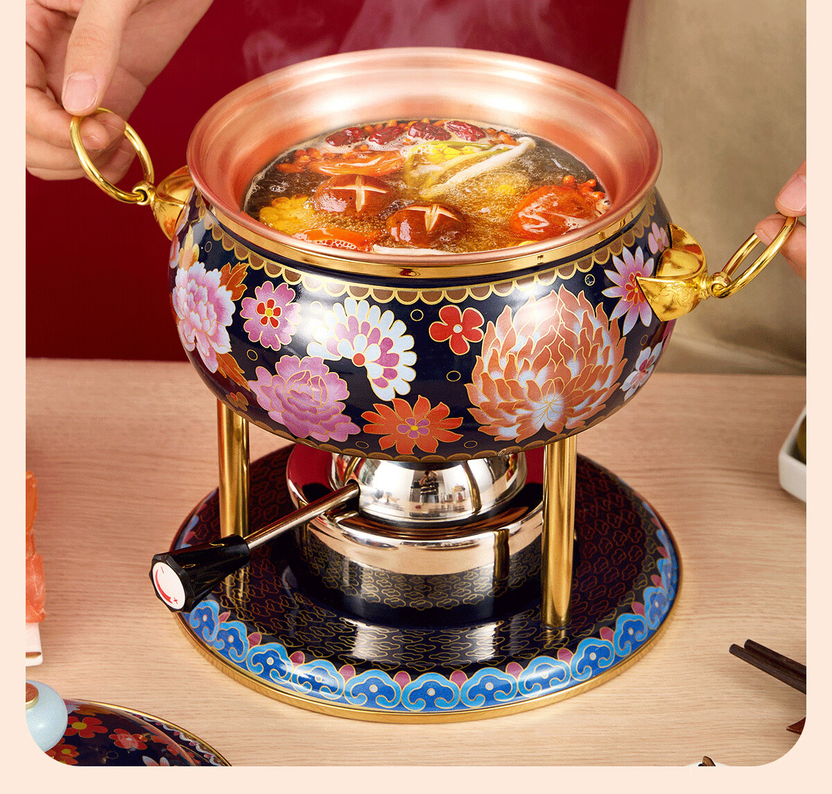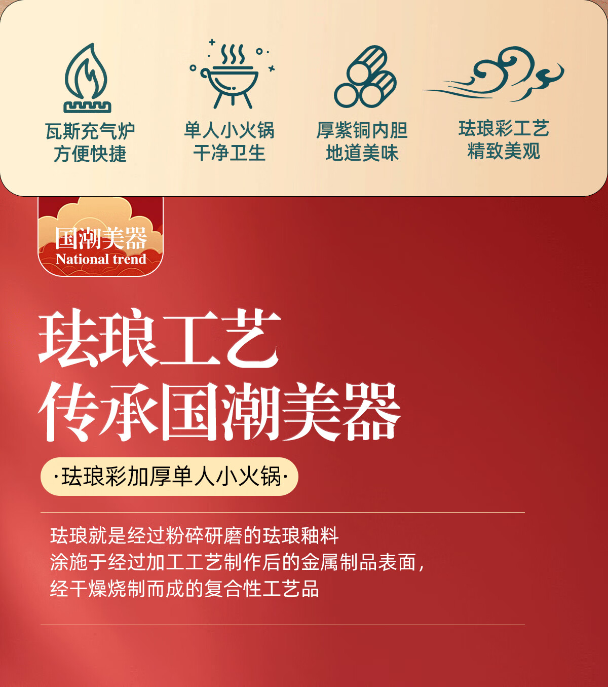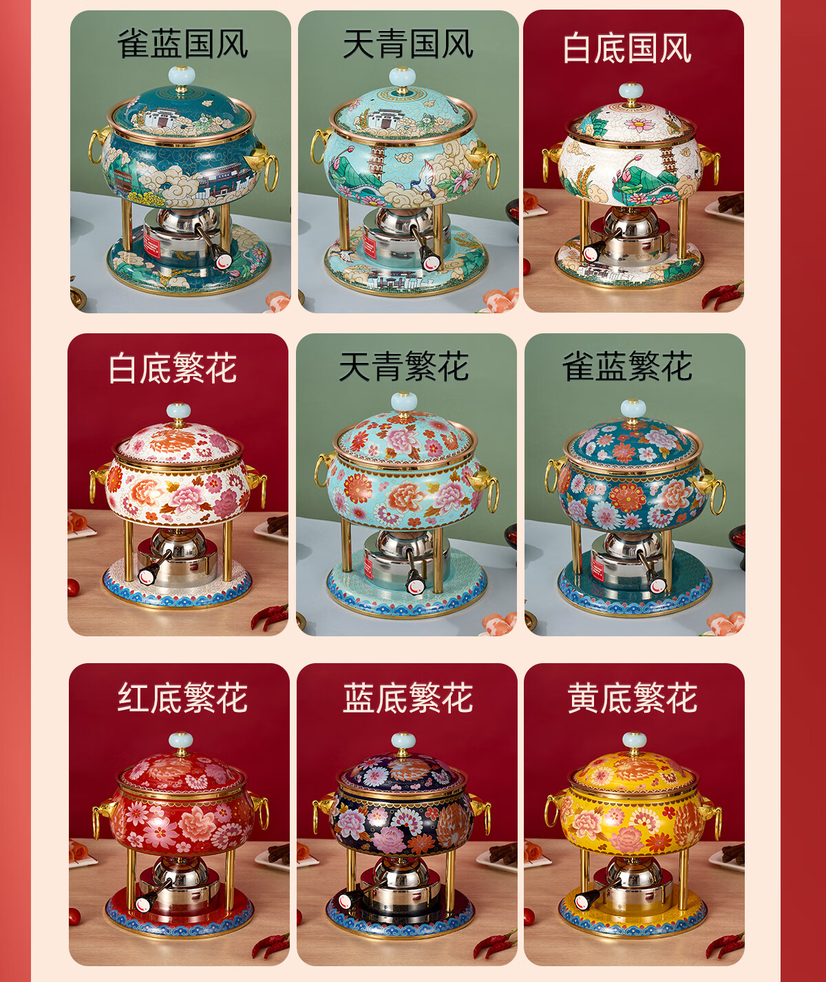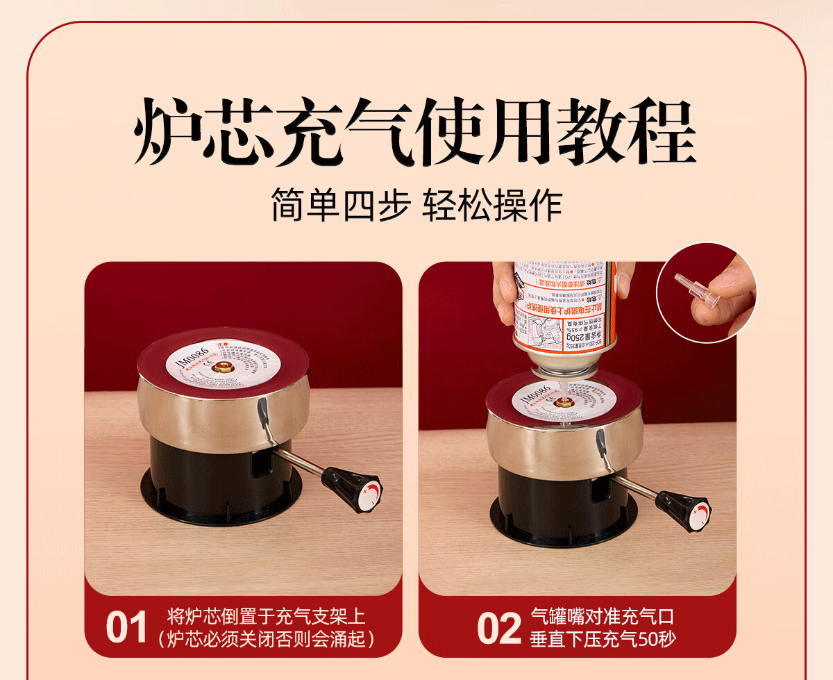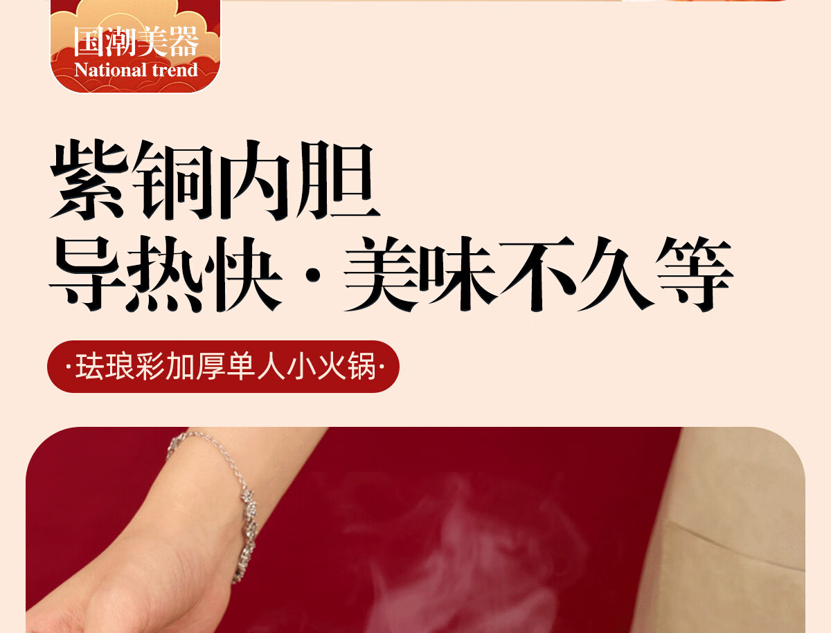 Jing'ao enamel single-person copper pot inflatable small hot pot, one person and one pot, commercial high-end copper hot pot, small gas stove for home use, color grid model, yellow bottom, free inflatable stove core 16cm