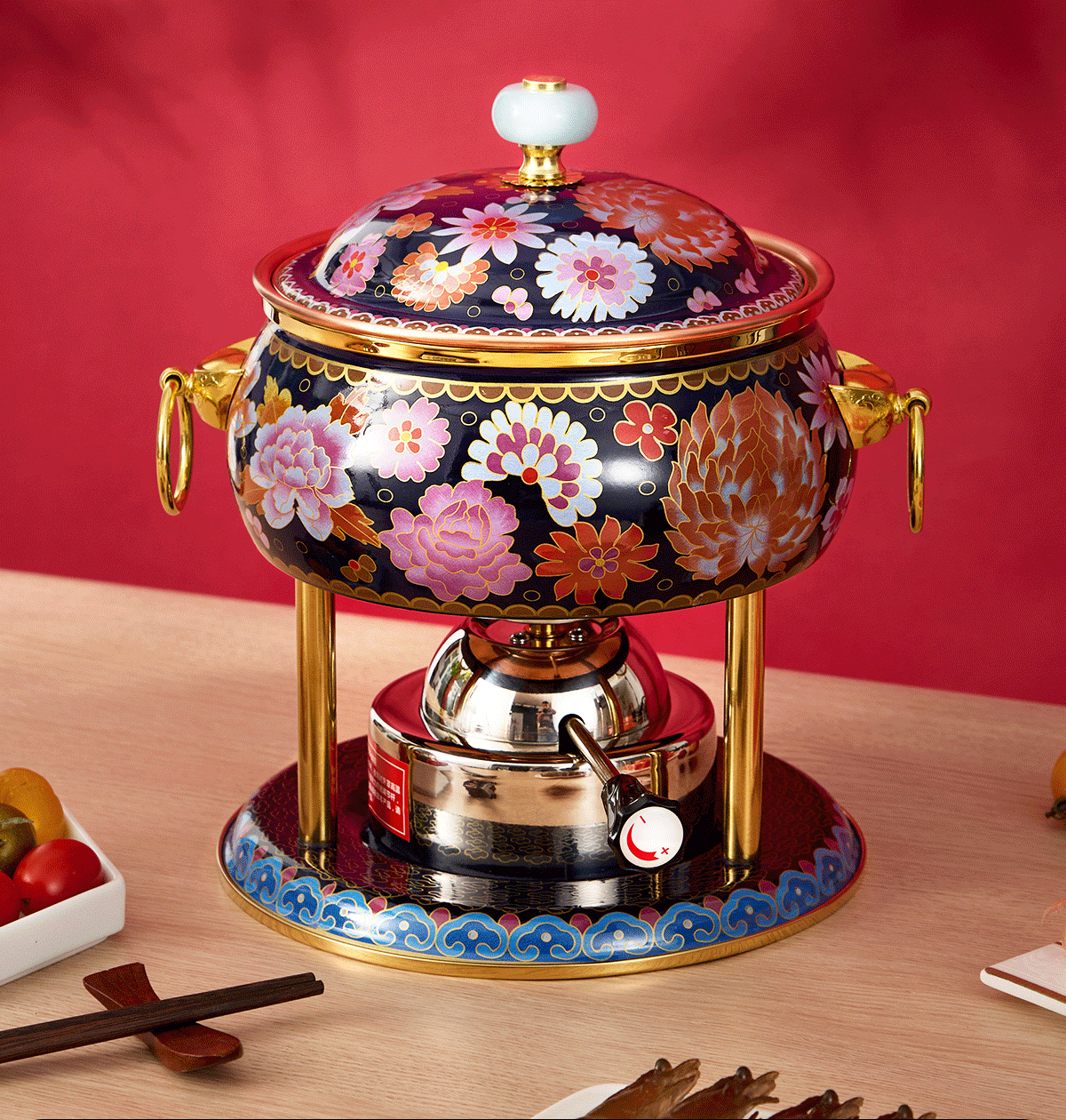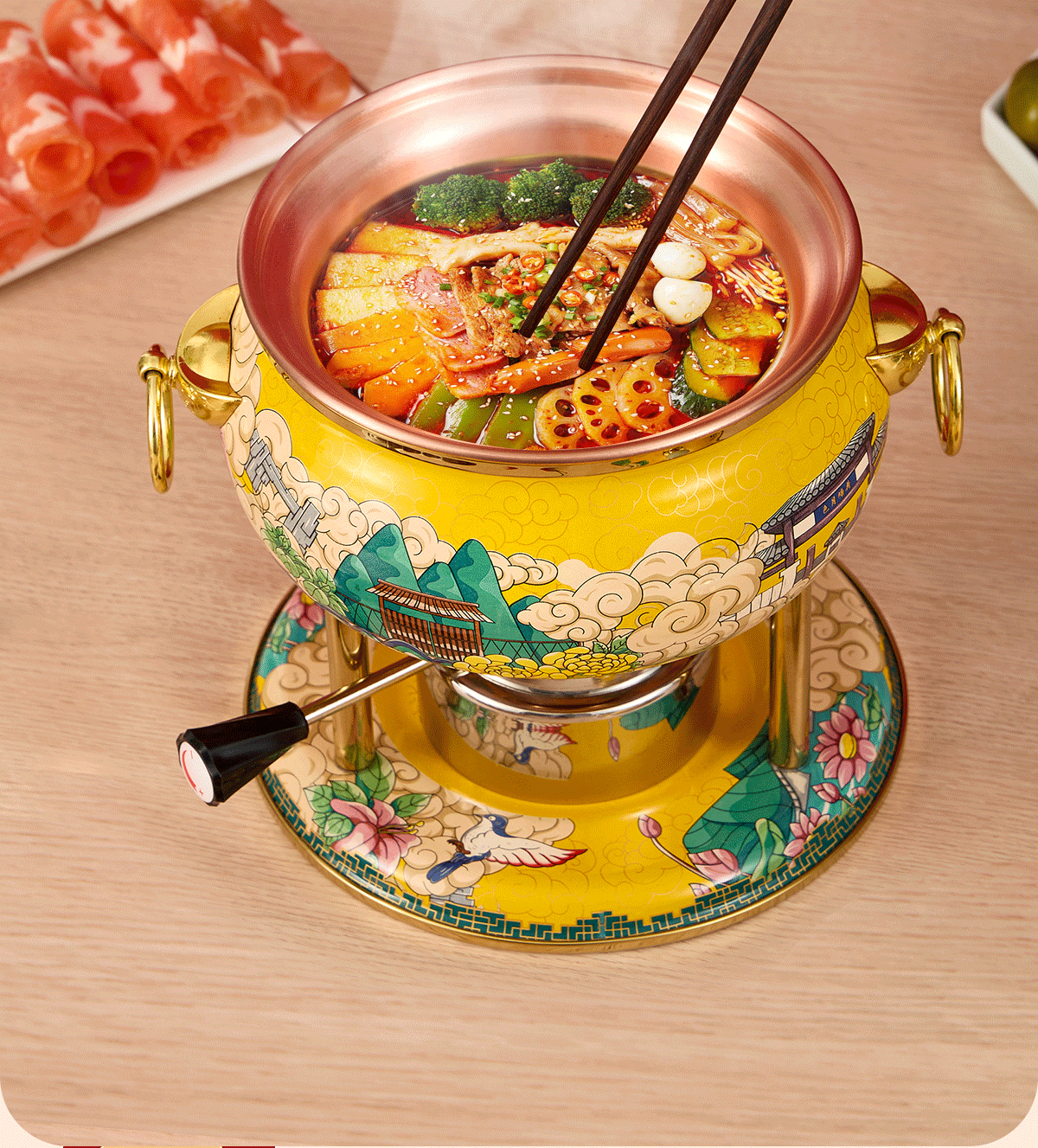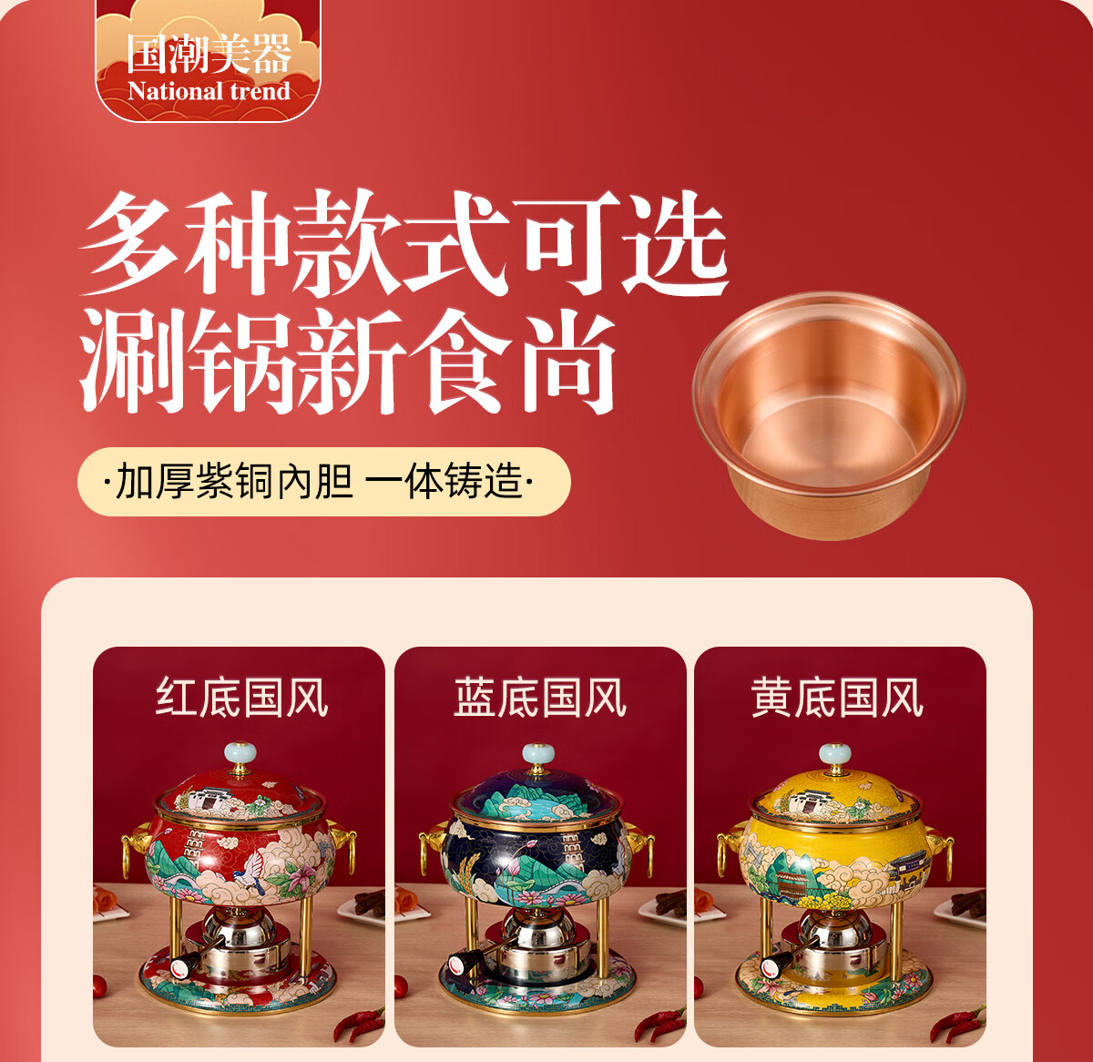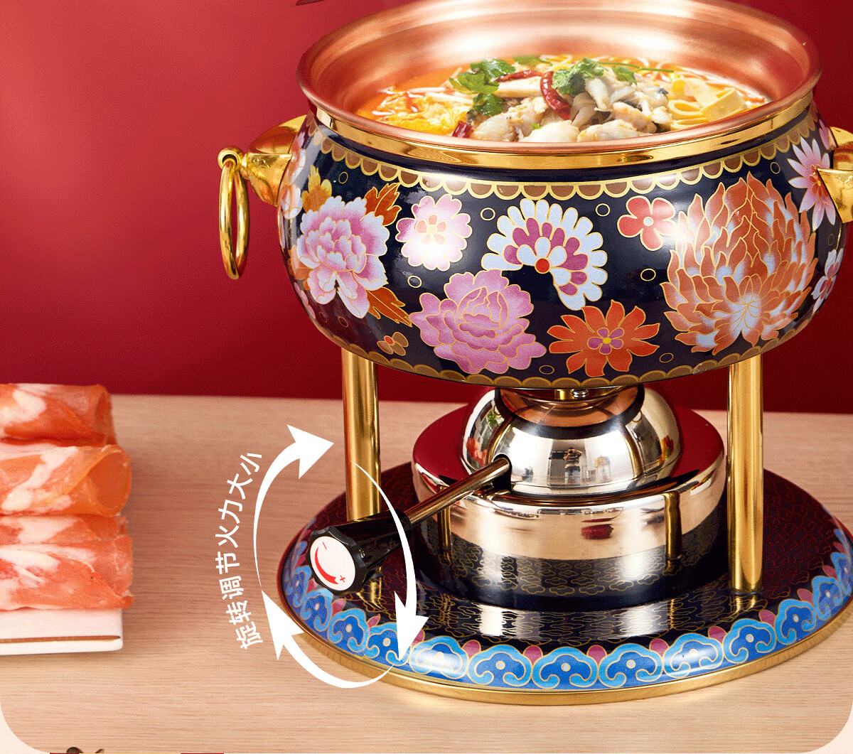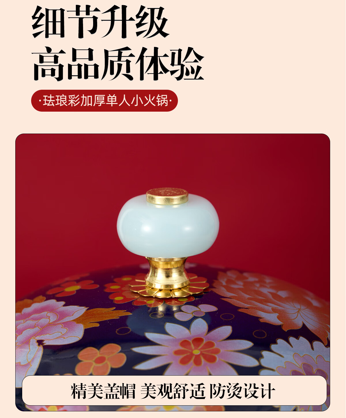 Jing'ao enamel single-person copper pot inflatable small hot pot, one person and one pot, commercial high-end copper hot pot, small gas stove for home use, color grid model, yellow bottom, free inflatable stove core 16cm