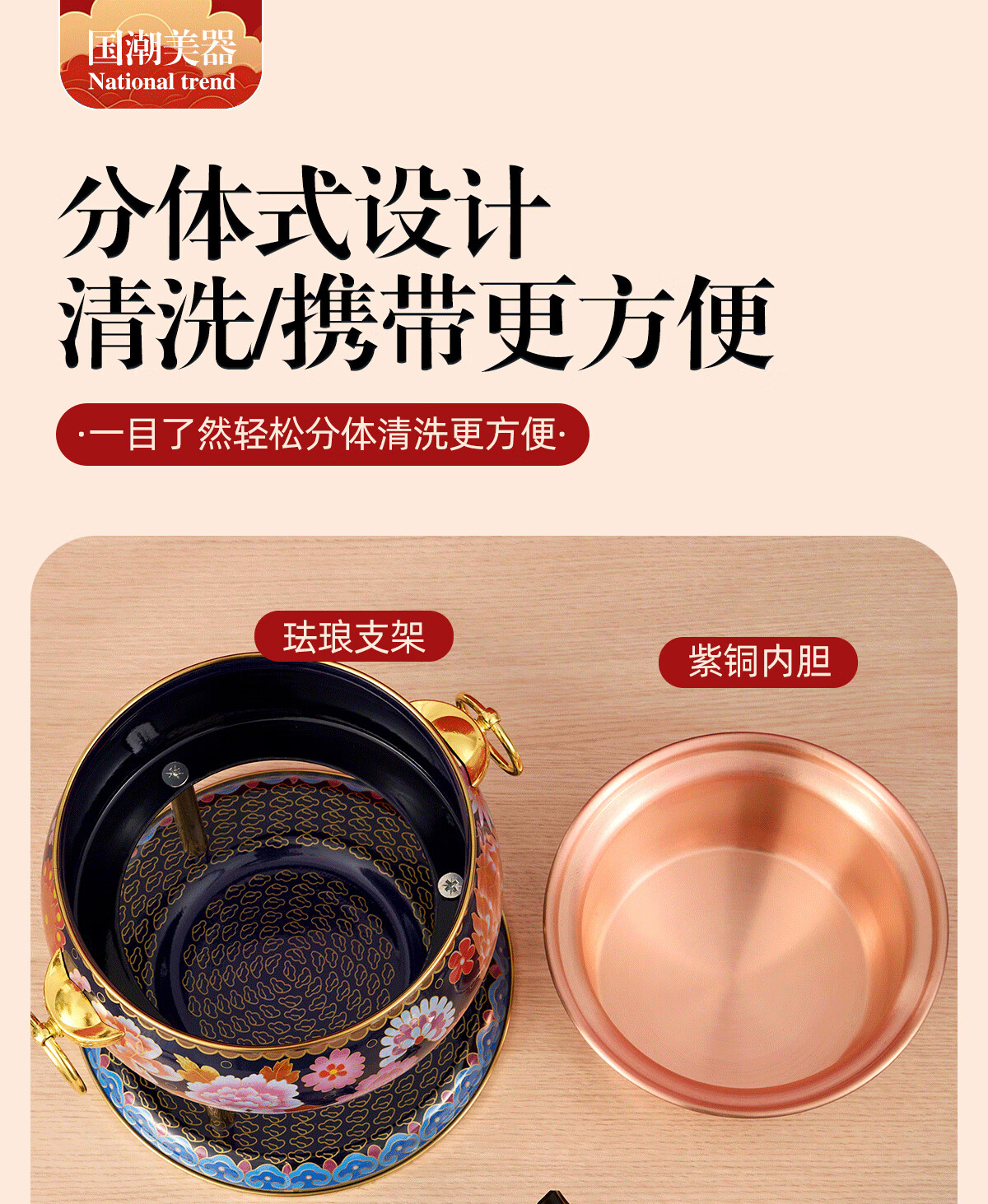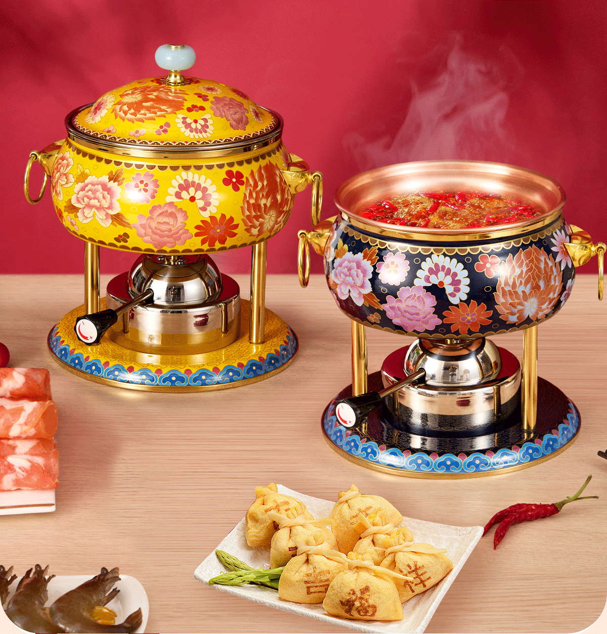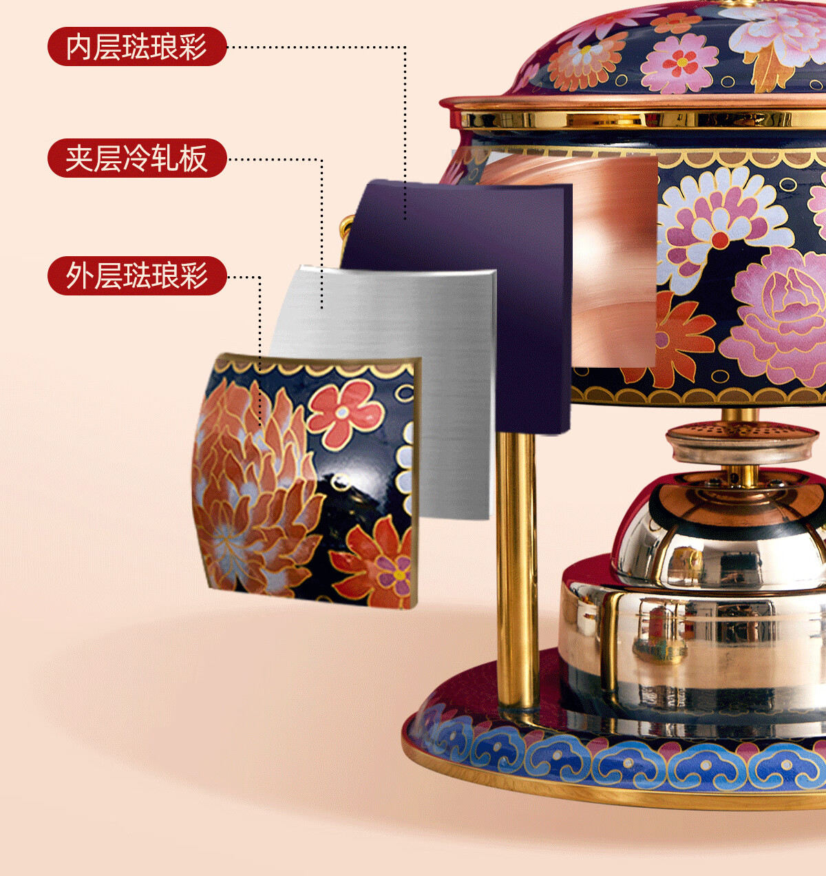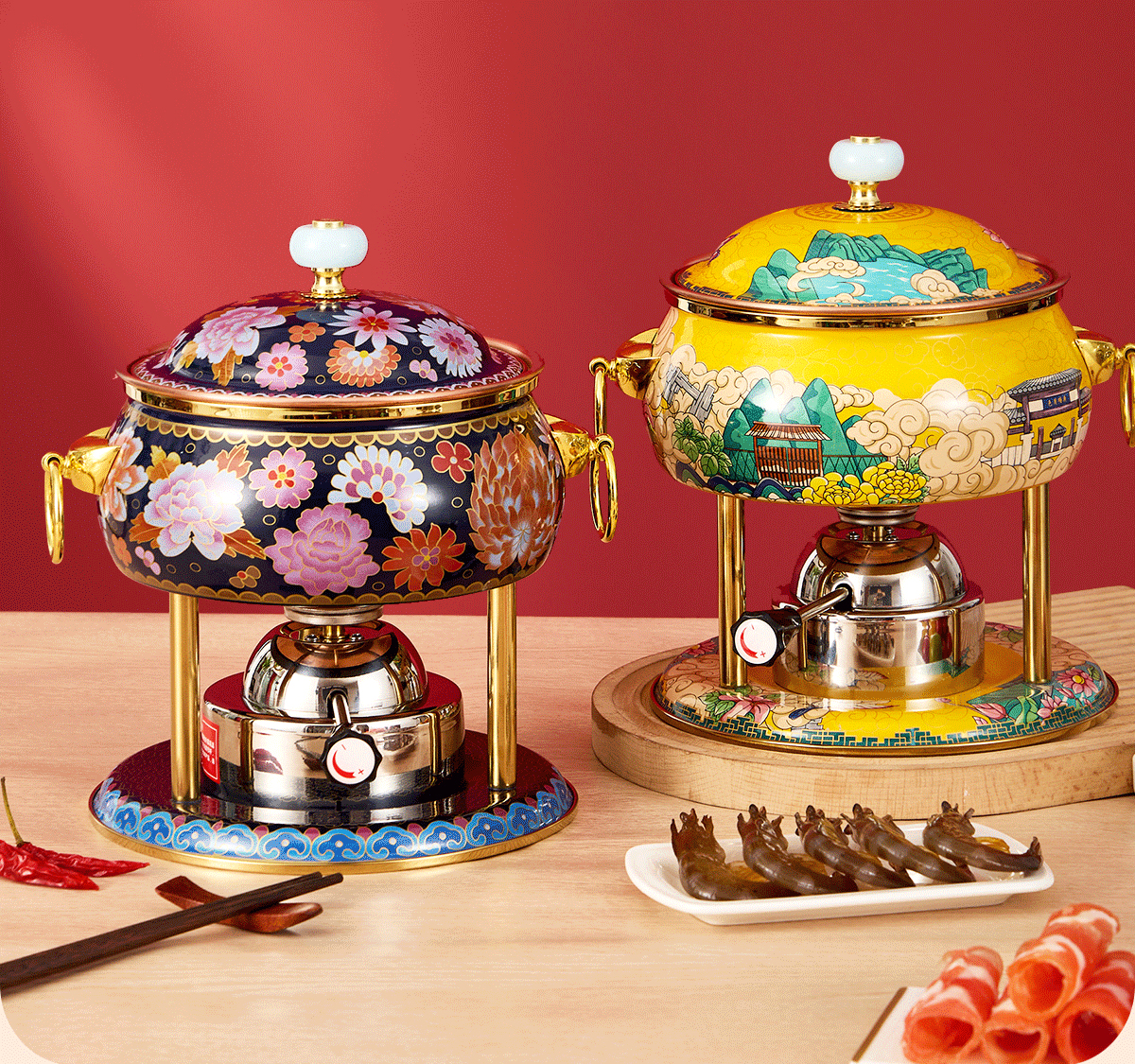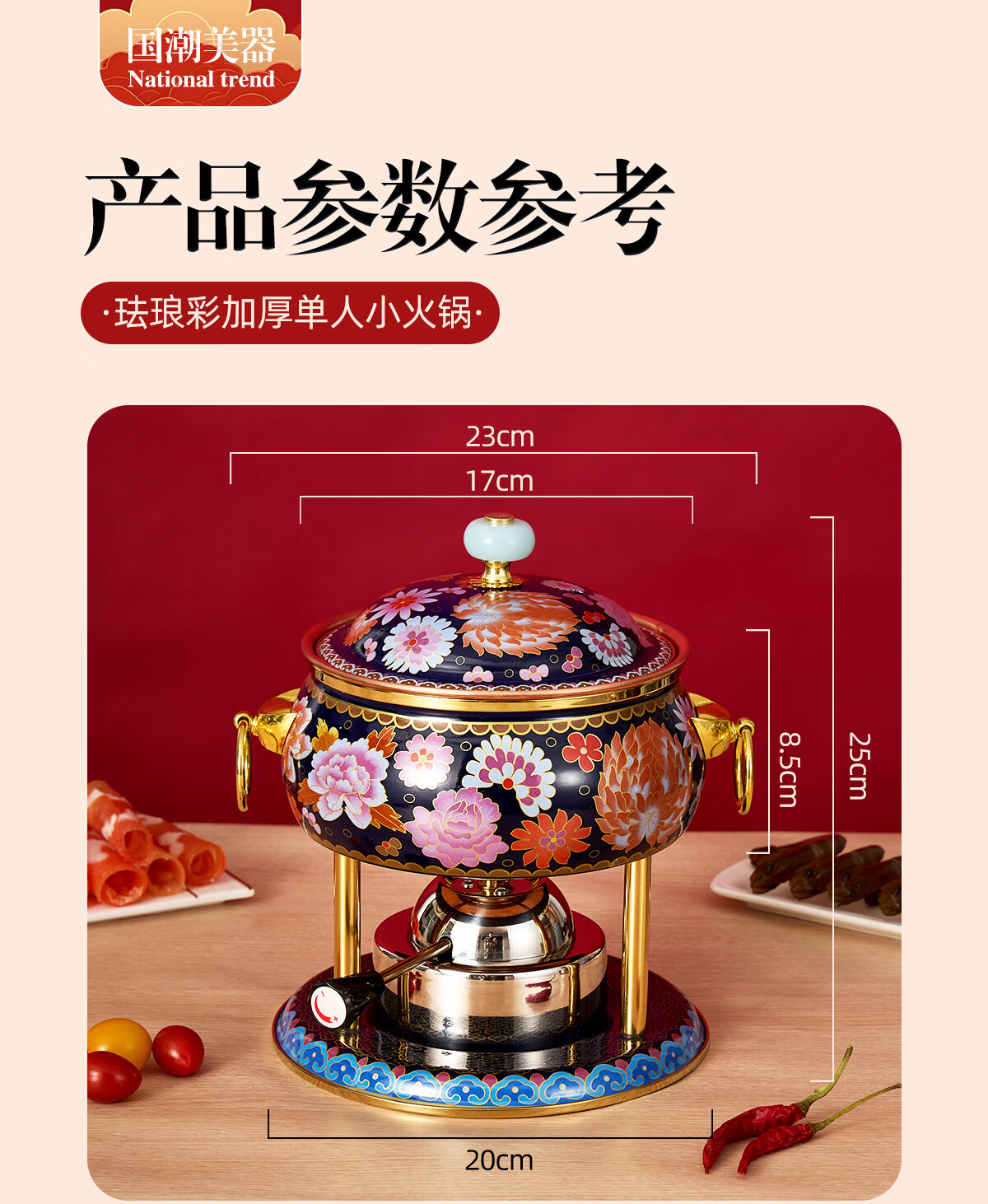 Jing'ao enamel single-person copper pot inflatable small hot pot, one person and one pot, commercial high-end copper hot pot, small gas stove for home use, color grid model, yellow bottom, free inflatable stove core 16cm