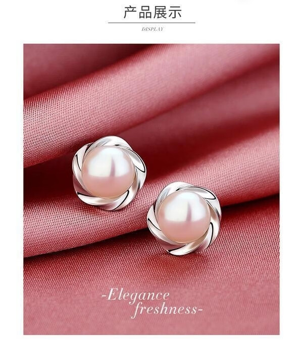 RSRDDY Old Phoenix Pearl Earrings Sterling Silver 999 Freshwater Pearl Earrings New Earrings Mother's Day Gift for Mom Sterling Silver Pearl Earrings Lao Fengxiang Same Style 1