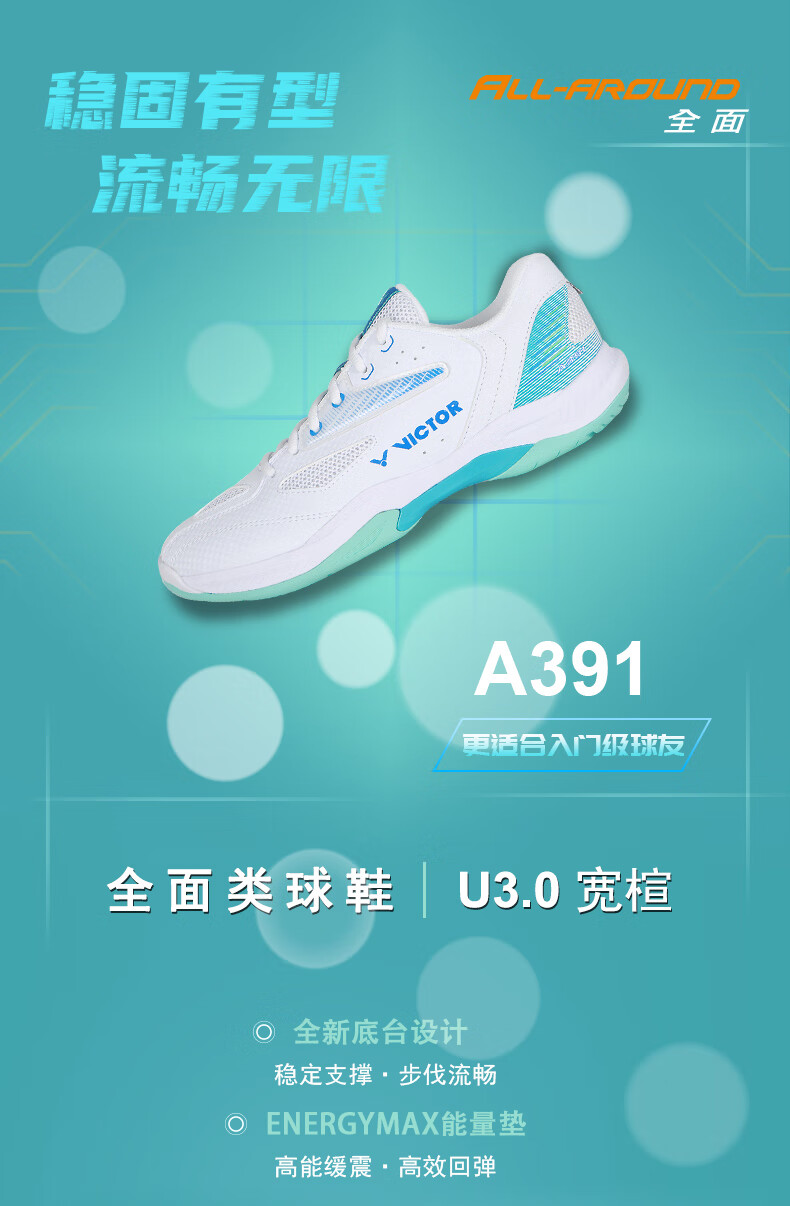VICTOR's new professional badminton shoes for men and women, training and competition sports shoes, wide-last, non-slip, wear-resistant, cushioning, A391 C, black 39