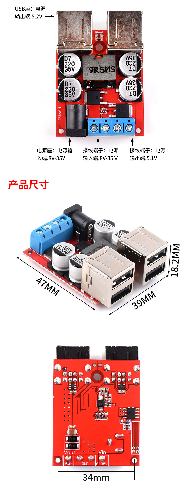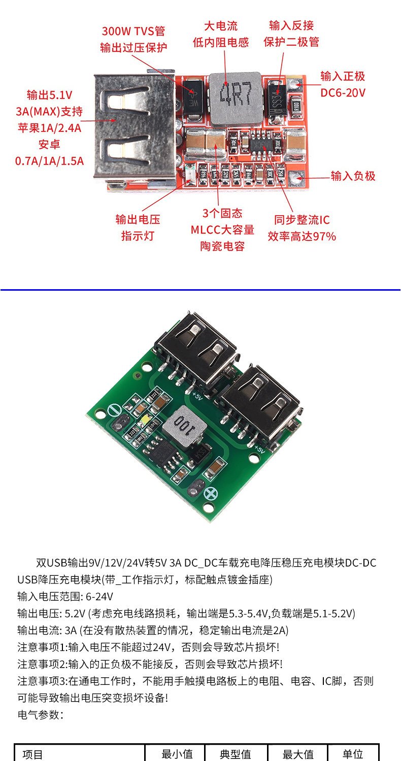 DZQJ DC-DC step-up/step-down module 1.5/3.7/9/12/20V to 5V fast charging 5A car mobile phone USB charging step-down module 6-20V to 5V3A Please consult customer service for quotation for large quantities