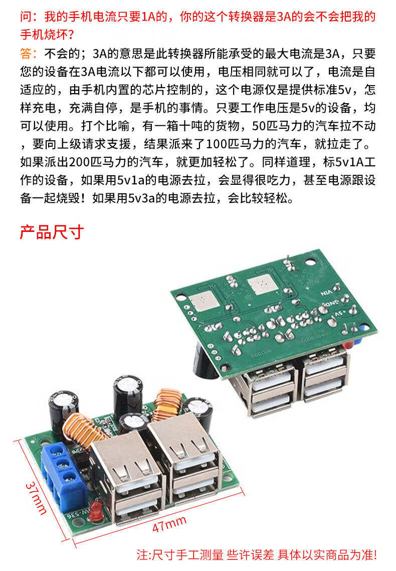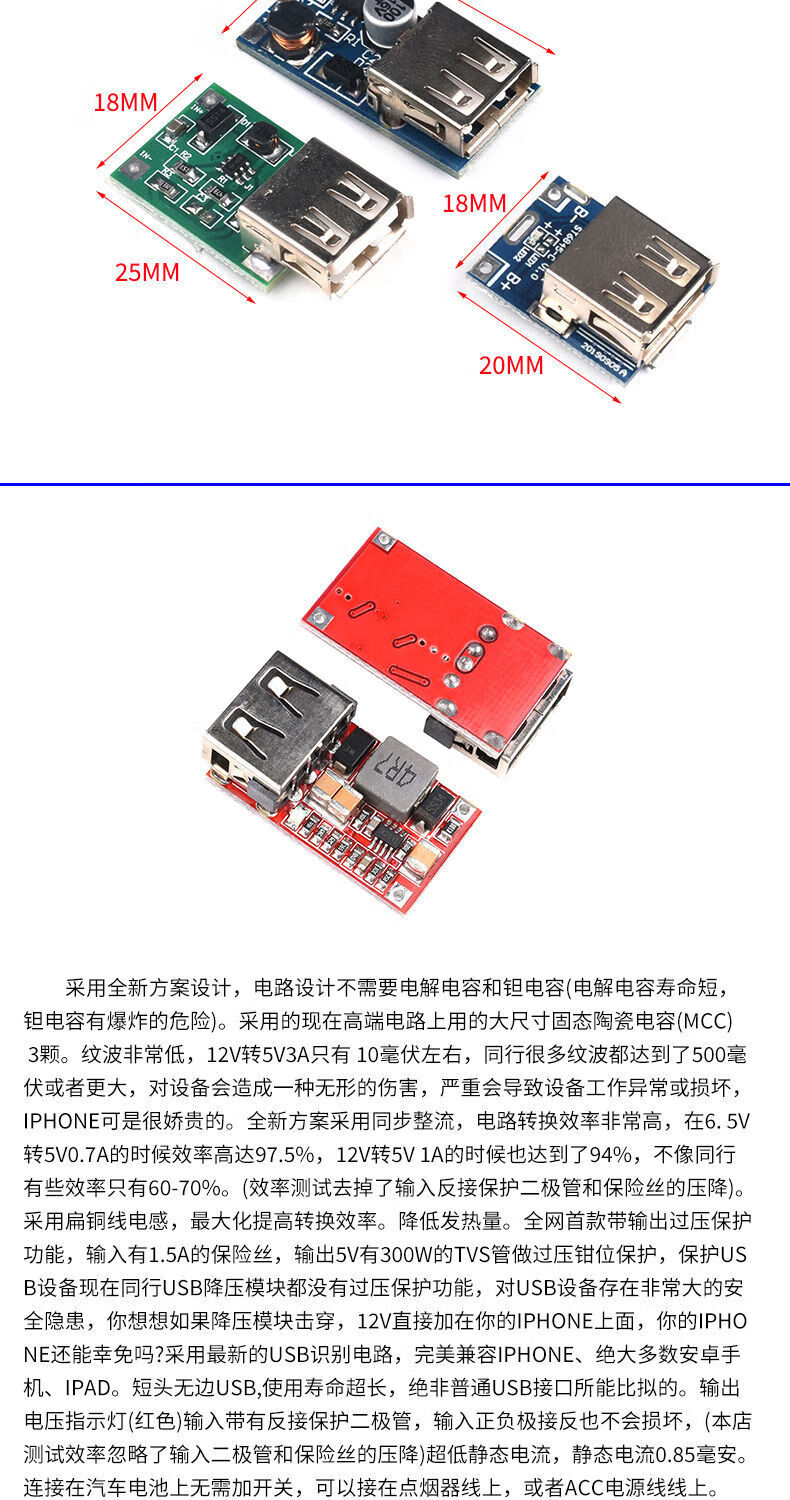 DC-DC step-up/step-down module 1.5/3.7/9/12/20V to 5V fast charging 5A car mobile phone USB charging QC2.0QC3.0 dual-channel fast charging DC For large quantities, please consult customer service for quotation