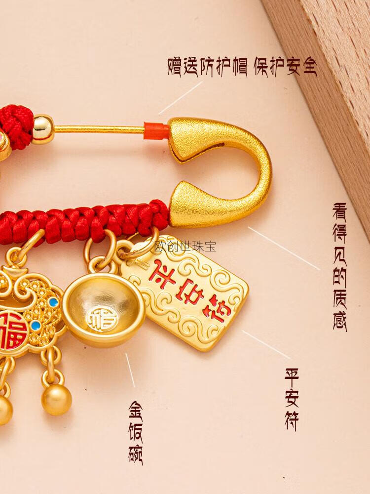 Jiaojing Pin for Pregnant Women, Exquisite Sand Gold Baby Gold Rice Bowl, Suppressing Dragon and Rabbit Baby Amulet Pendant for Safe and Safe Outings, Zodiac Dragon Gold Rice Bowl Pin // Pin, Add a Gift