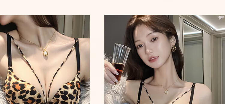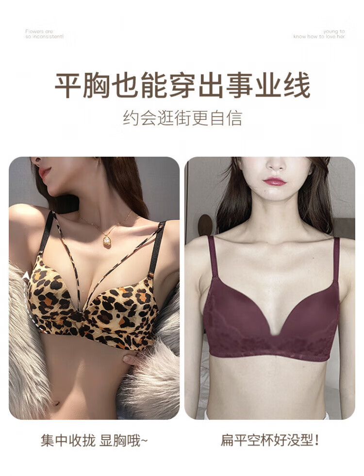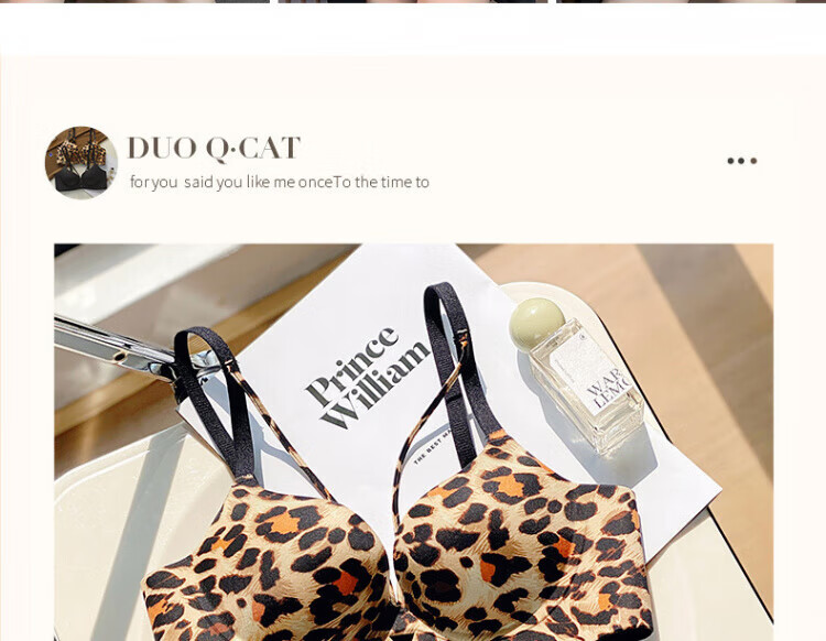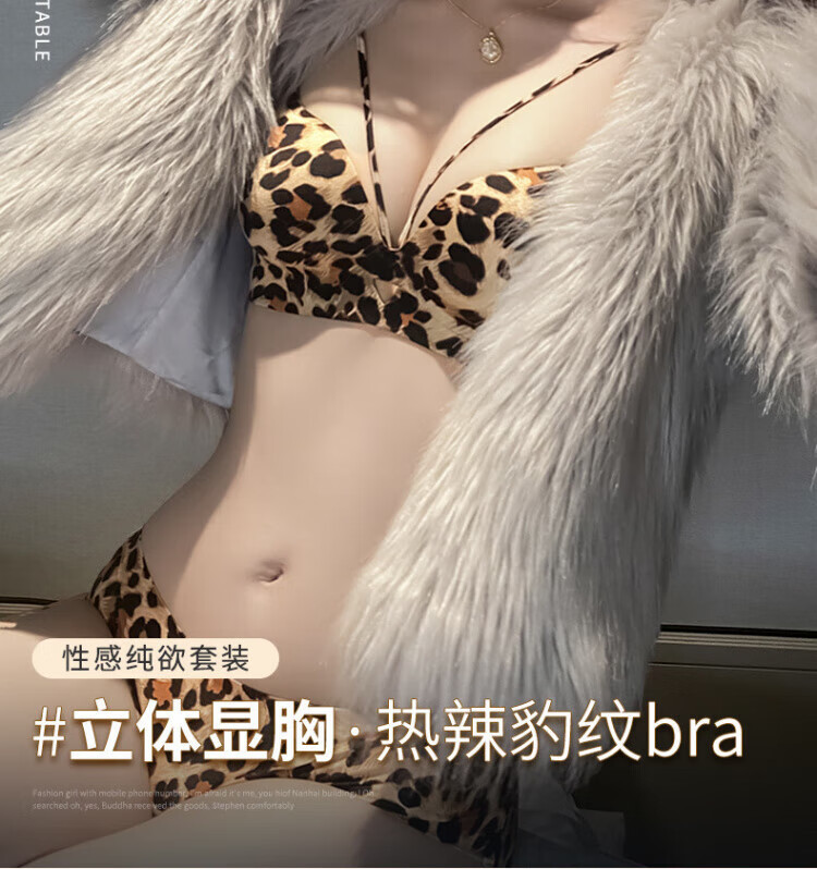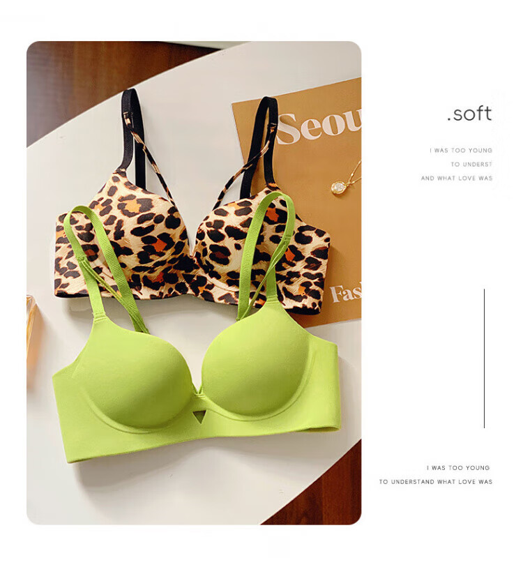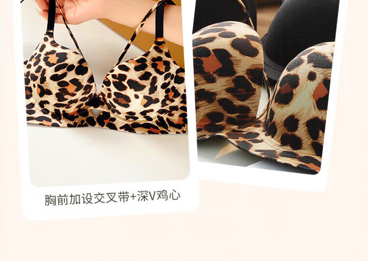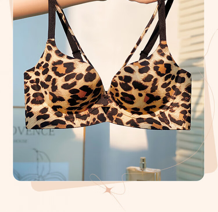Modal Sexy Pure Desire Leopard Print Underwear Women's Small Breast Gathering and Enlarging Seamless Top Support Anti-Sagging Wireless Bra Set Leopard Print (Set) 70A 32 AB Universal