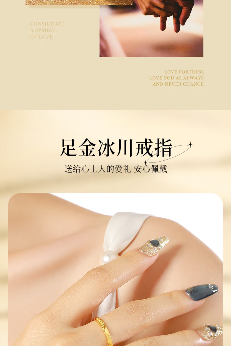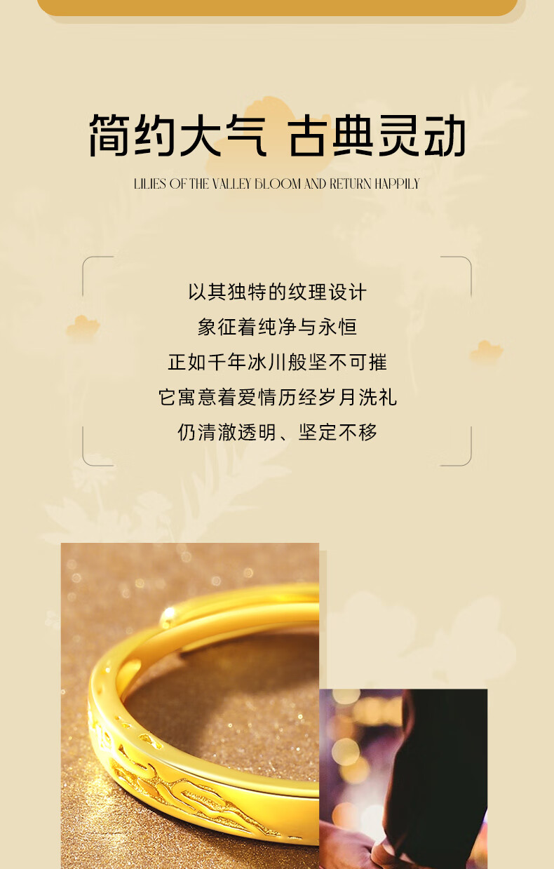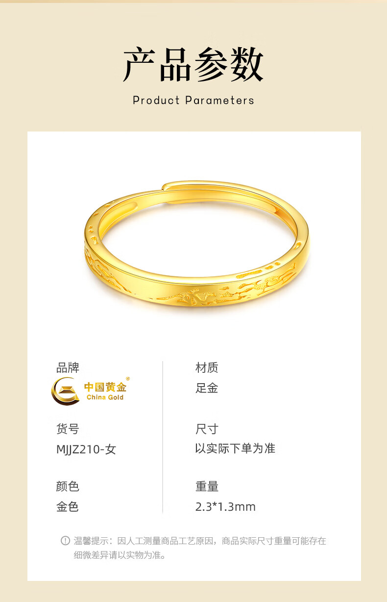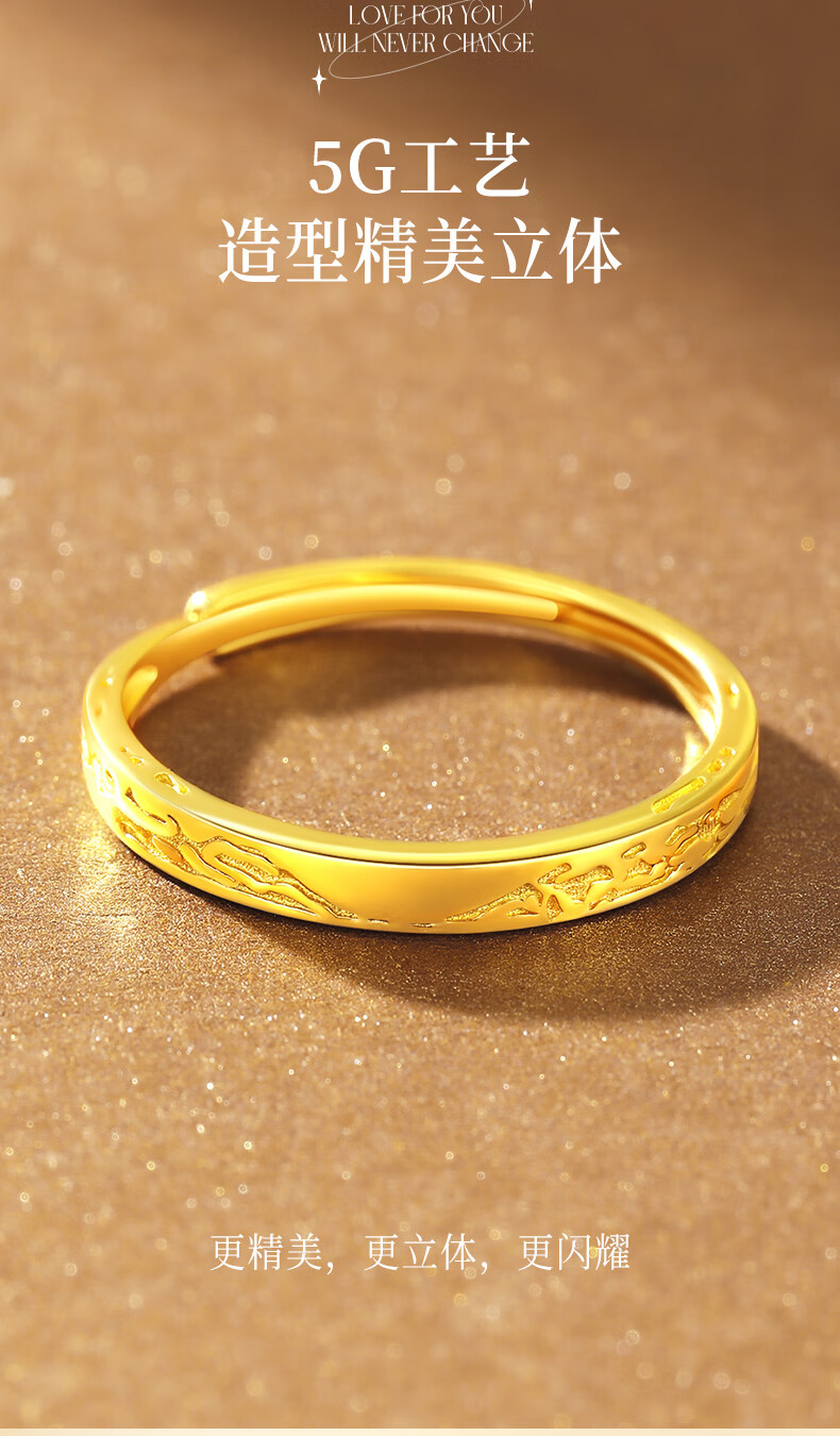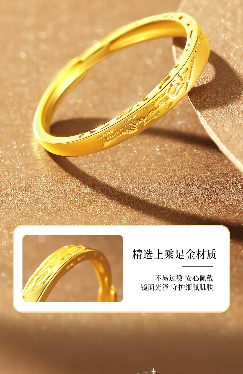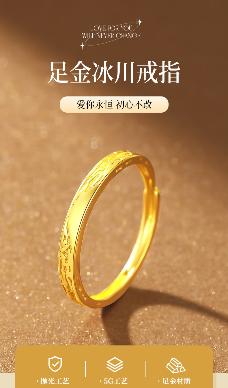 CHINA GOLD Glacier Gold Ring Women's 999 Pure Gold Open Ring Birthday Gift for Girlfriend and Wife Gold Weight Approximately 1.5g Pure Gold Ring
