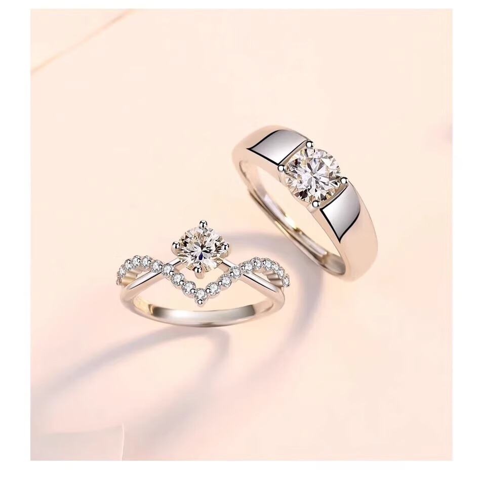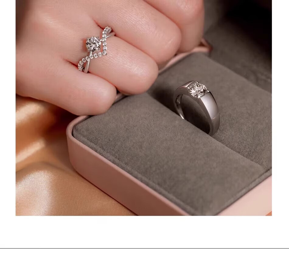 First encounter, a pair of simulated fake diamond rings, live ring for women, proposal, wedding photo props, jewelry for girlfriend, crowning love ring, and jewelry box