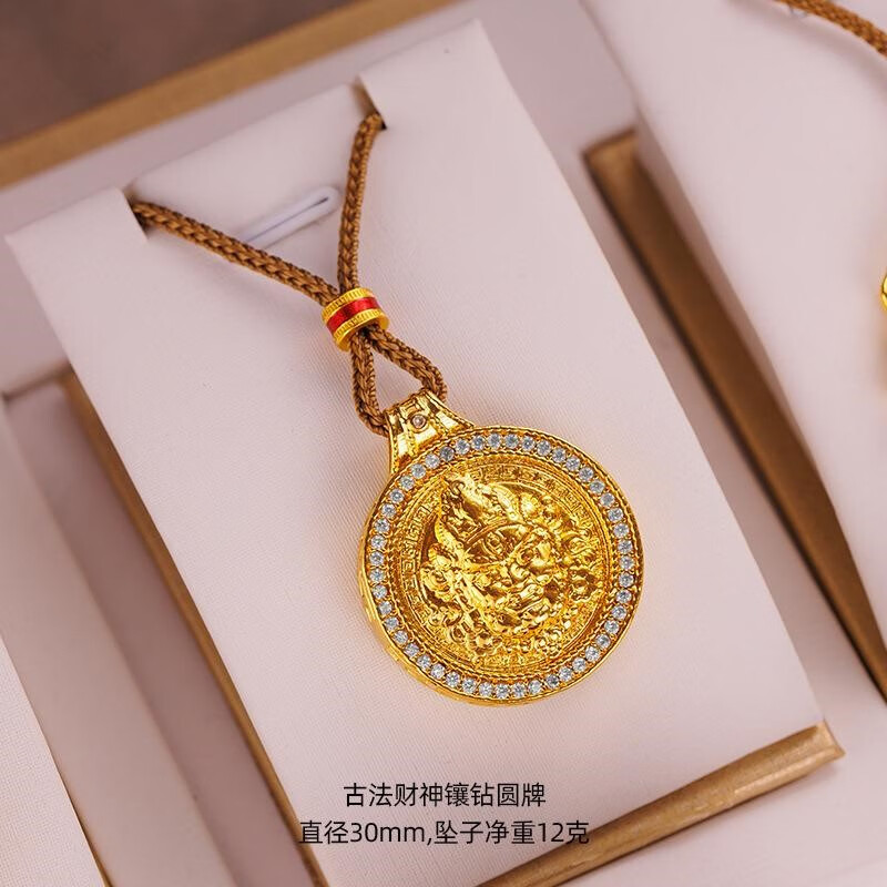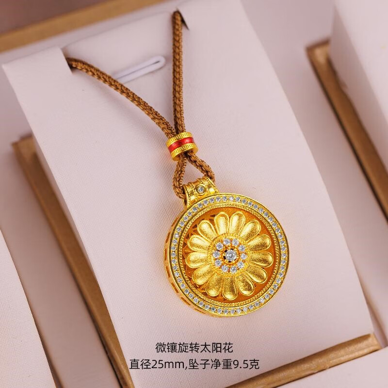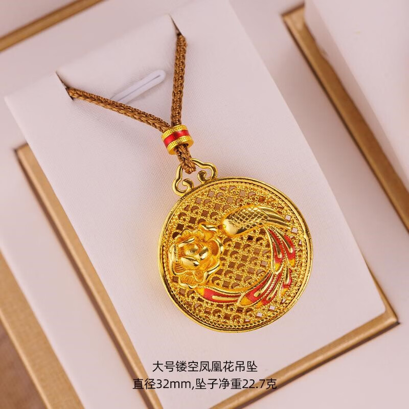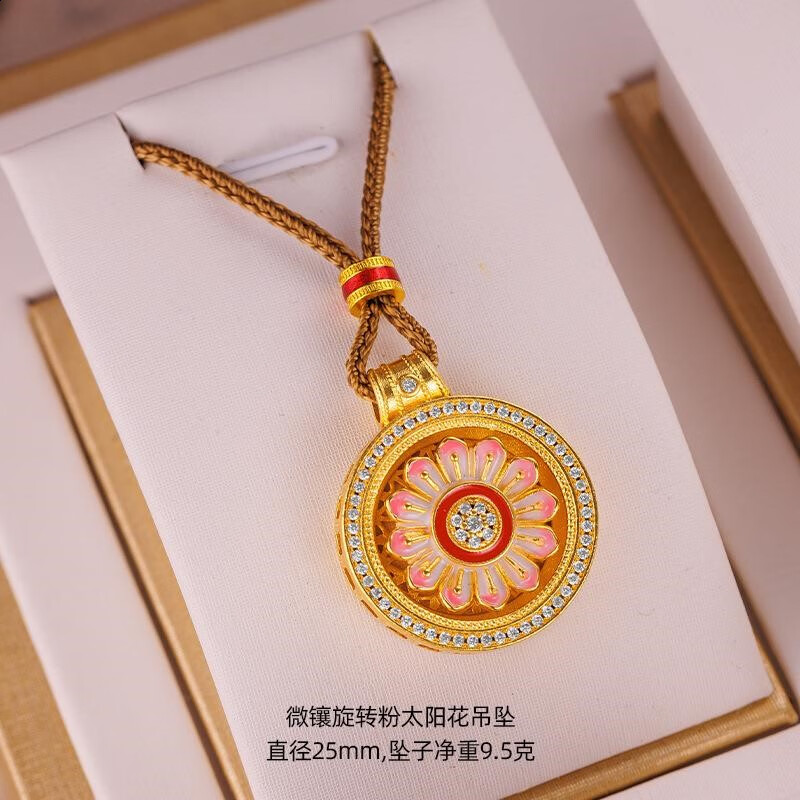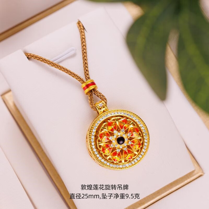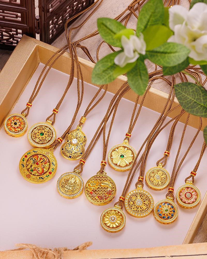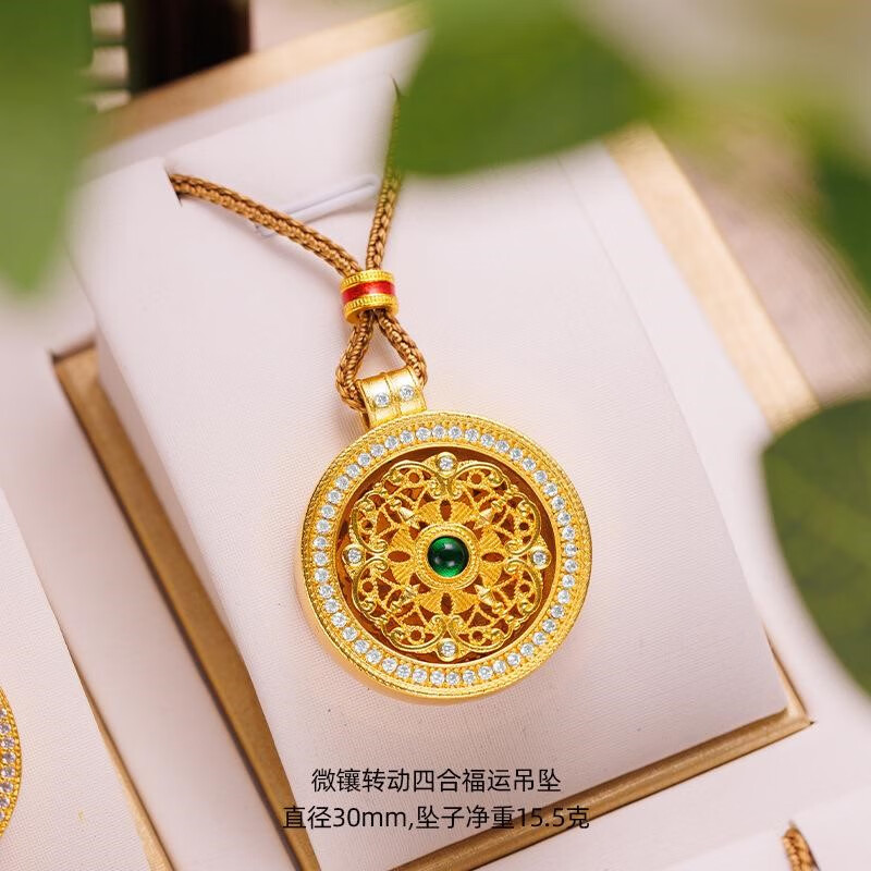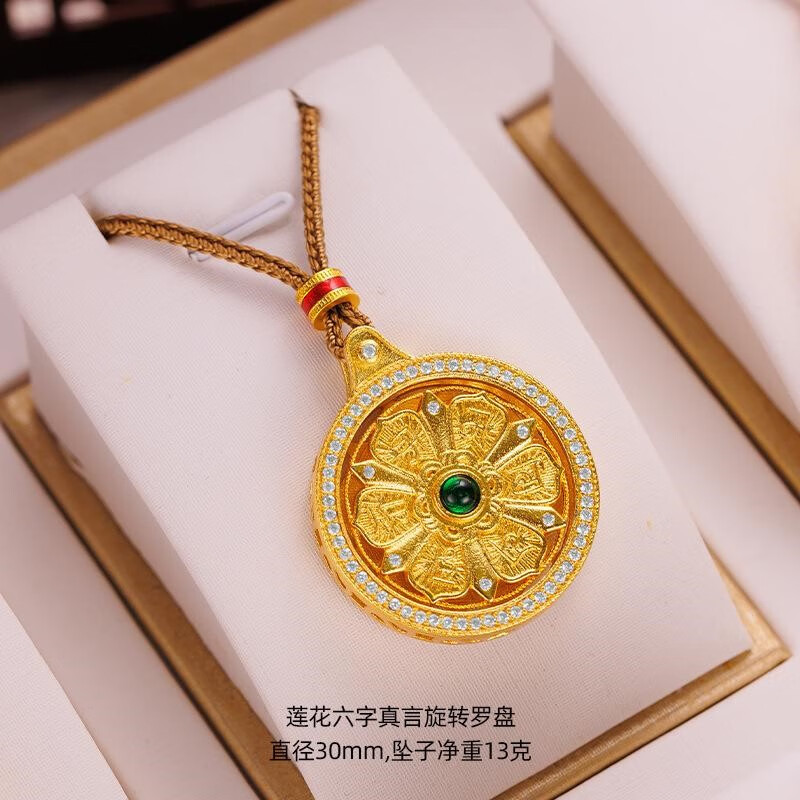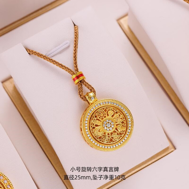 Qian Sheng Yuan Lao Phoenix 999 Bengal red gold jewelry gold-plated rope necklace sand gold Chinese style rotatable six-character mantra eight small rotating six-character mantra plate (without rope)