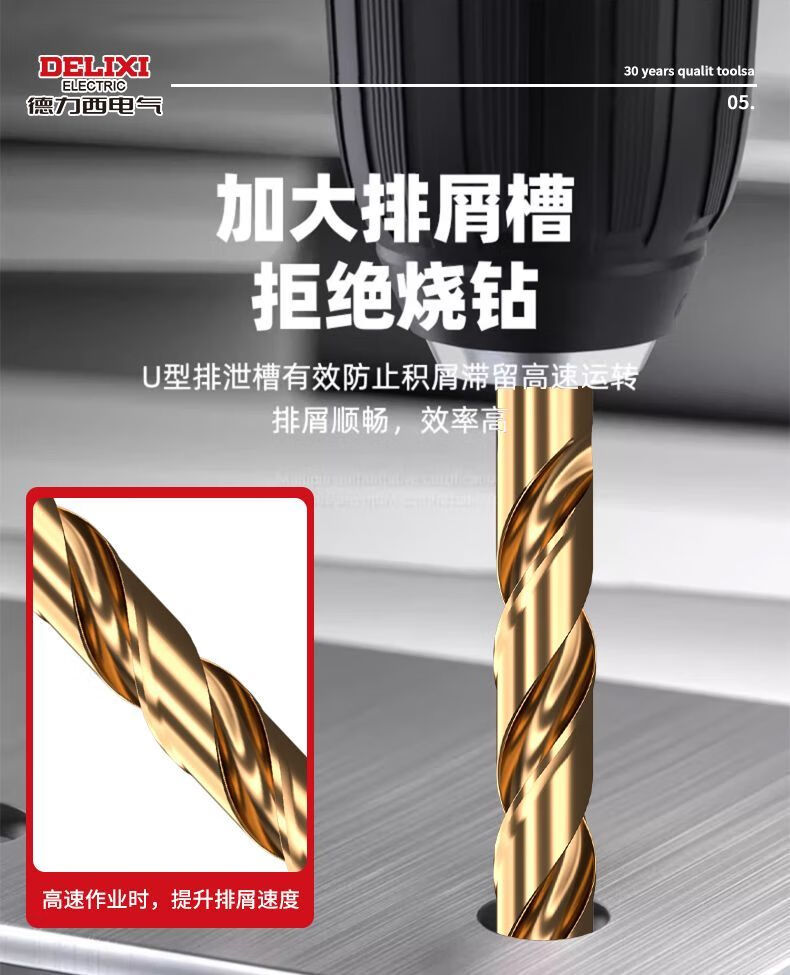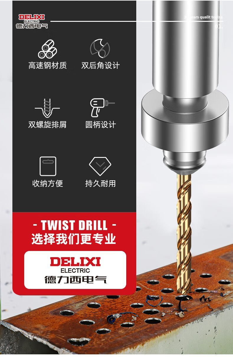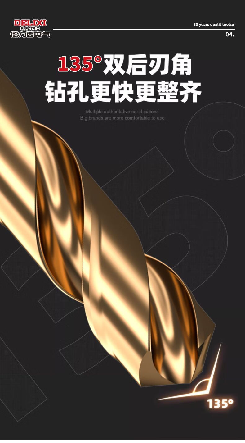 Delixi Electric twist drill bit cobalt-containing high-hardness stainless steel special drilling drill steel copper aluminum metal woodworking round handle high-speed steel industrial grade 2+3+4+5+6mm 5-piece set
