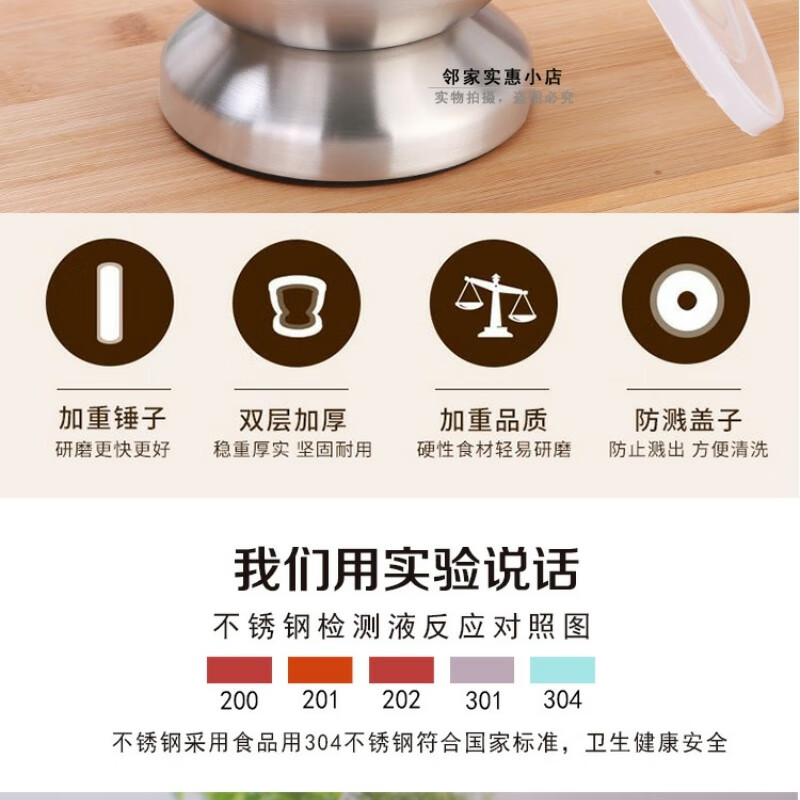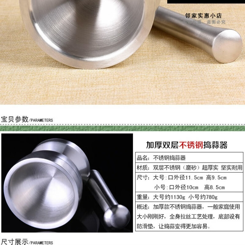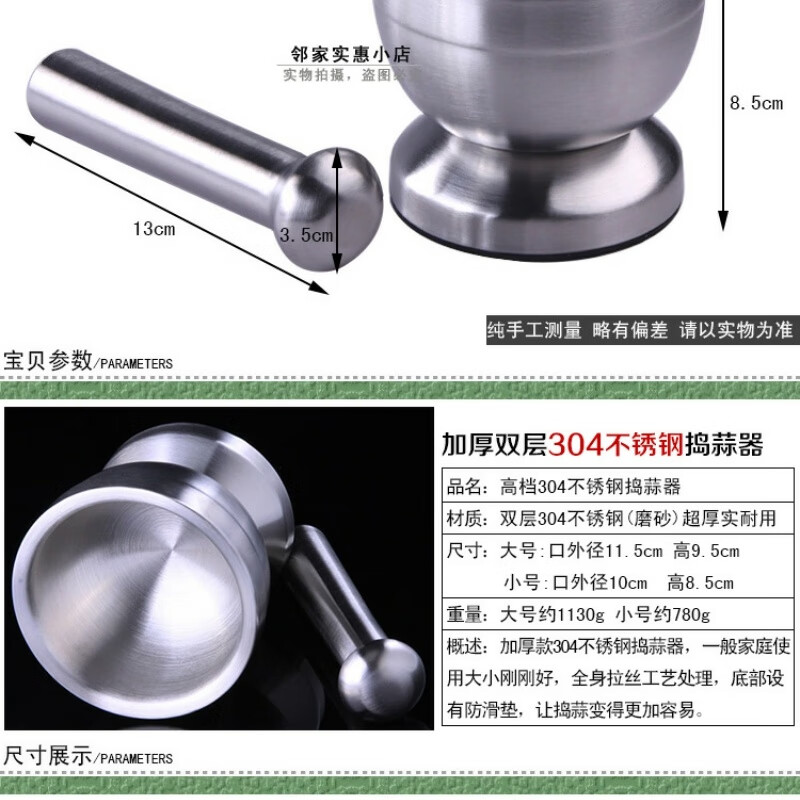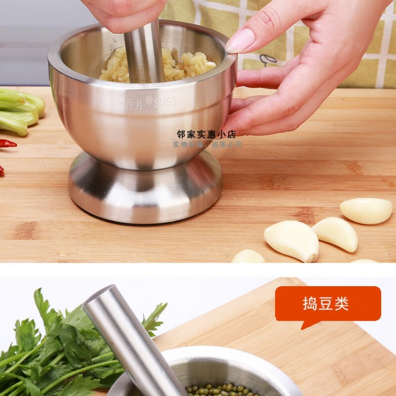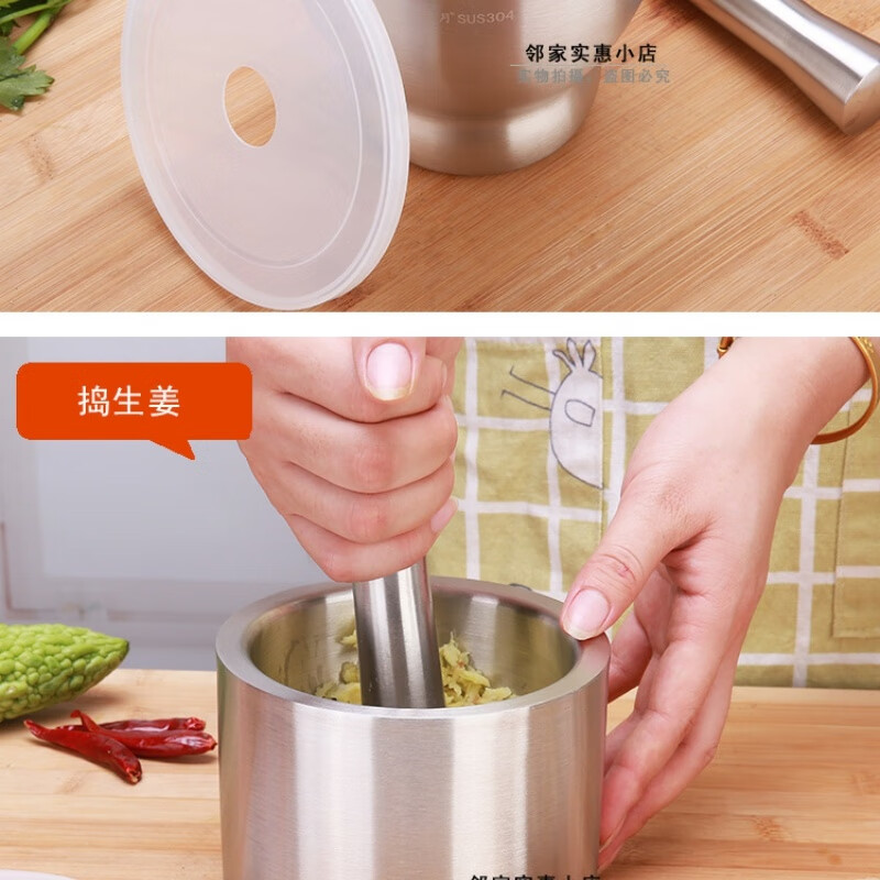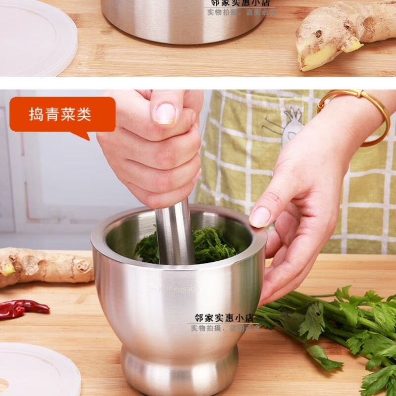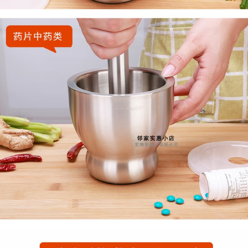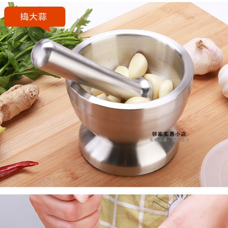 FANCYCHIC thickened double-layer 304 stainless steel garlic pounder jar garlic mortar masher grinder mortar restaurant grade 304 cone shaped deepened version extra large double