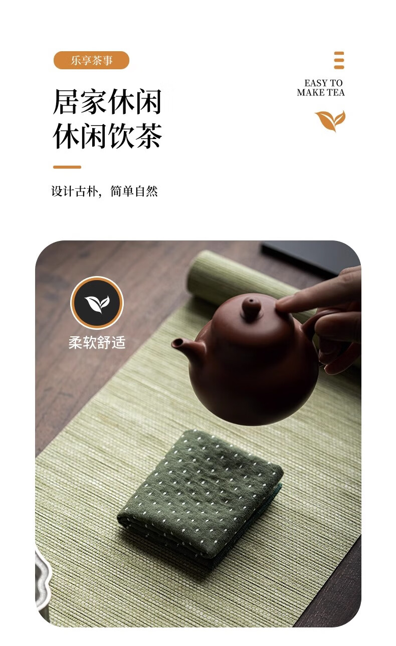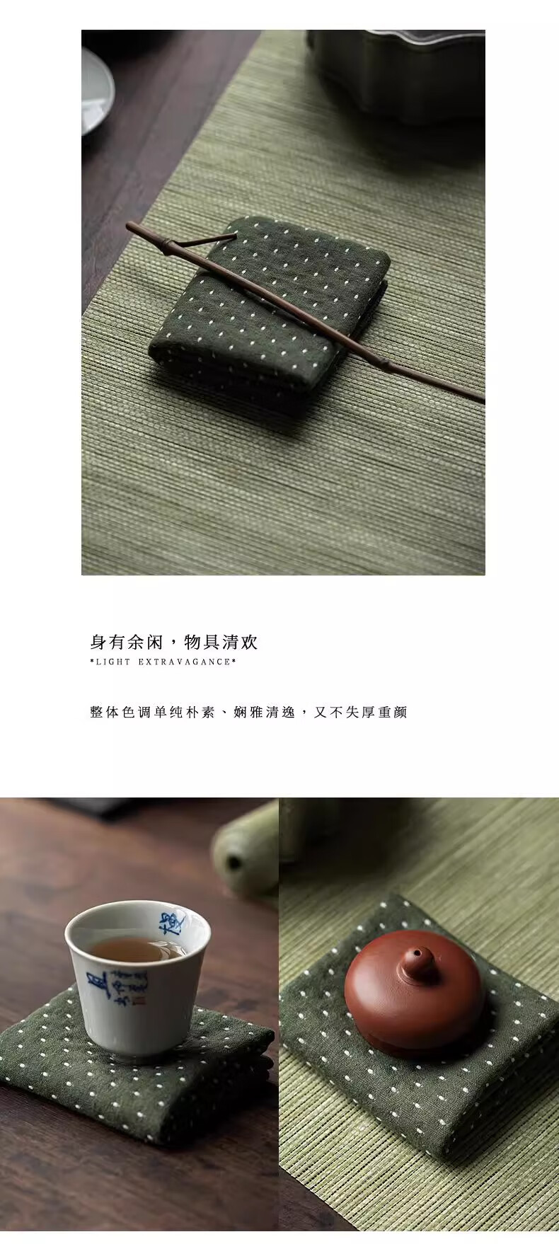 Yagu new style cotton and linen absorbent tea towel, Chinese tea towel, tea ceremony accessories, simple forest style tablecloth, rag, tea set with green - cotton and linen handmade tea towel
