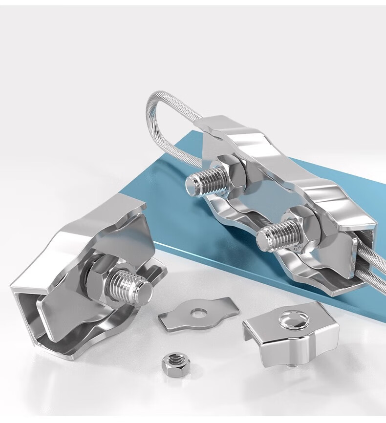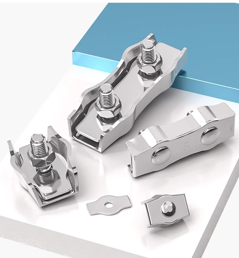 Tianzhuo Hardware 304 stainless steel wire rope single clamp double clamp buckle lock single card double card fixed joint M2M3M4M5M10mm double clamp M4 2 pieces suitable for 3mm steel wire rope