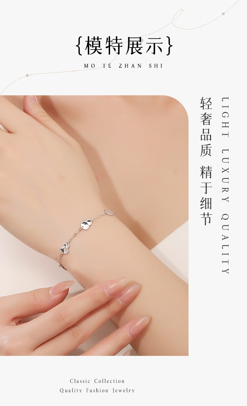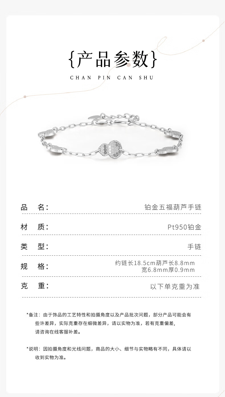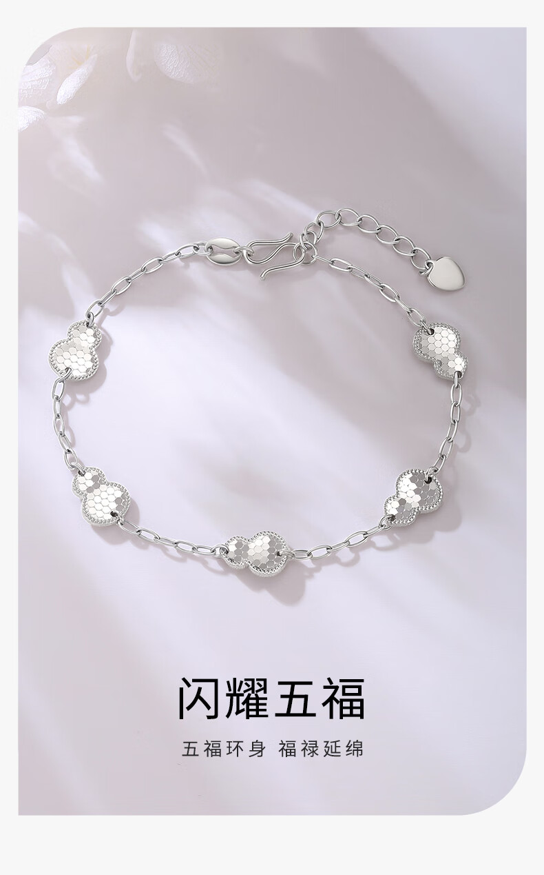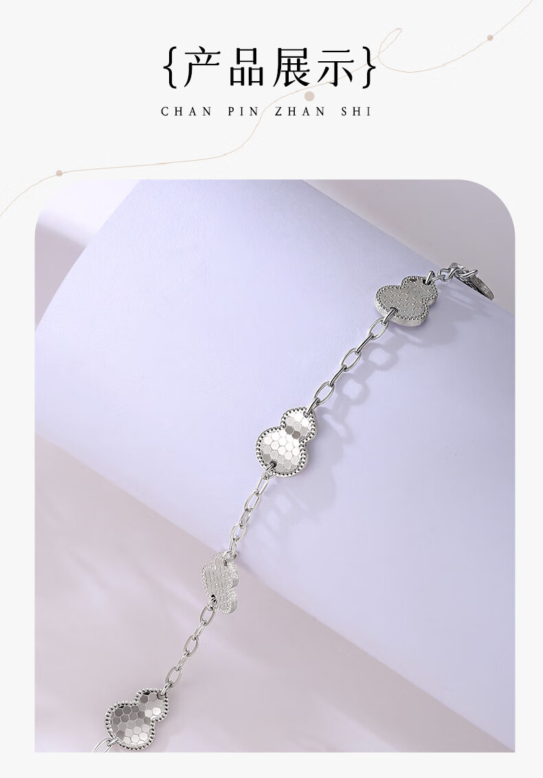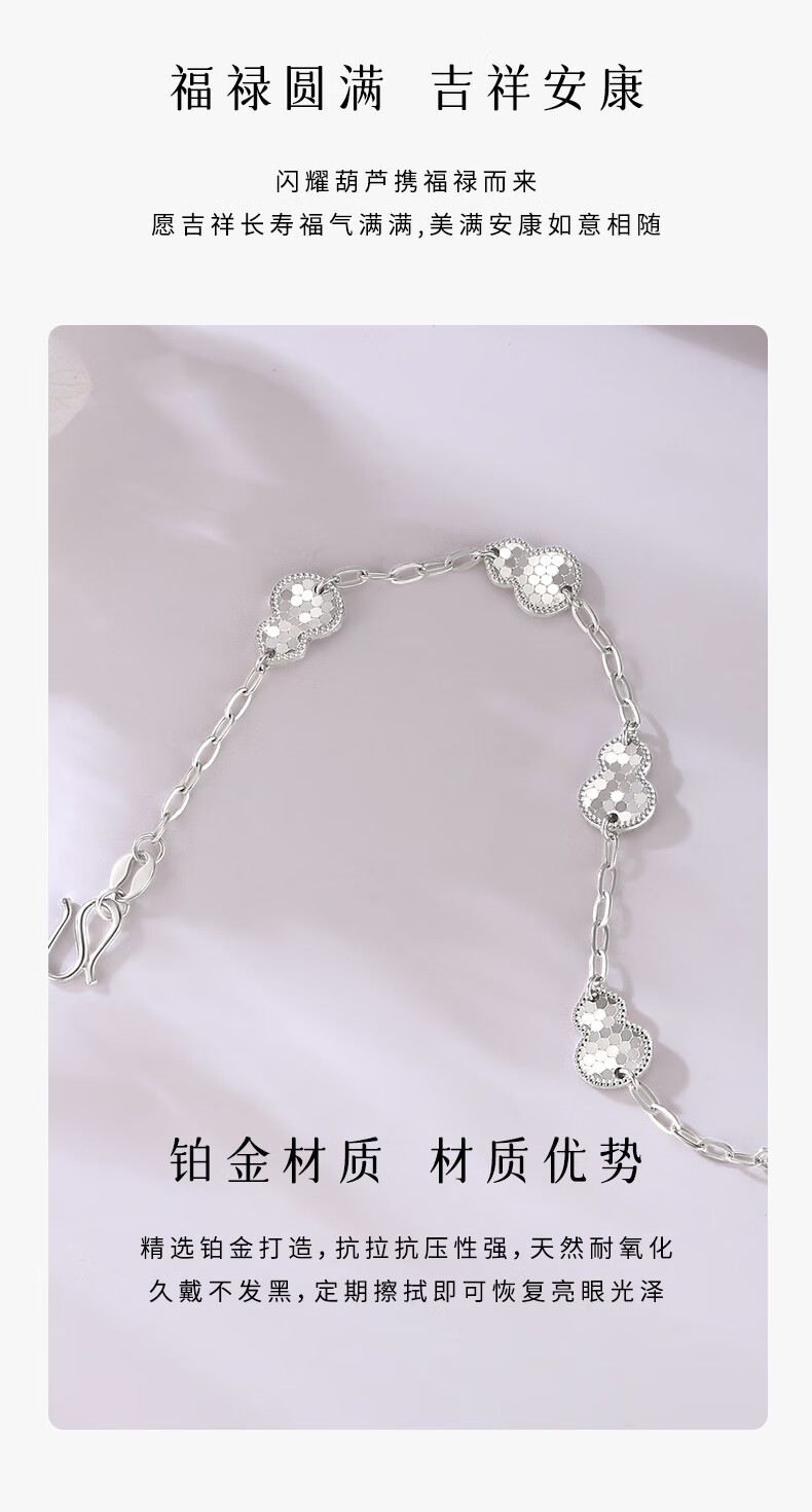 Cuihua Pt950 Platinum Crushed Ice Wufu Gourd Bracelet Fashionable Women's Bracelet for Girlfriend and Wife's Birthday Gift Crushed Ice Clover Bracelet About 4.2g
