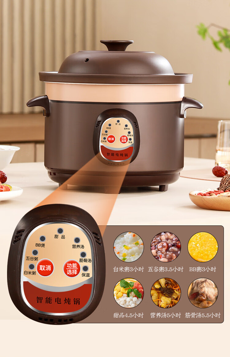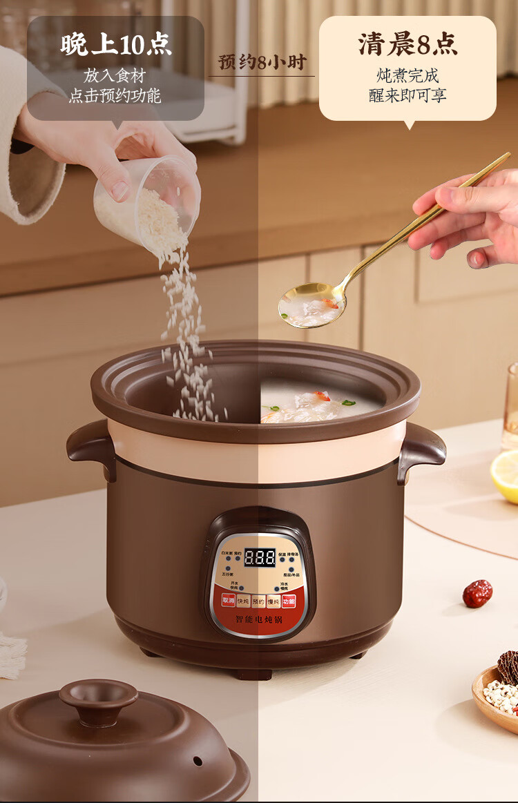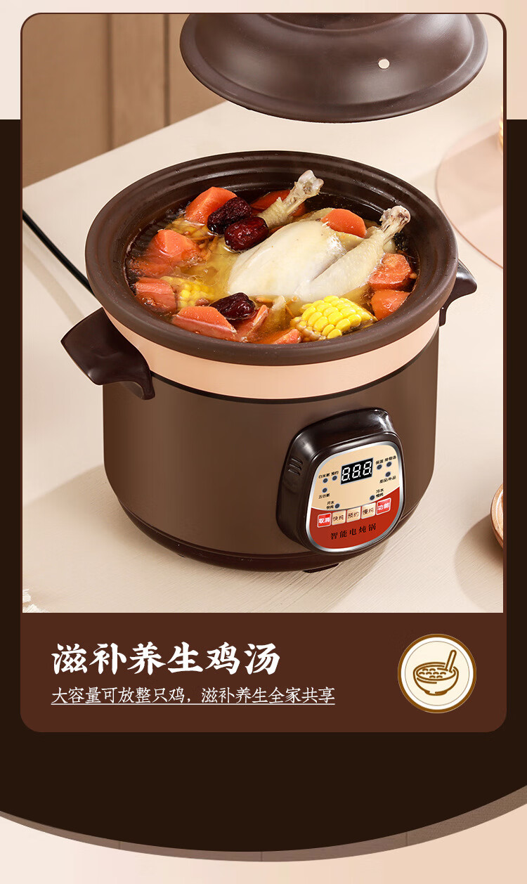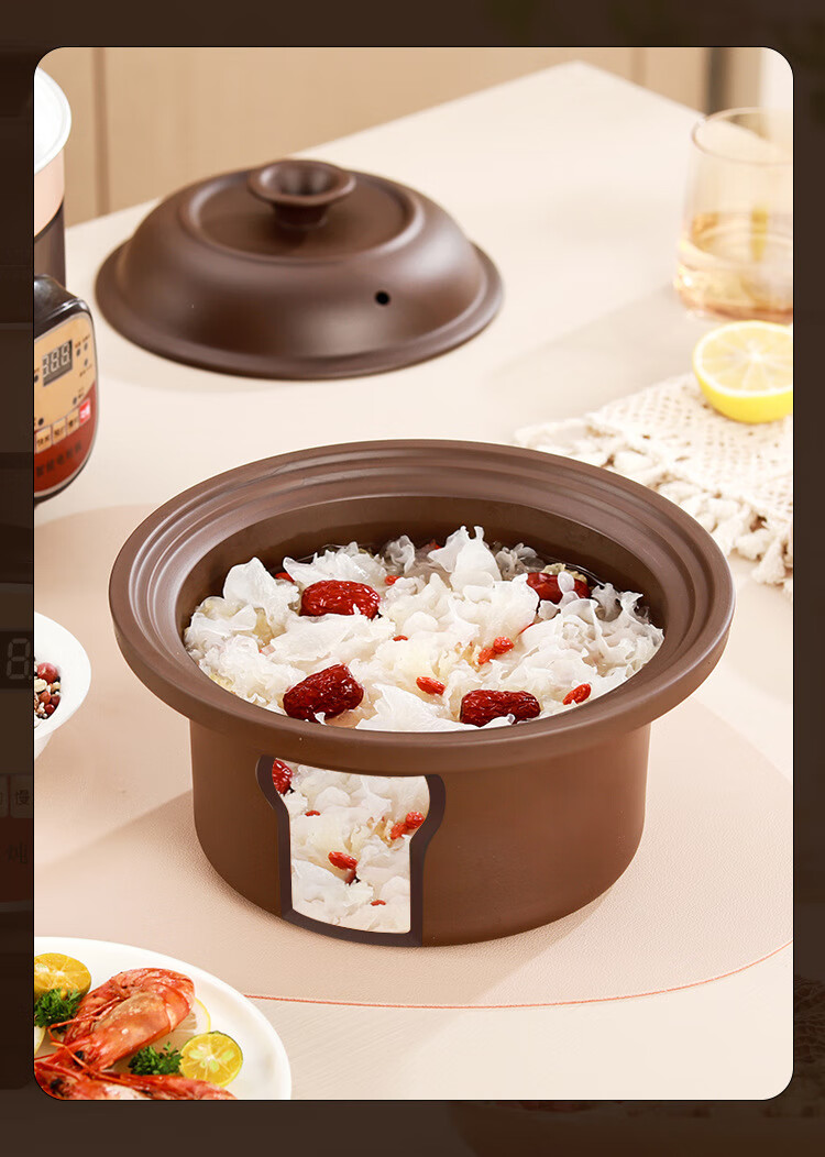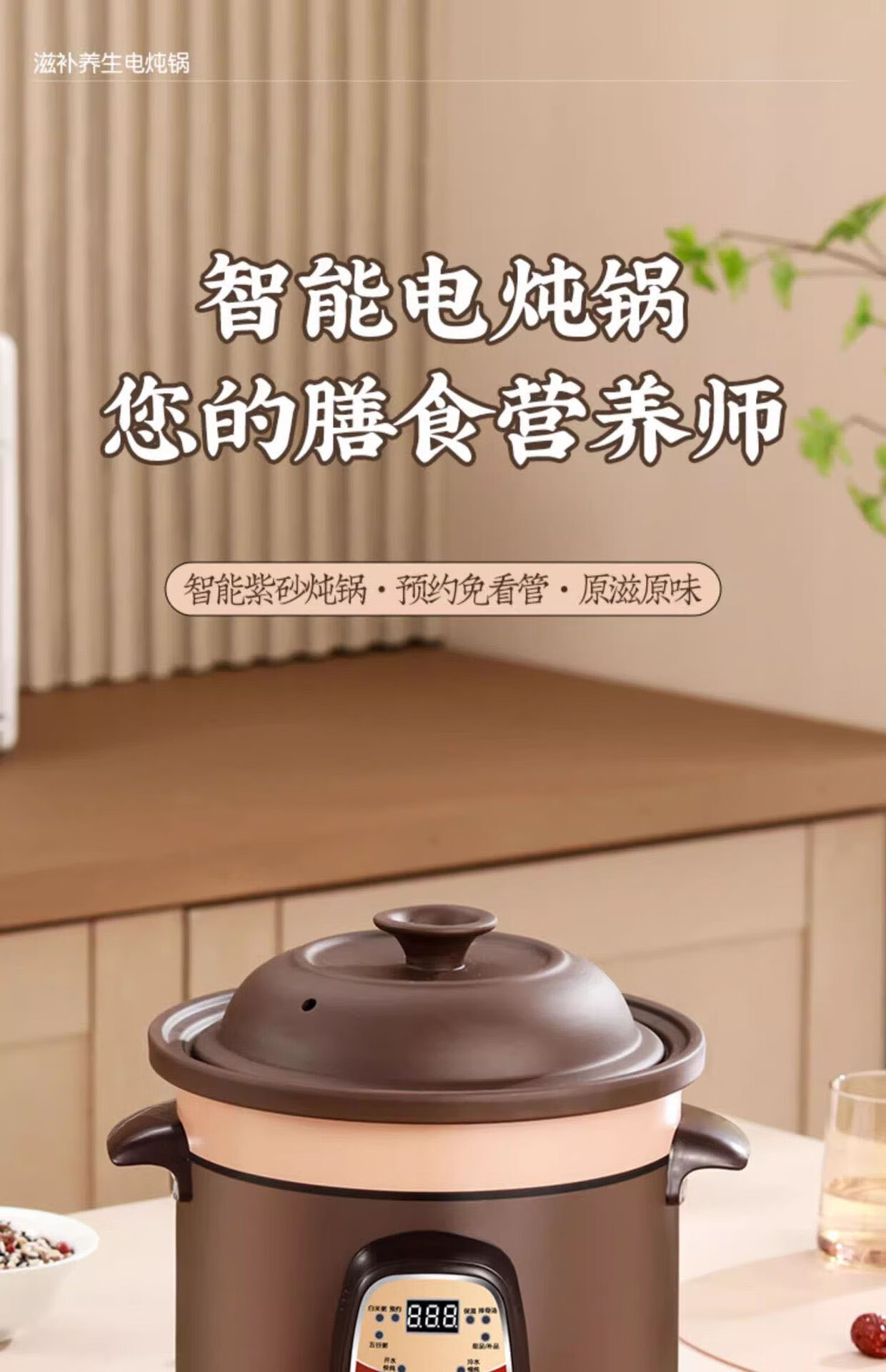 Yuanqu electric stew pot, household soup pot, electric casserole, porridge pot, food supplement pot, scheduled scheduled stew soup pot, fully automatic bird's nest health casserole, large capacity crock pot, stew pot, soup pot, plug-in, small, bear purple sand black, smart model, automatic heat preservation 2.5L (1-2 people), baby food supplement pot
