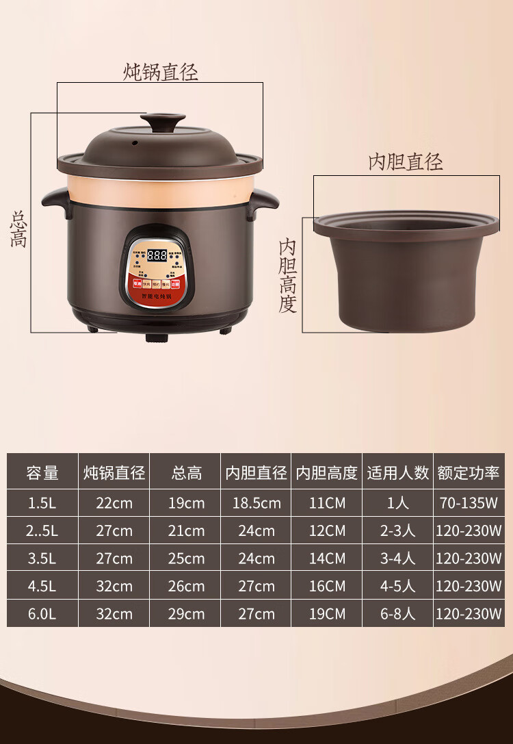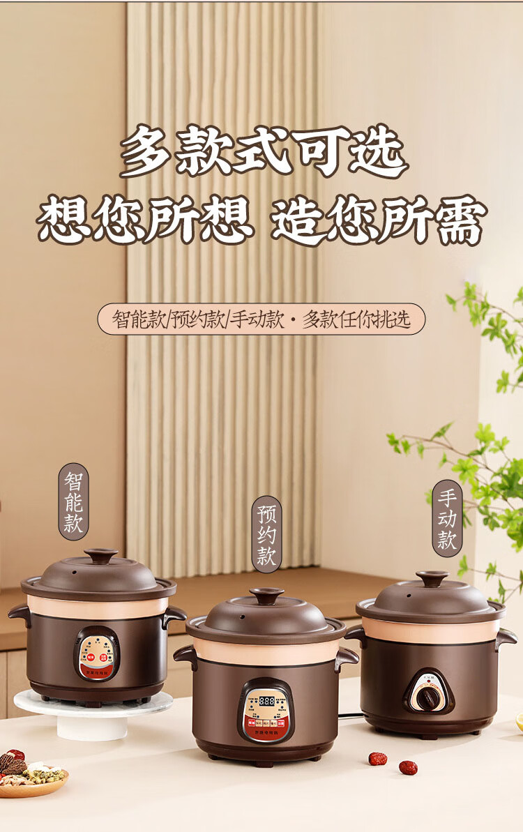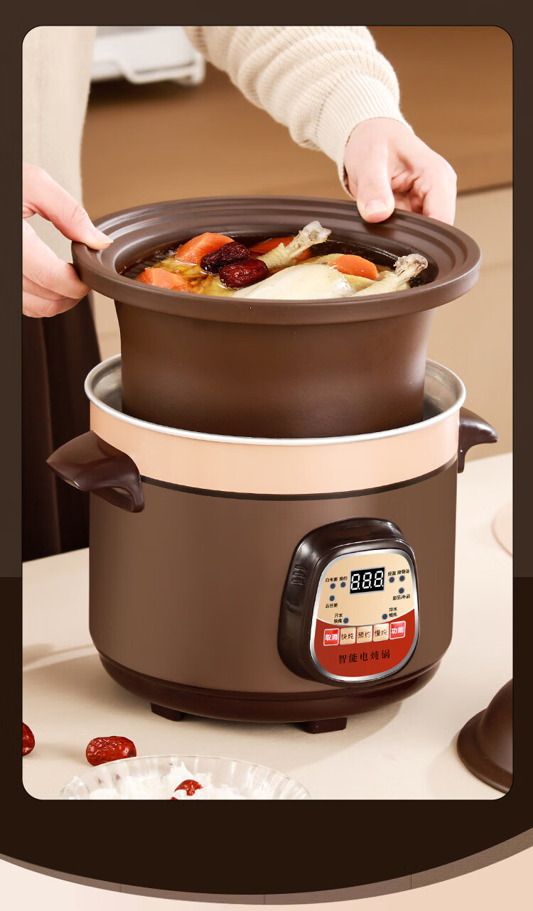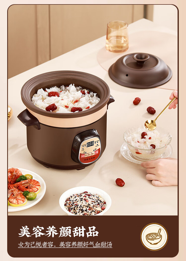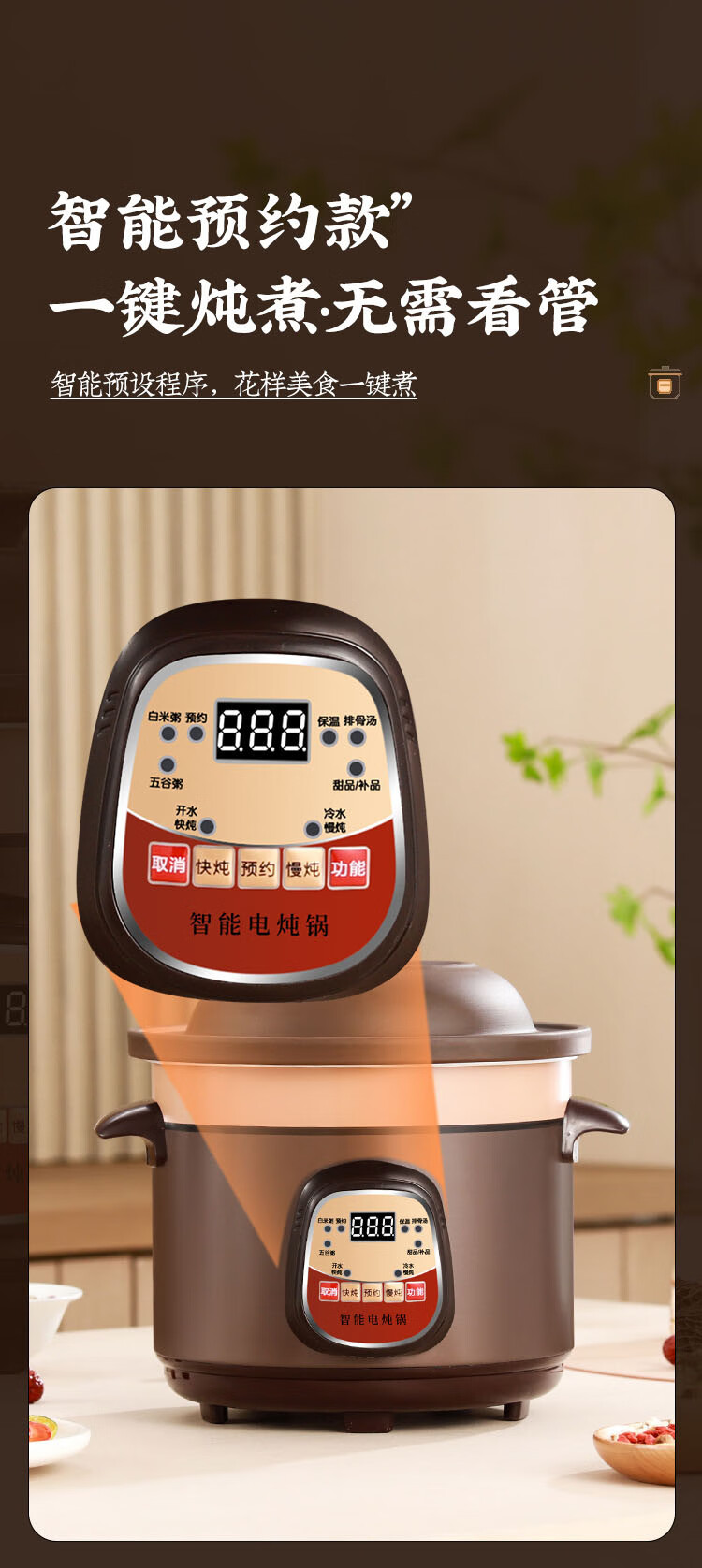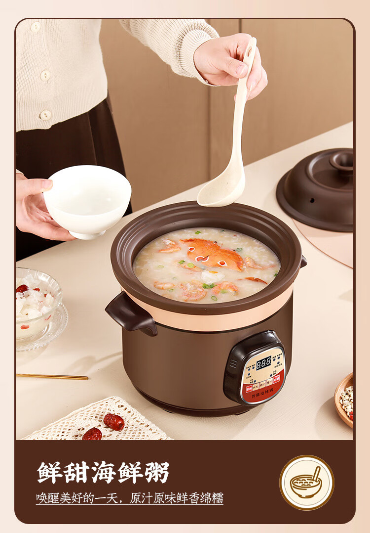 Yuanqu electric stew pot, household soup pot, electric casserole, porridge pot, food supplement pot, scheduled scheduled stew soup pot, fully automatic bird's nest health casserole, large capacity crock pot, stew pot, soup pot, plug-in, small, bear purple sand black, smart model, automatic heat preservation 2.5L (1-2 people), baby food supplement pot