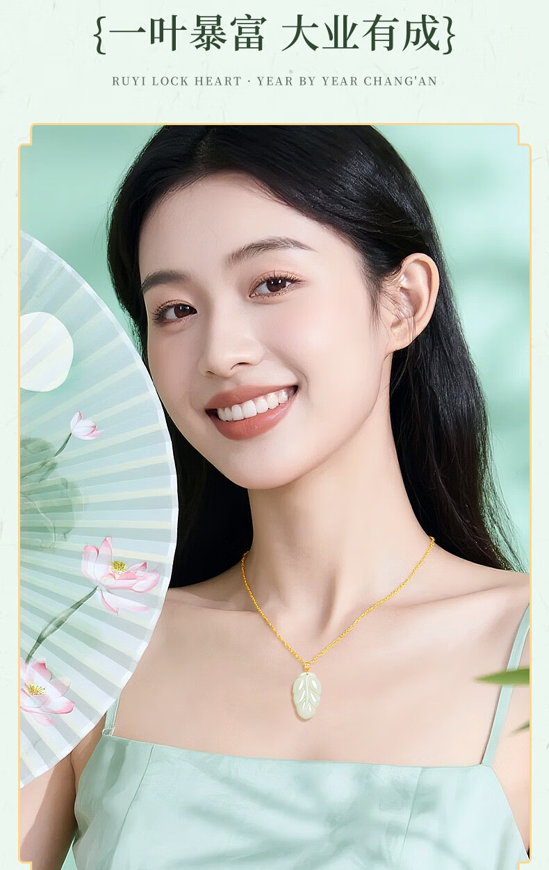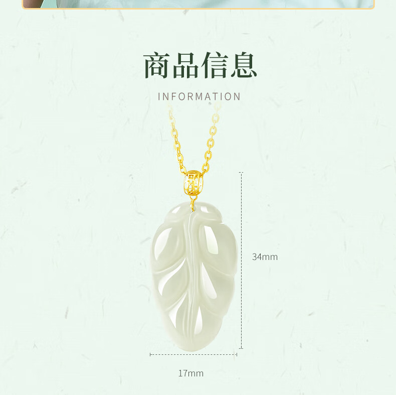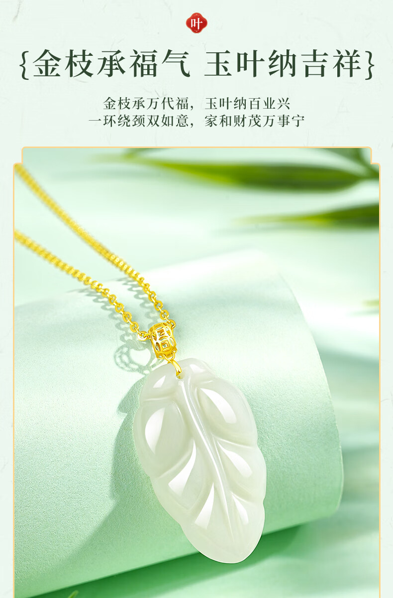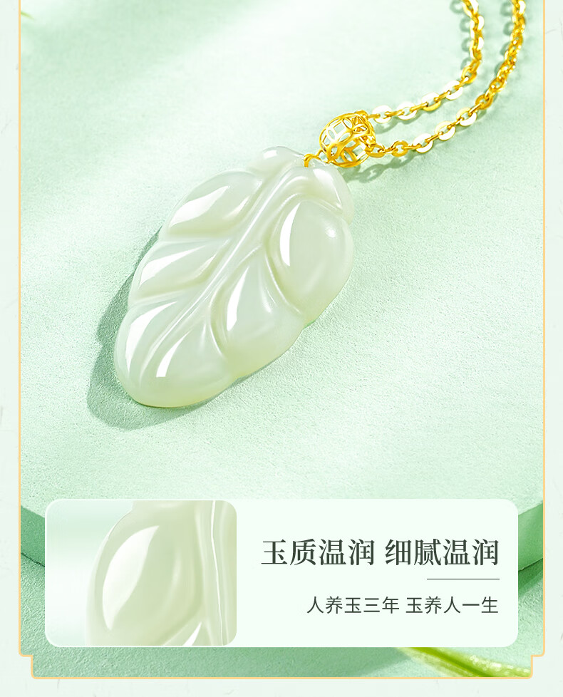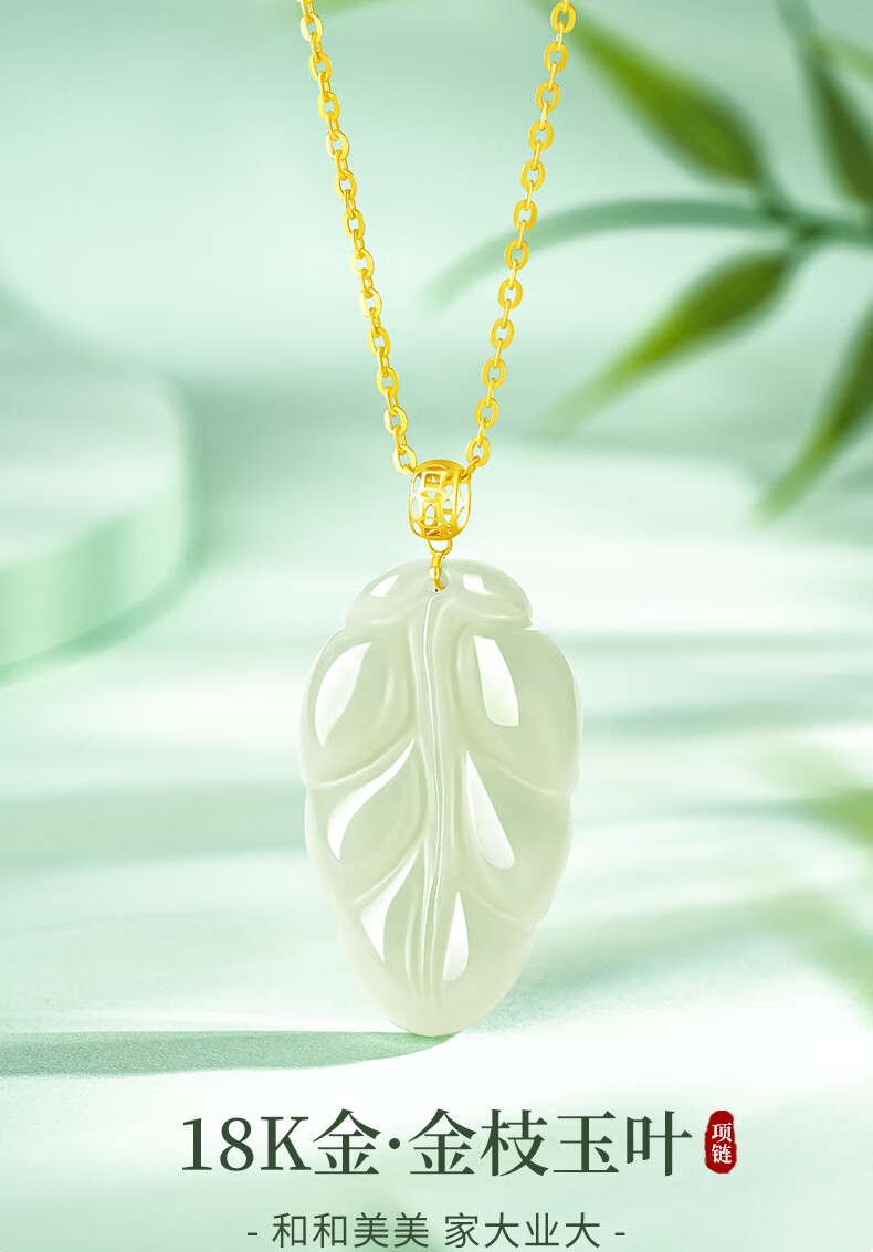 Chinese gold 18k leaf necklace for women K gold Hetian jade pendant gift for girlfriend and wife’s birthday practical 18k leaf pendant free S925 chain