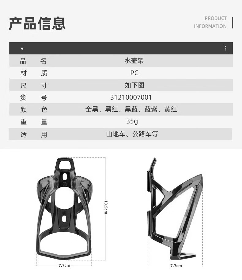 JCZS German Bicycle Water Bottle Cage No Drilling Mountain Road Bike Universal Bike Bracket Water Cup Cycling Equipment Accessories All Black (With 2 Screws + Wrench) No Drilling - Comes with