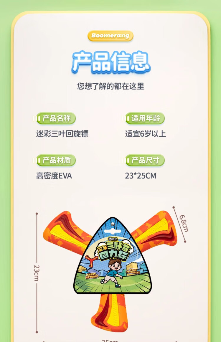 Rice Flying Saucer Boomerang Children's Frisbee Soft Boomerang Boomerang Outdoor Flying Toy Boy Original Design Camouflage Red-Boomerang Soft EVA Material