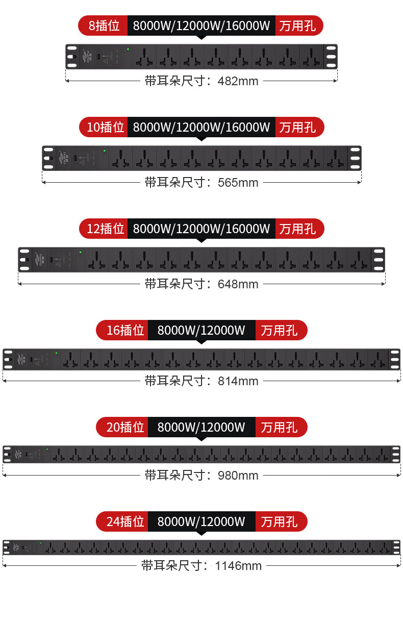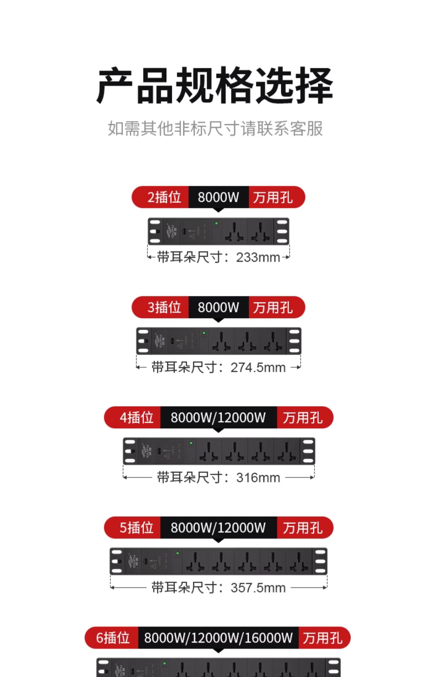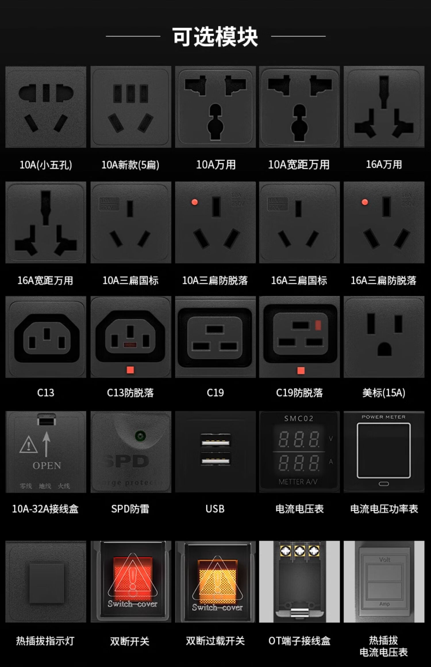 Oupu high-power 32A8000W socket cabinet 12000W industrial pdu plug-in aluminum alloy terminal block 2-position jack wireless (8000W) with junction box