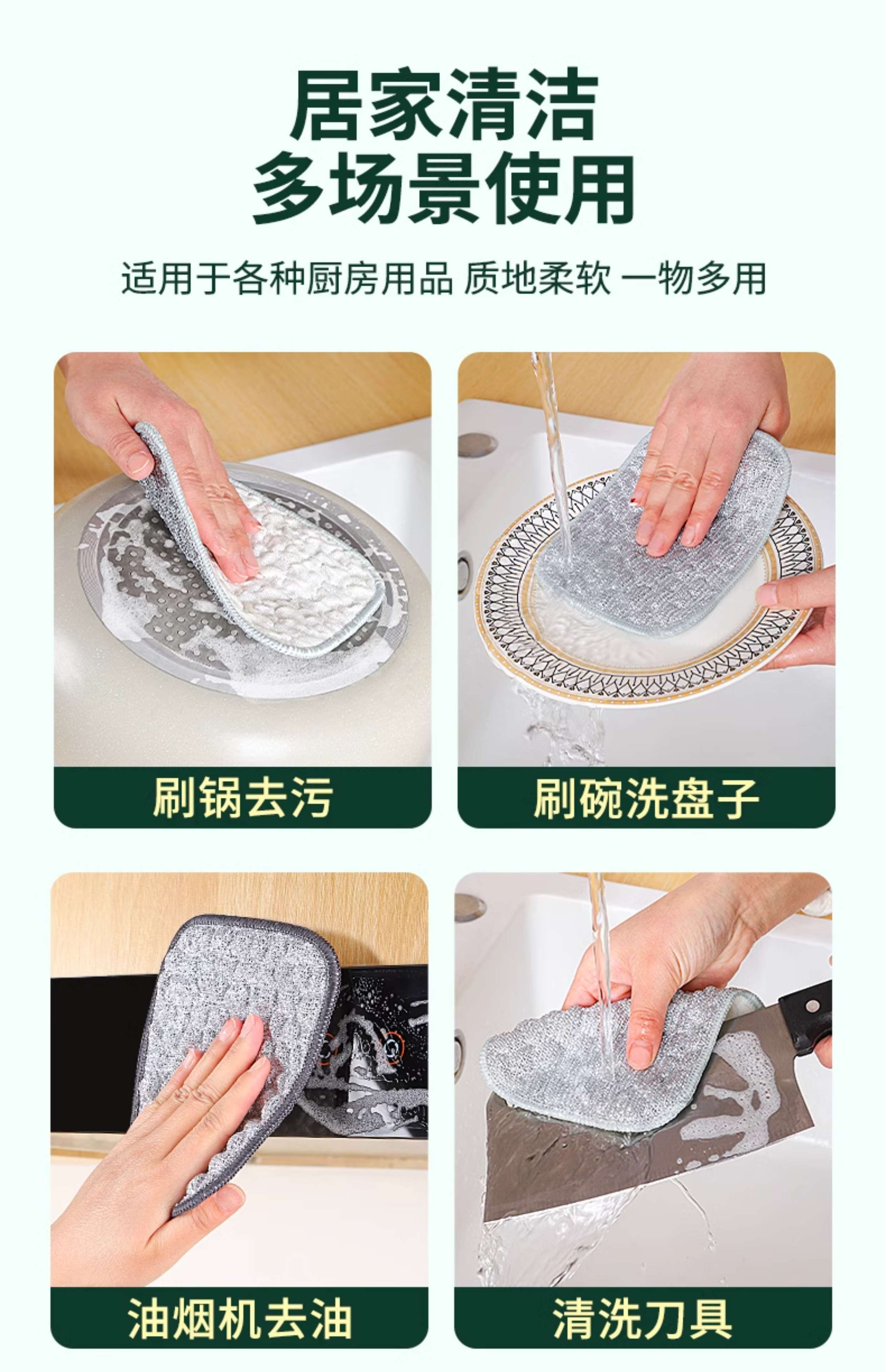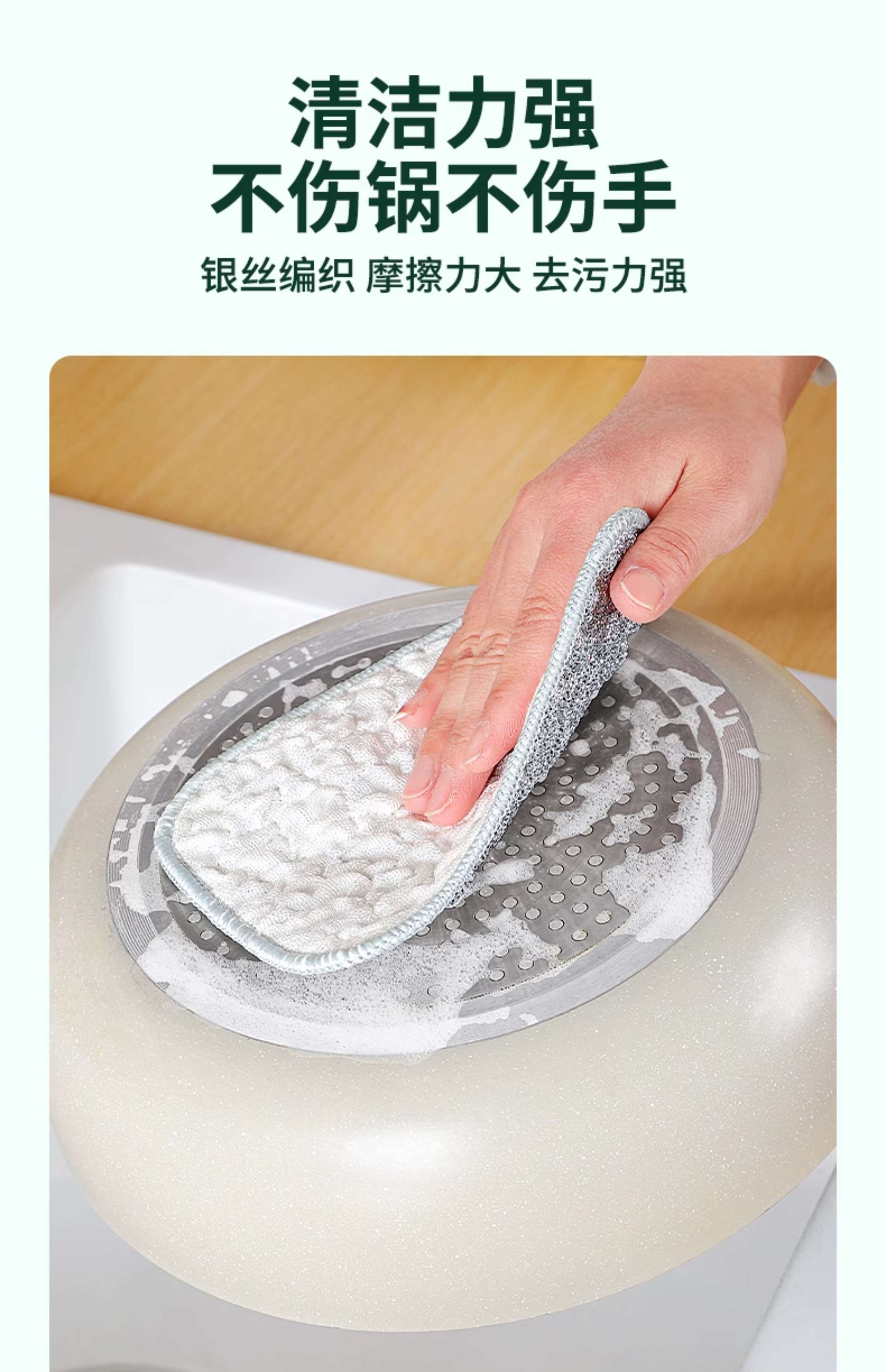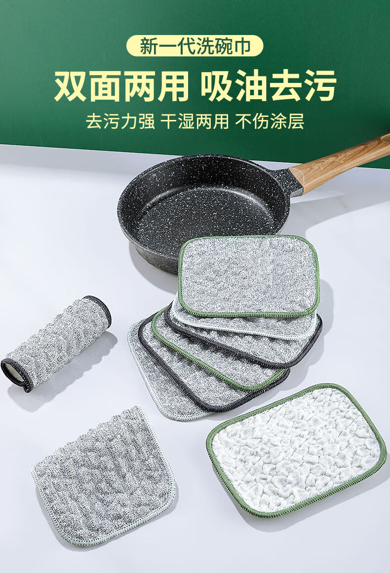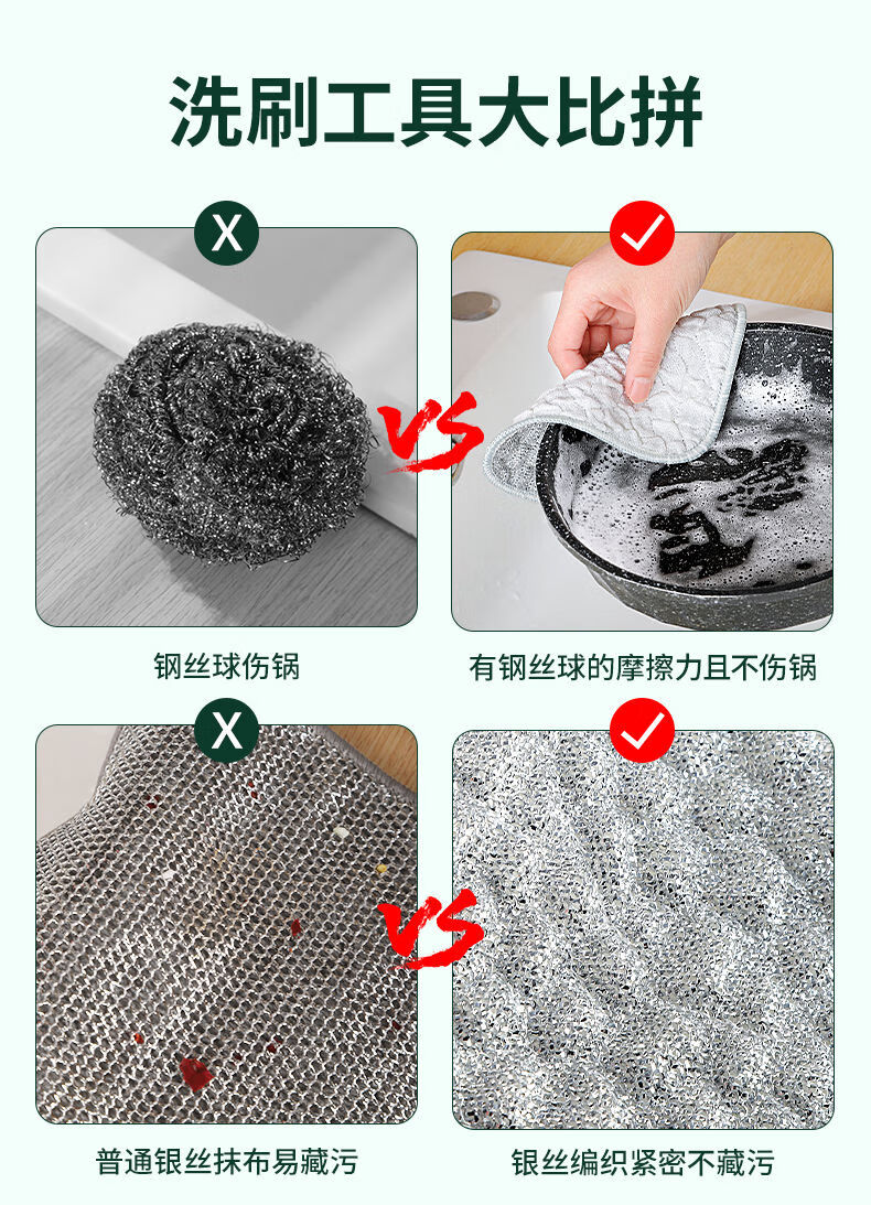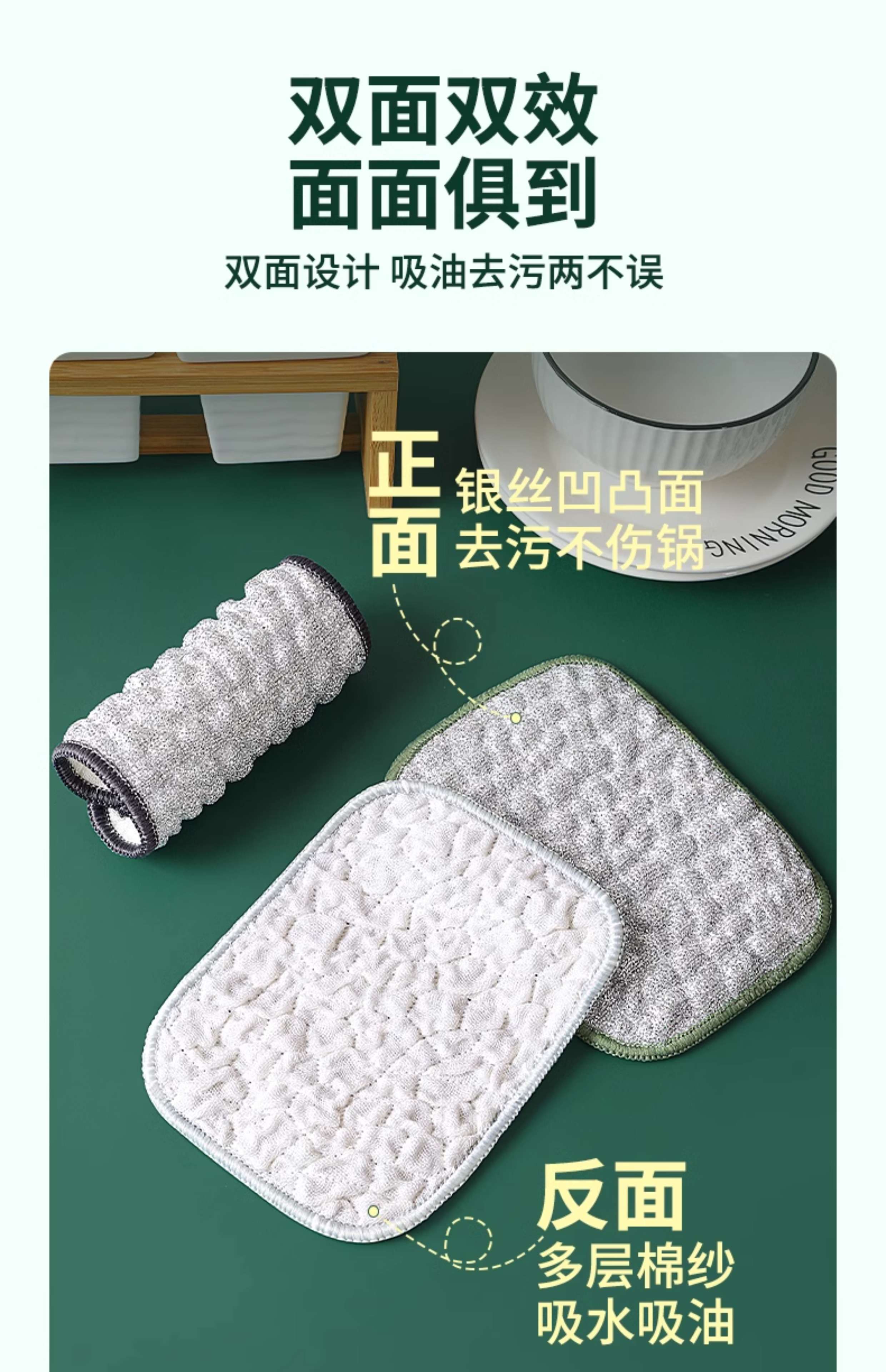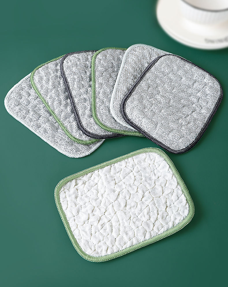 Steel wire dishcloth, special silver silk cotton gauze dishwashing towel for kitchen, double layer thickened, not easy to get oily rag, dishwashing tool 10 pieces, double layer thickened, silver wire cotton gauze dishwashing towel