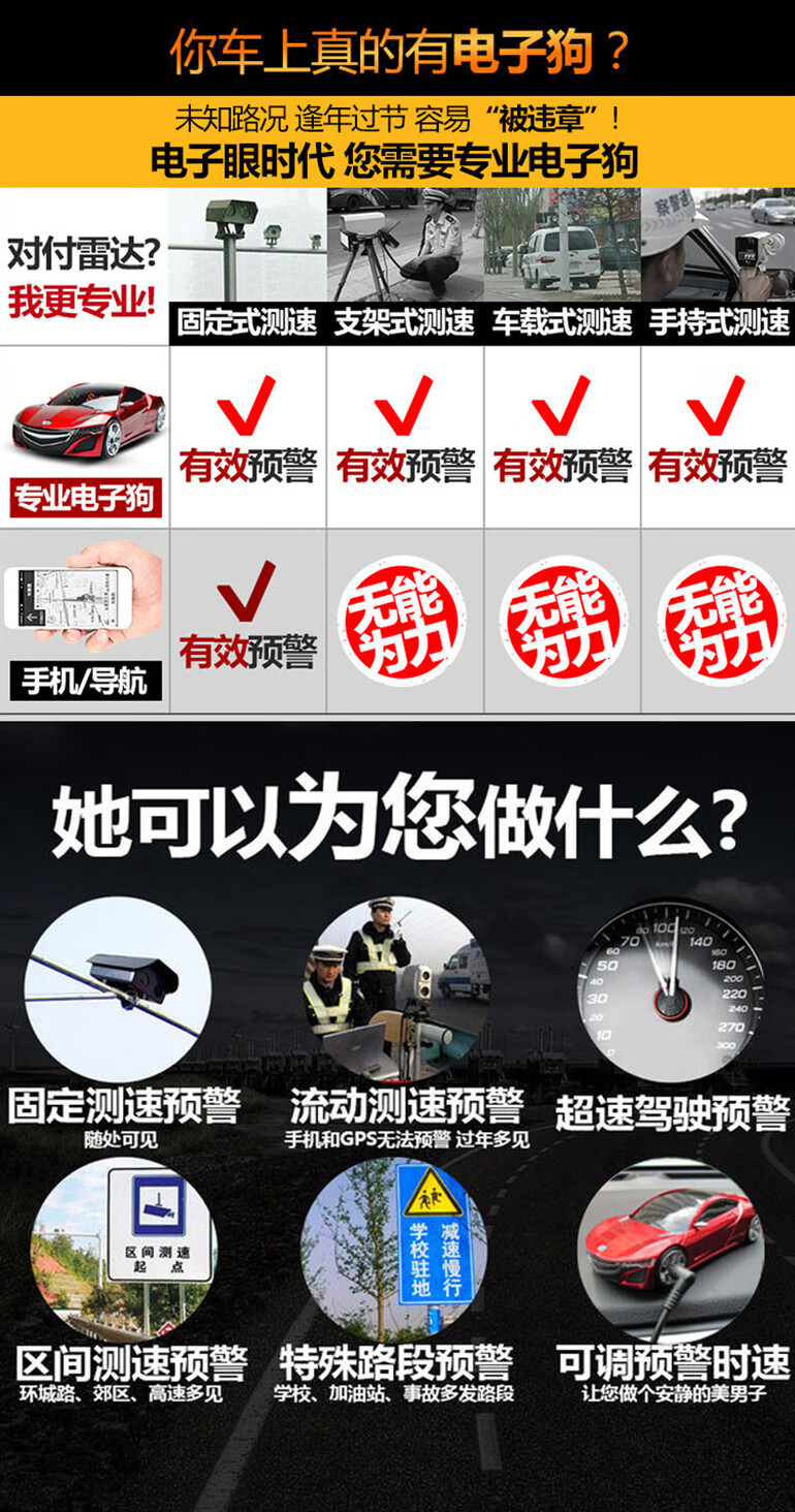 2025 new car electronic dog mobile mobile speed radar early warning instrument car wireless automatic upgrade cloud dog gray Ferrari hunting dog enhanced version