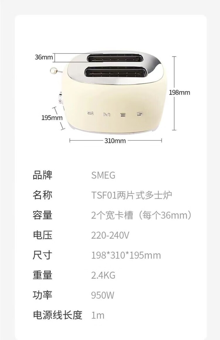 SMEG TSF01 multifunctional retro toaster toaster household heating breakfast machine milky white