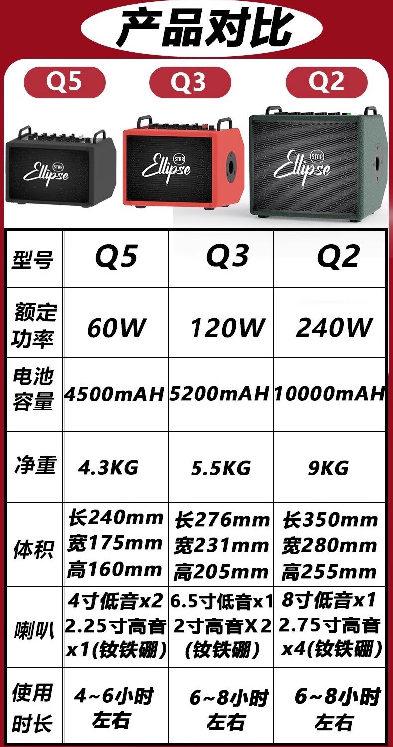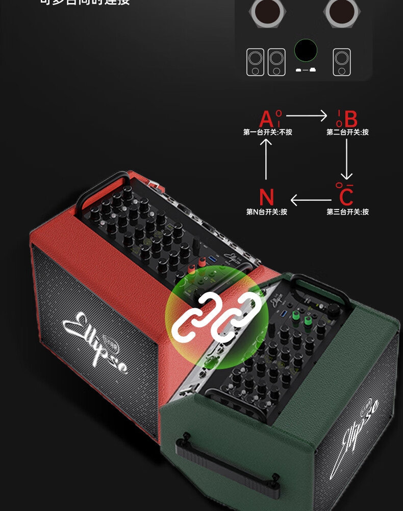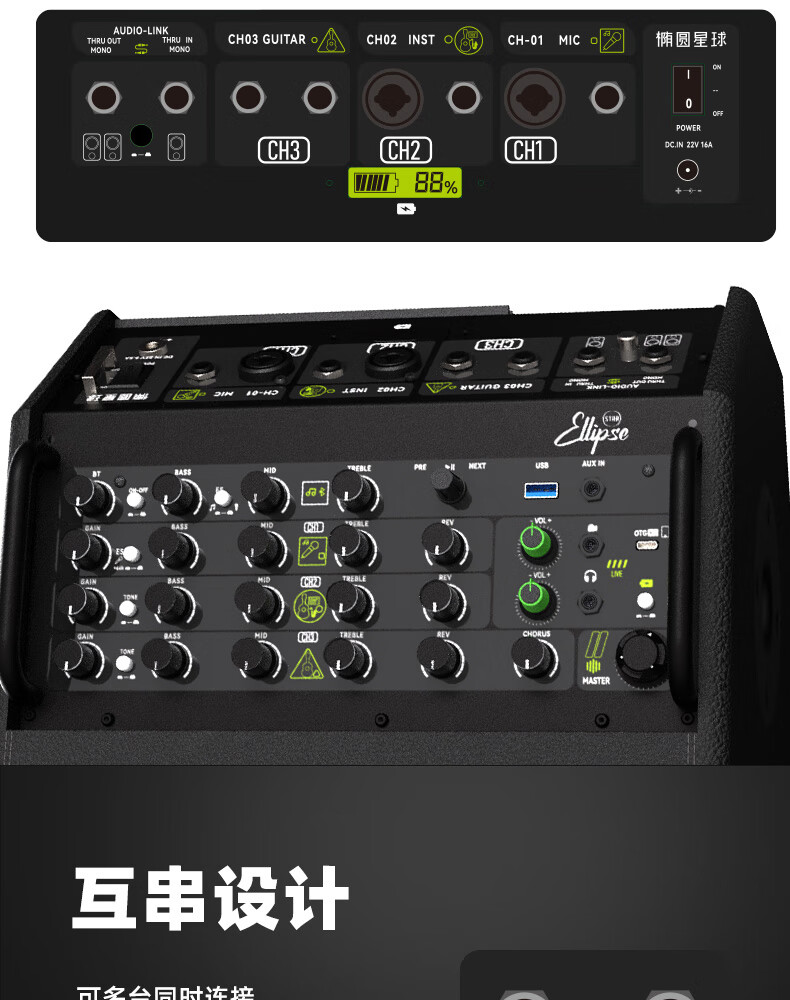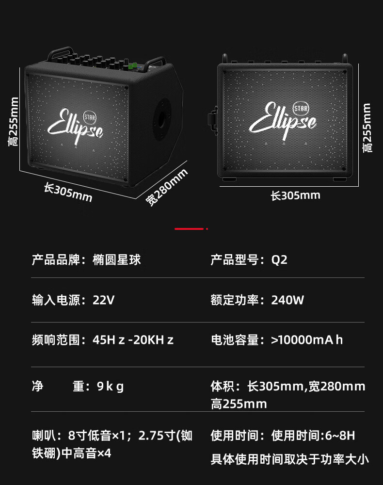 Oval Planet Flagship Store Q2 Folk 240W Outdoor Convenient Multi-Function Guitar Singing Speaker Live Broadcast Electric Blowing Tube Q2 Green + Bracket