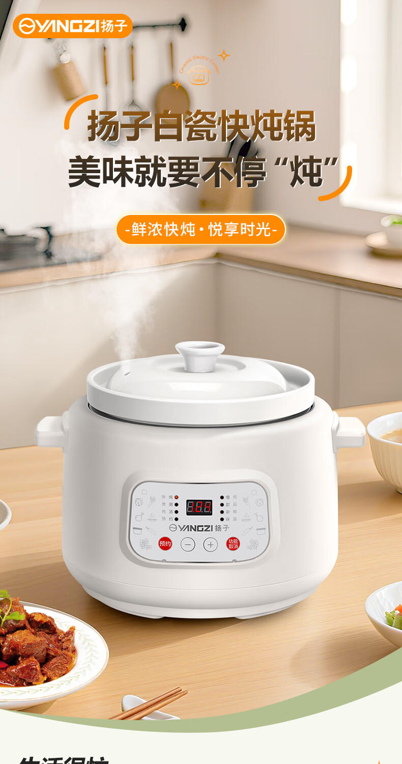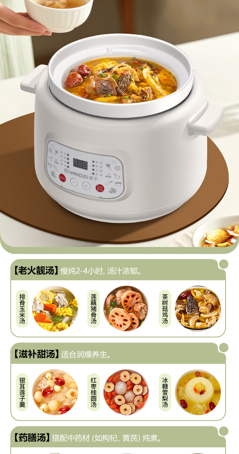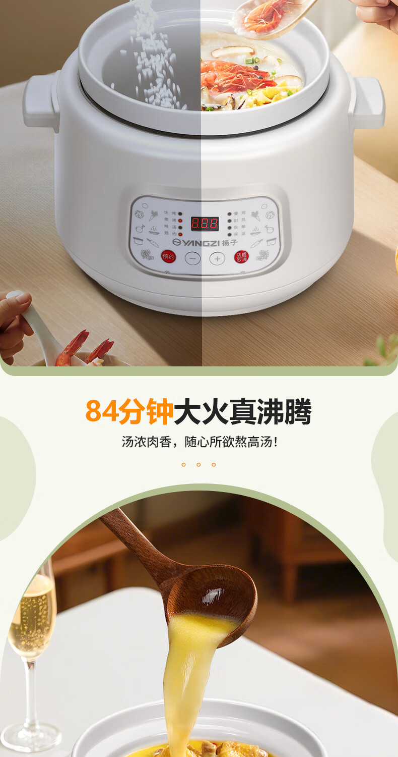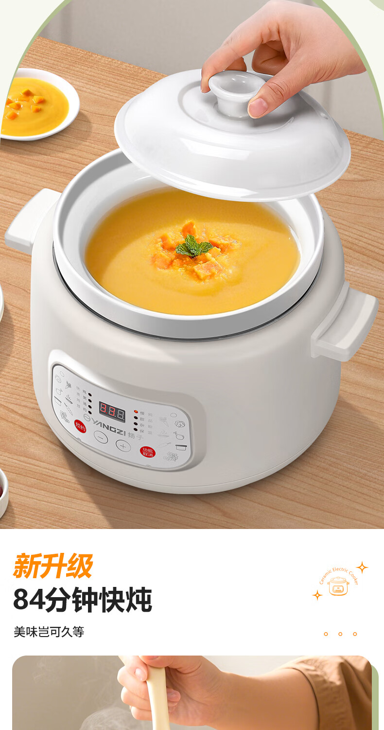 Yangzi electric stew pot, fully automatic ceramic soup cooker, can cook soup for 3-4 people. 3-liter household electric casserole can cook soup for 3-4 people. It can be slow-cooked and can be simmered quickly. It can be multi-functional for cooking millet porridge. It can be reserved and kept warm. 2.8L white porcelain inner pot can be simmered quickly for 1-4 people.